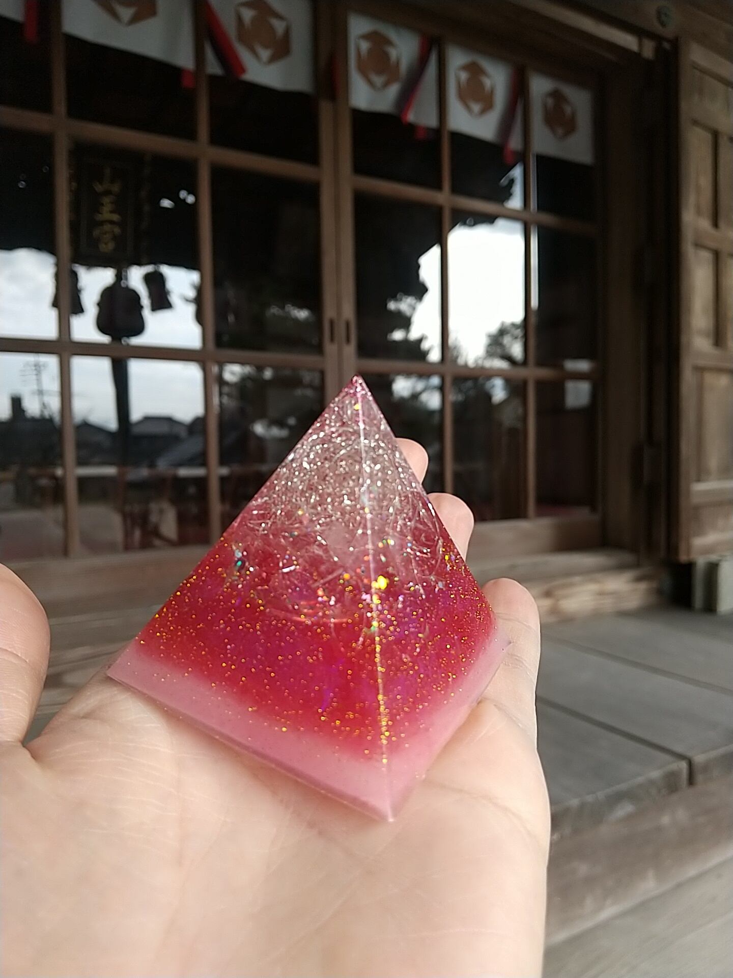 5㎝×5㎝×5㎝のピラミッドオルゴナイトになります。