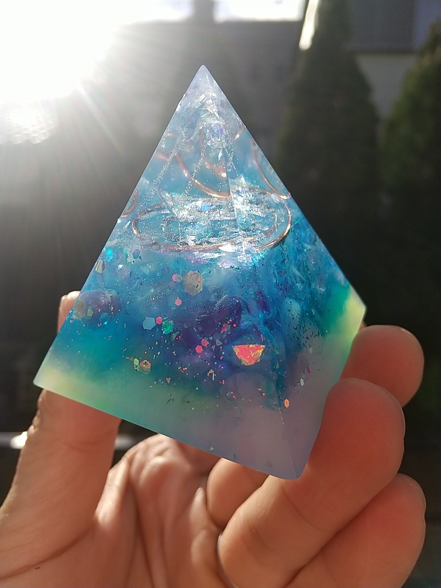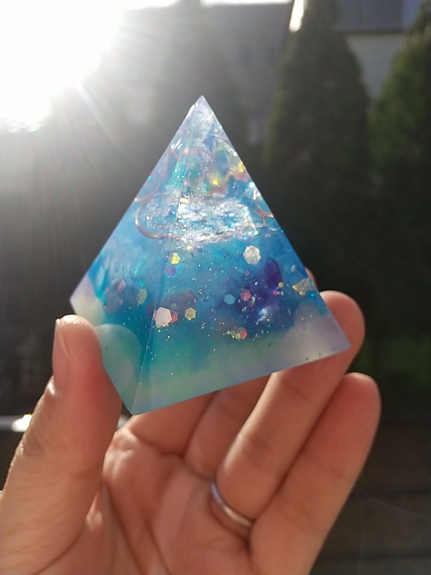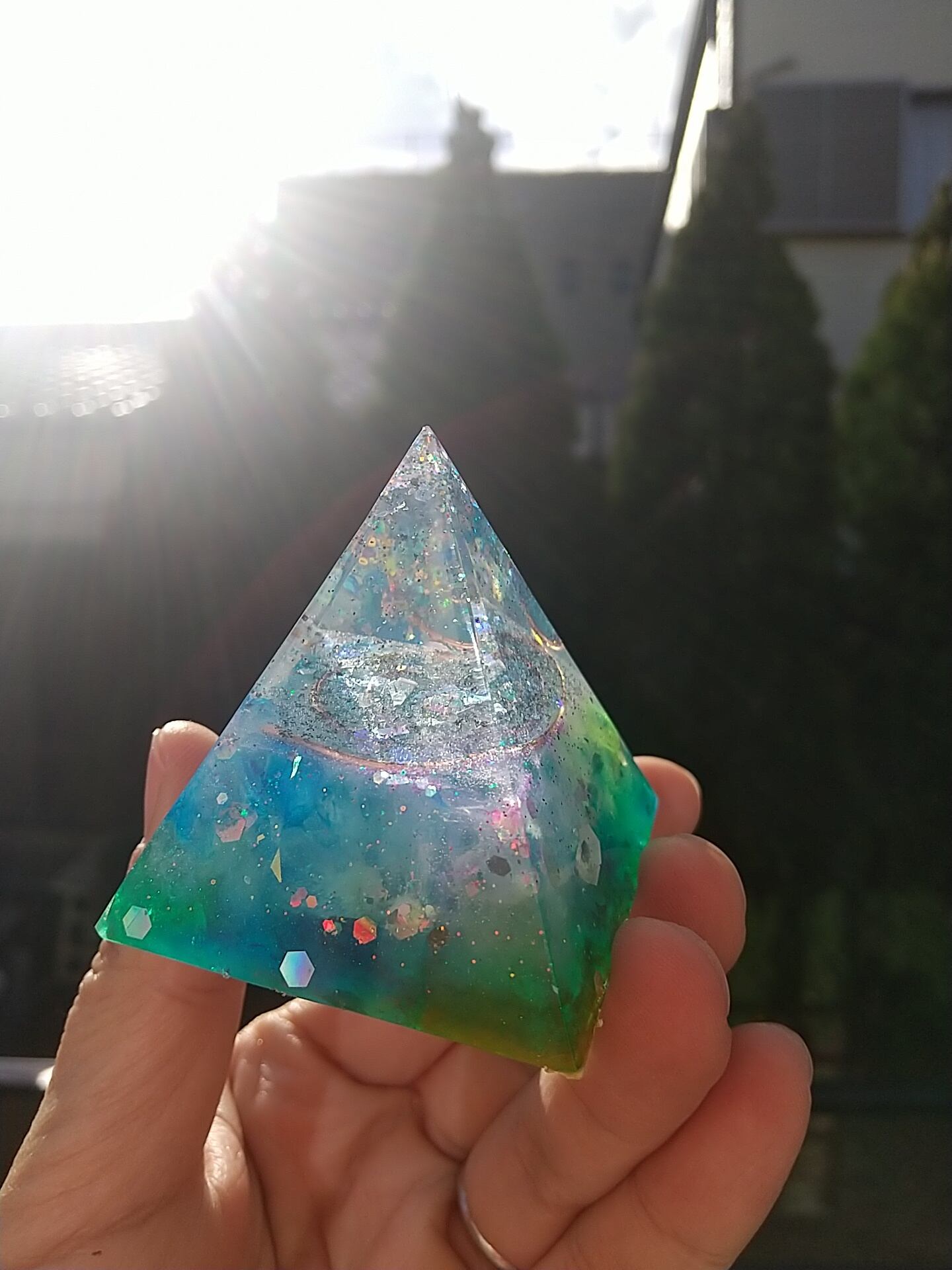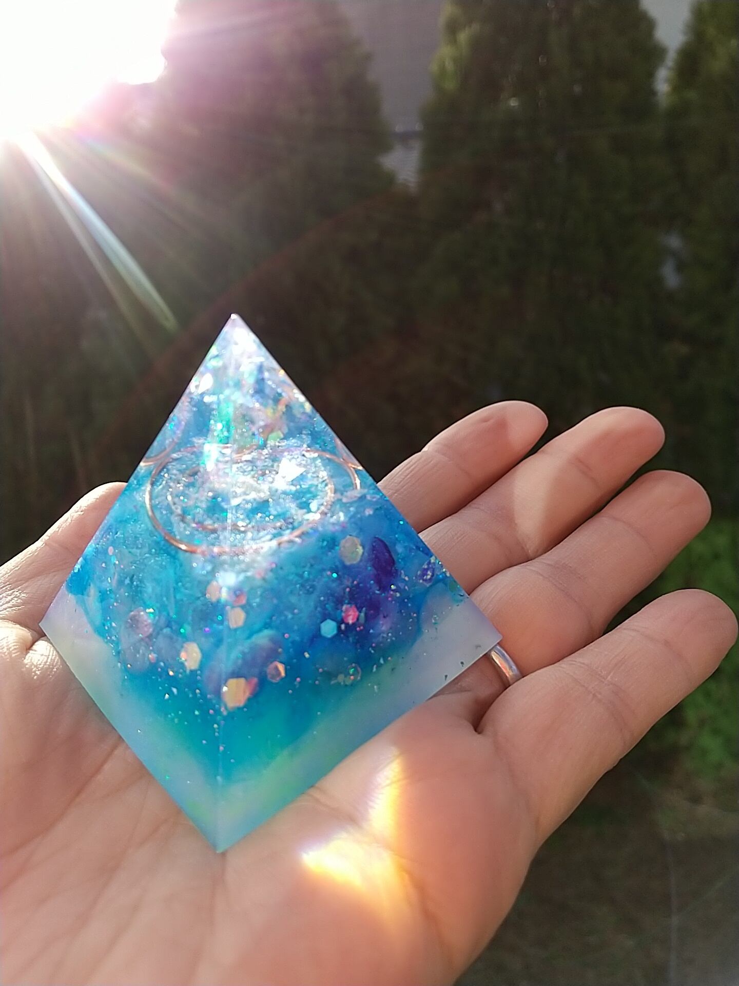 5㎝×5㎝×5㎝のピラミッドオルゴナイトになります。