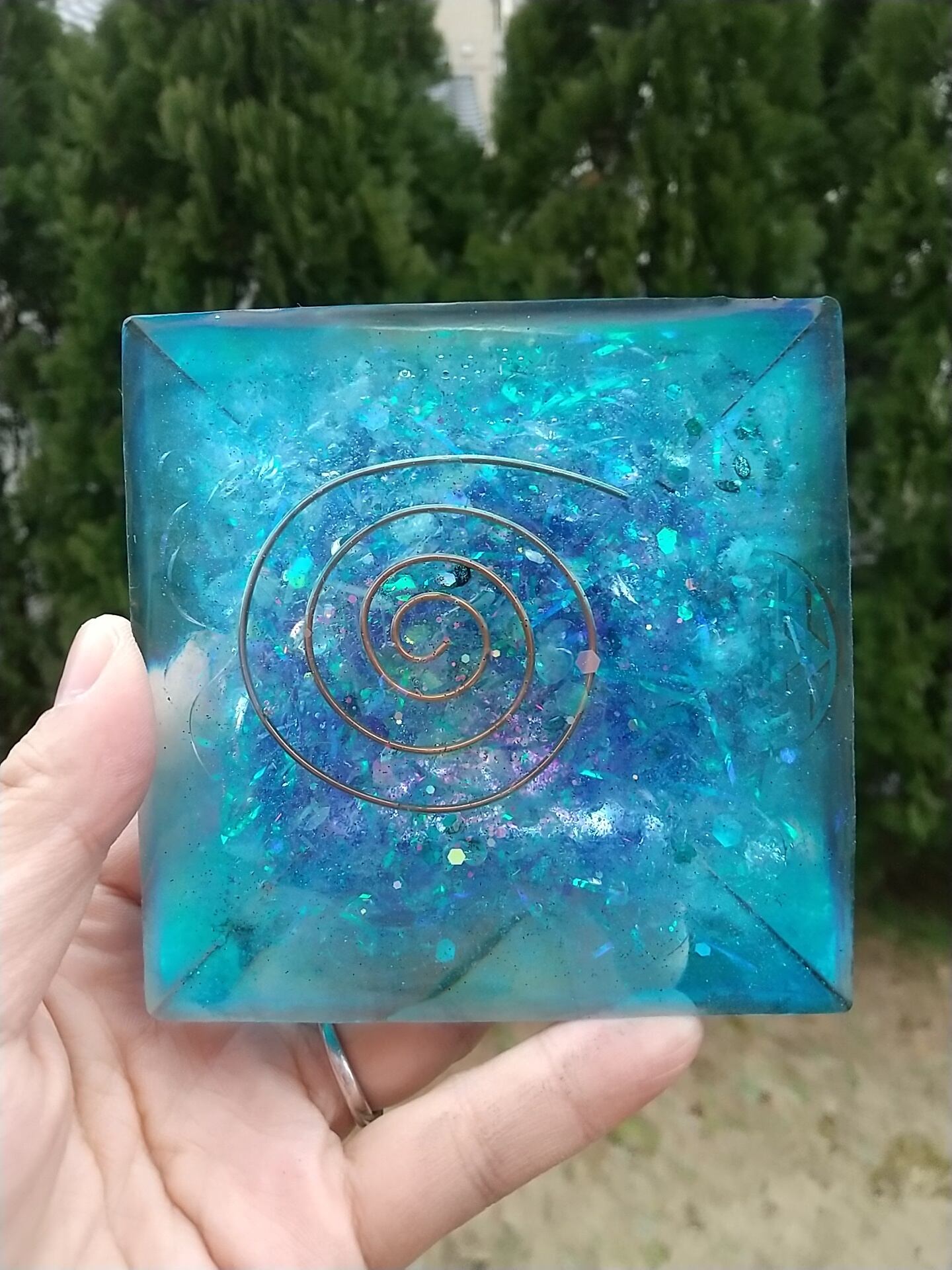 こちらは、トップがクリアになっていて、下のブルーが反射して、万華鏡のように美しいです。