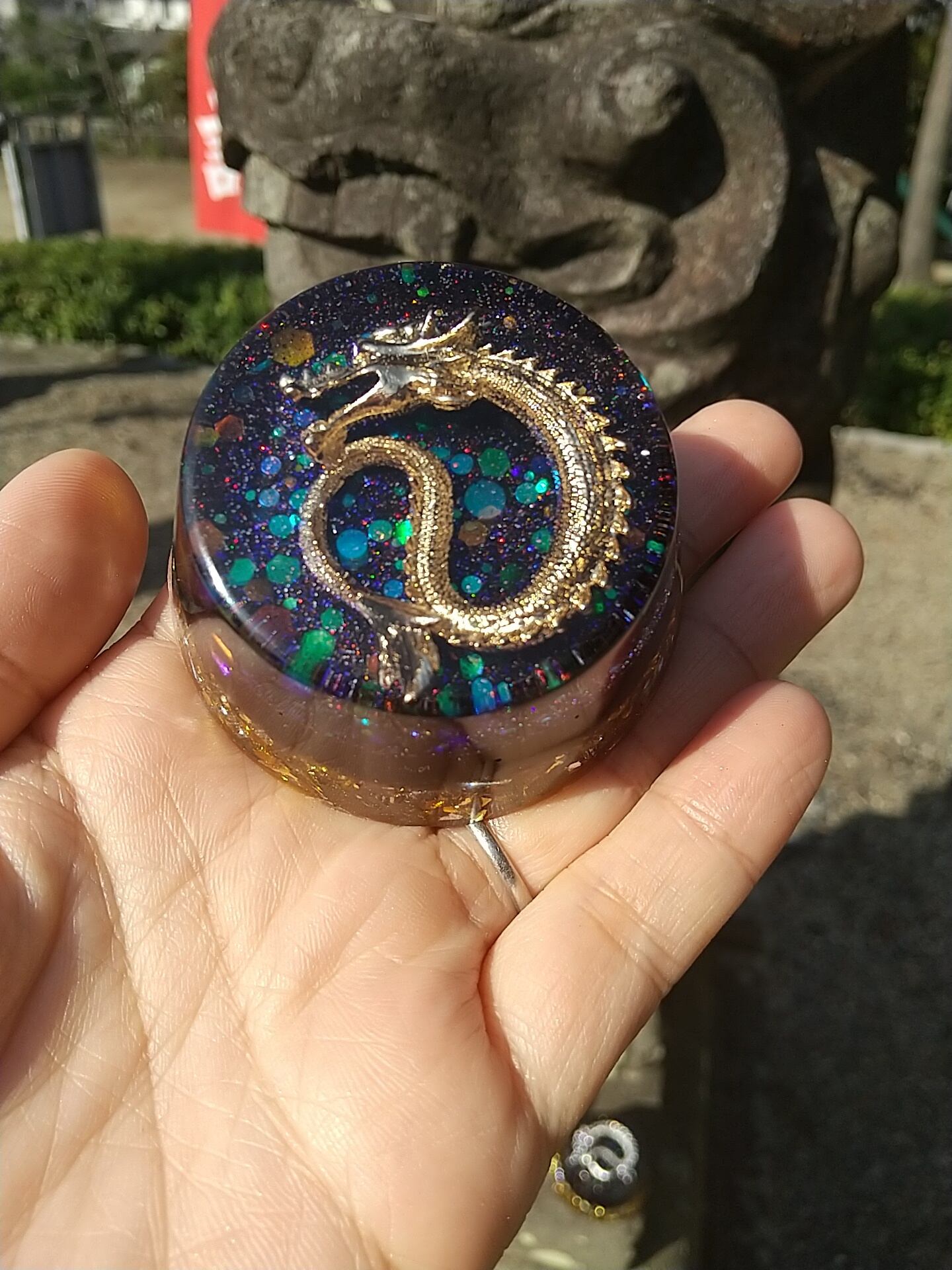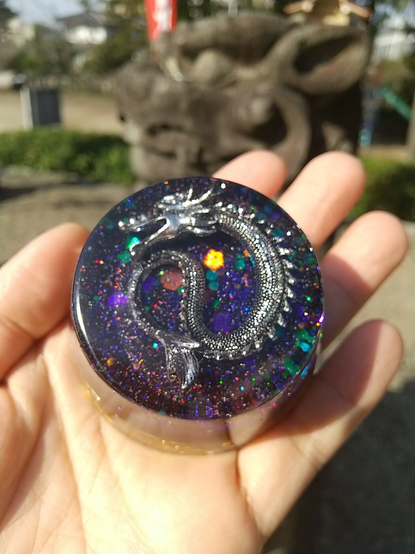 宮古島の麻炭入り浄化の龍オルゴナイト