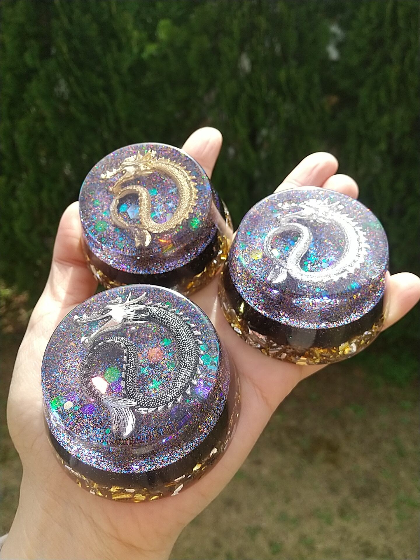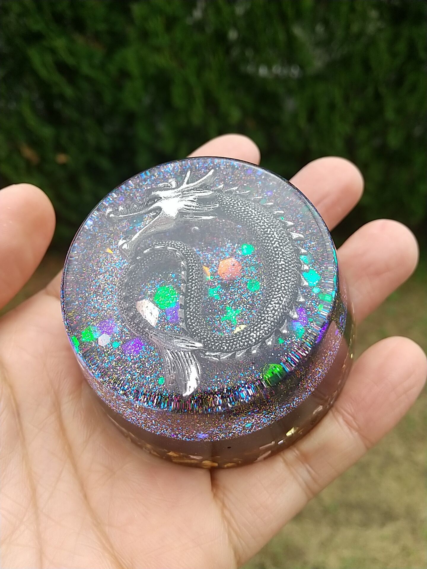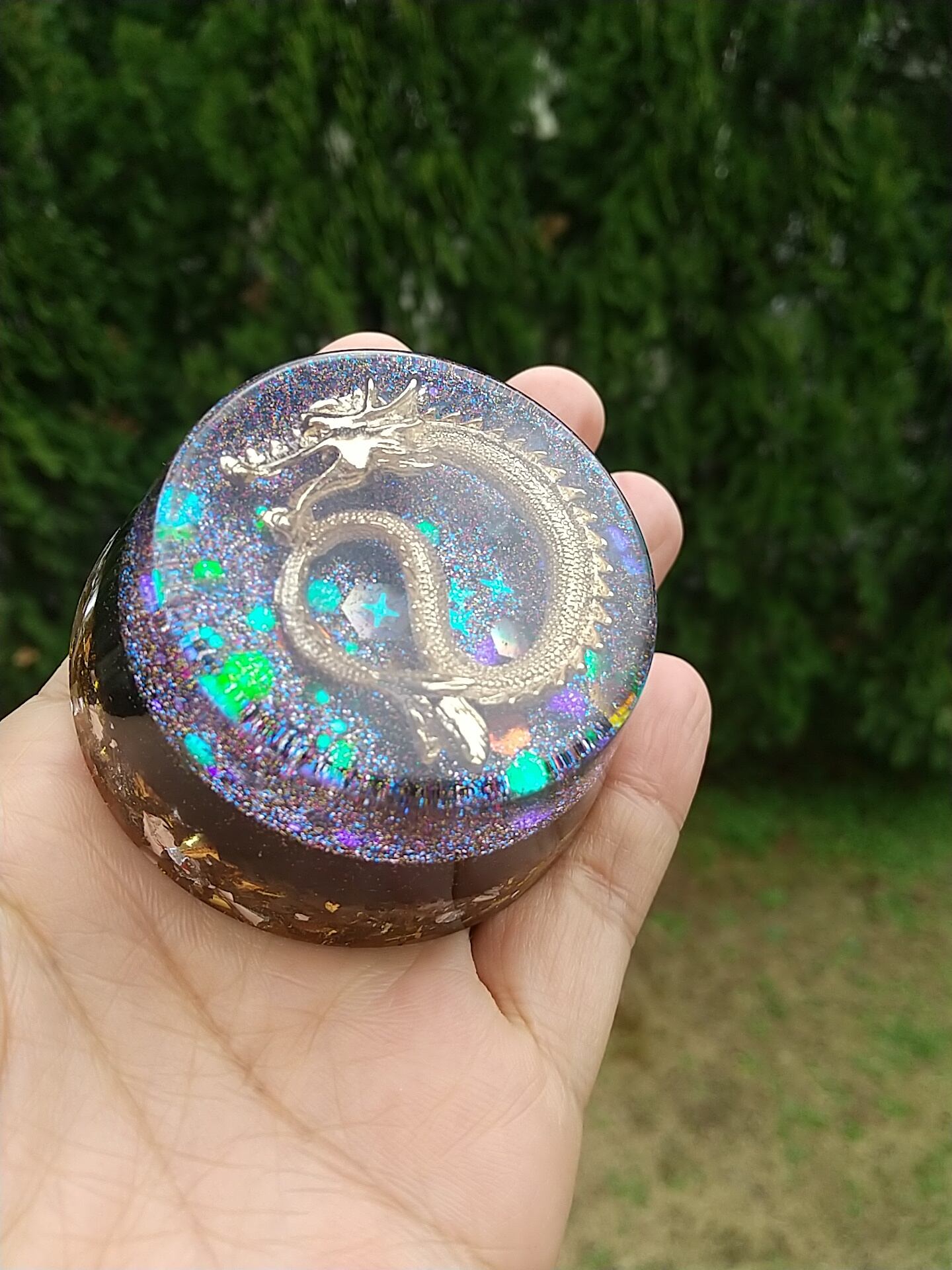こちらは宮古島の麻炭入り浄化の龍オルゴナイトです。(再販です)