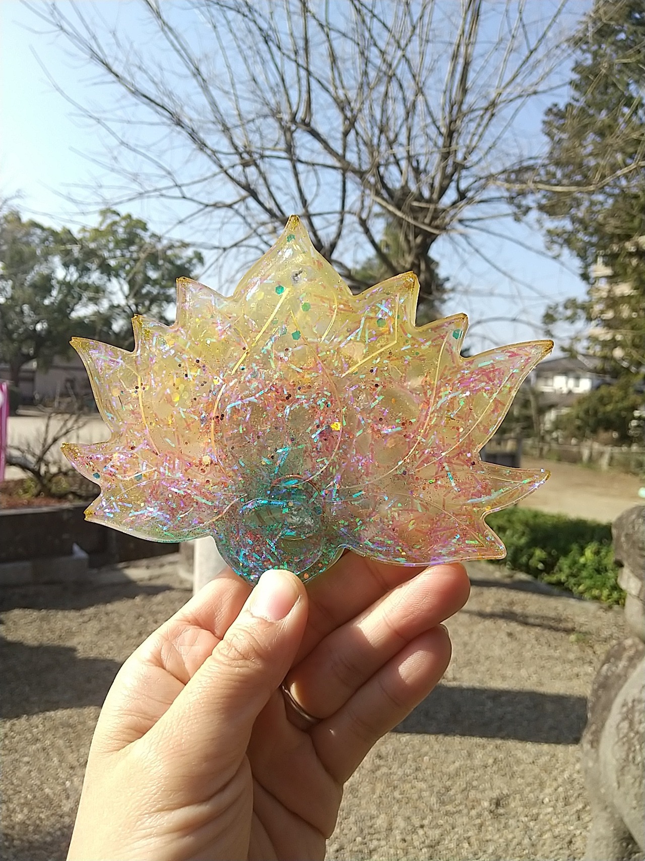 花びらの先端に気泡が入り、写真のように先端が少し欠けていますが、とても素敵なオルゴナイトです❤️