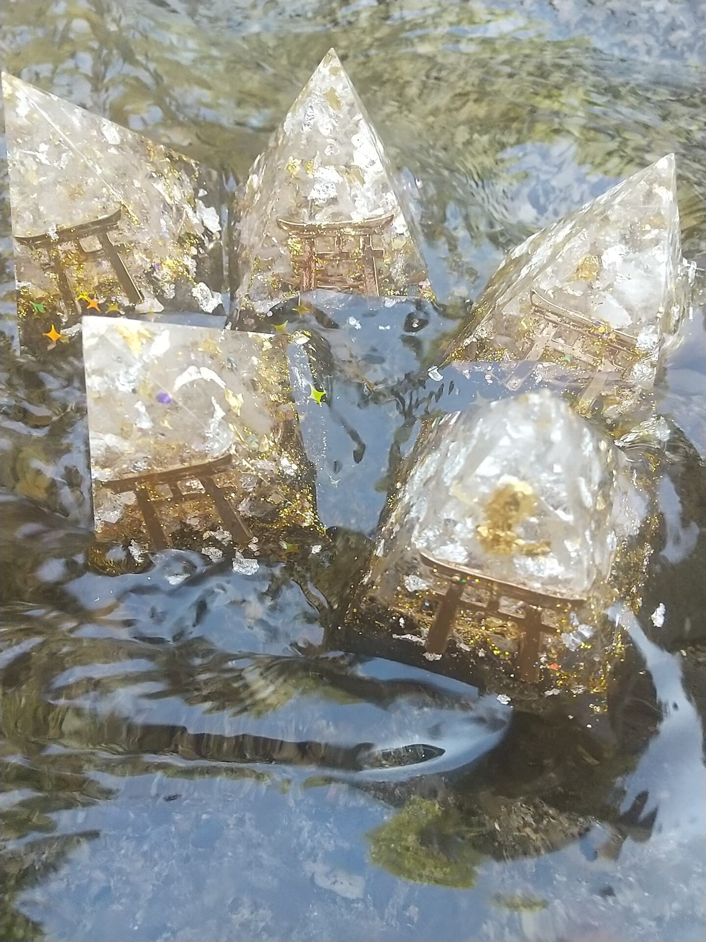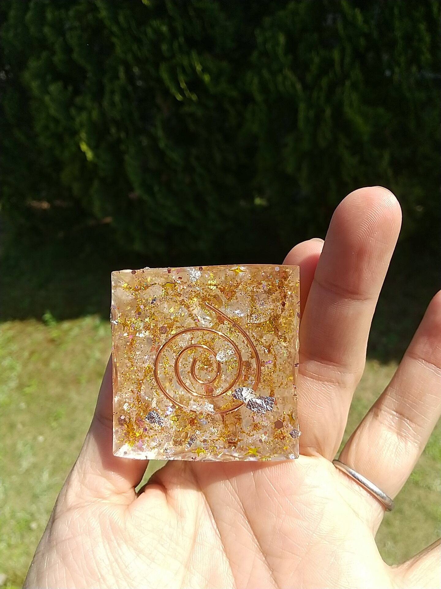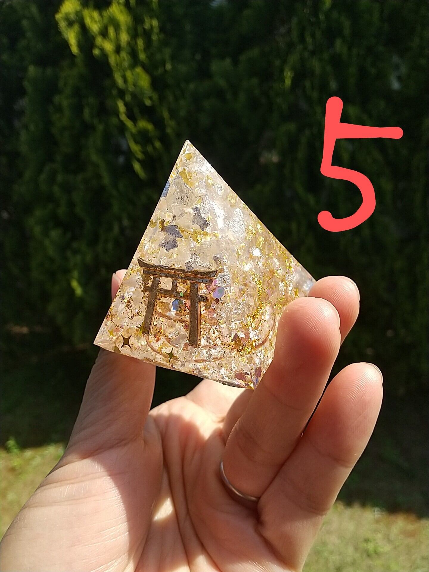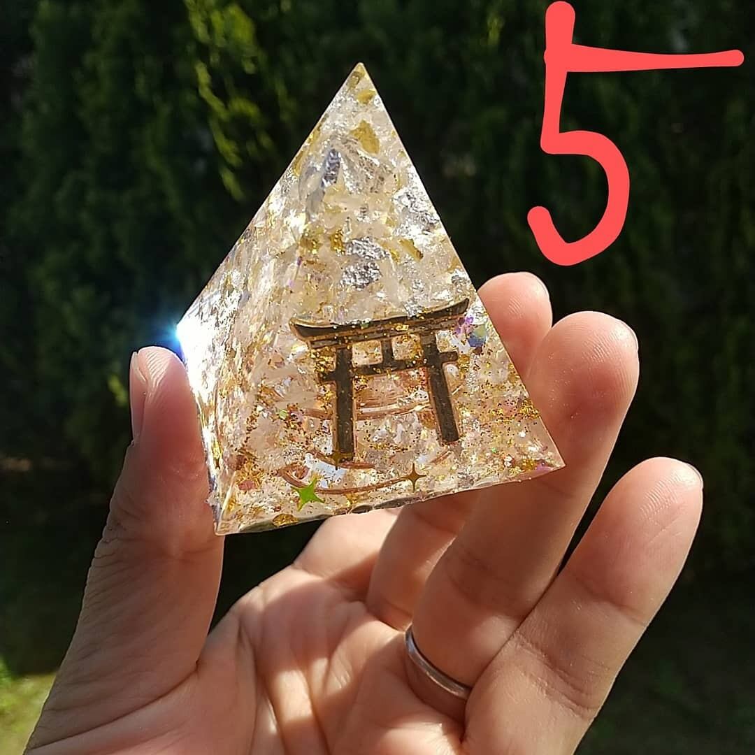 5㎝×5㎝×5㎝のピラミッドオルゴナイトになります。