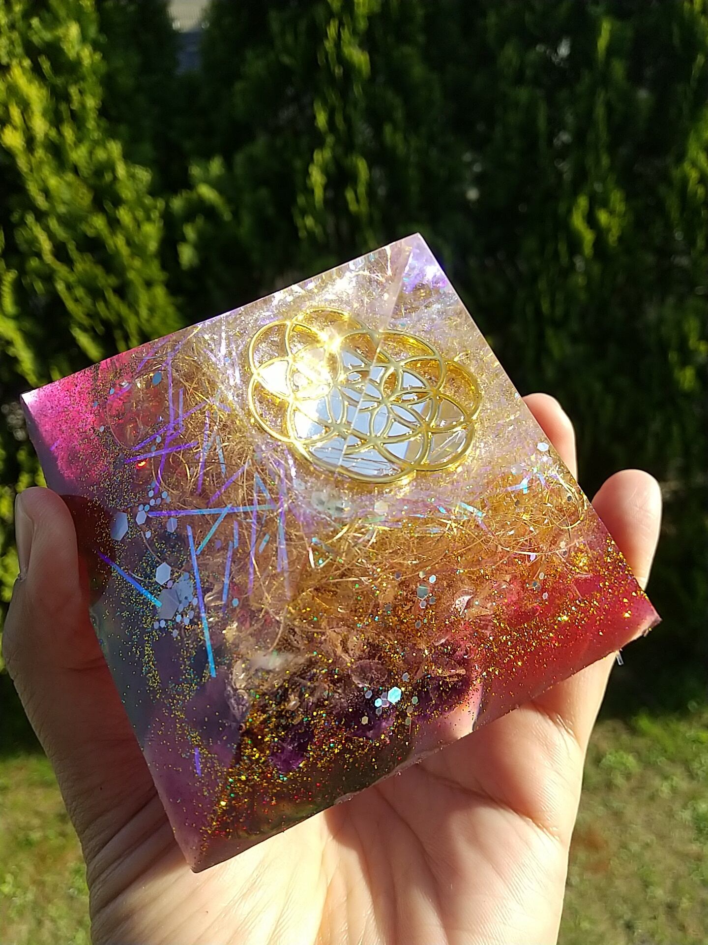 こちらは、古代神聖幾何学シードオブライフのオルゴナイトです。