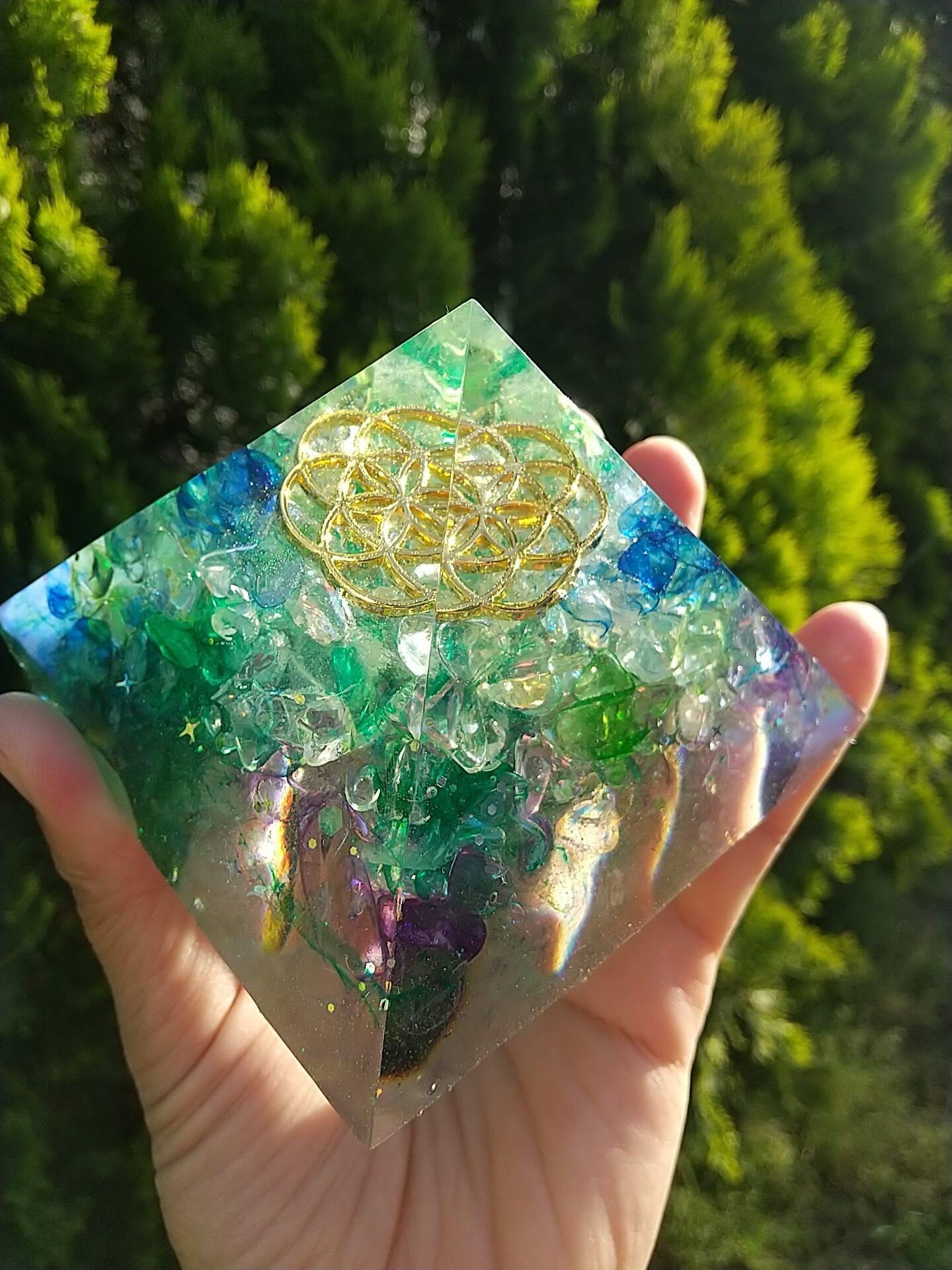 こちらは、古代神聖幾何学シードオブライフのオルゴナイトです。
