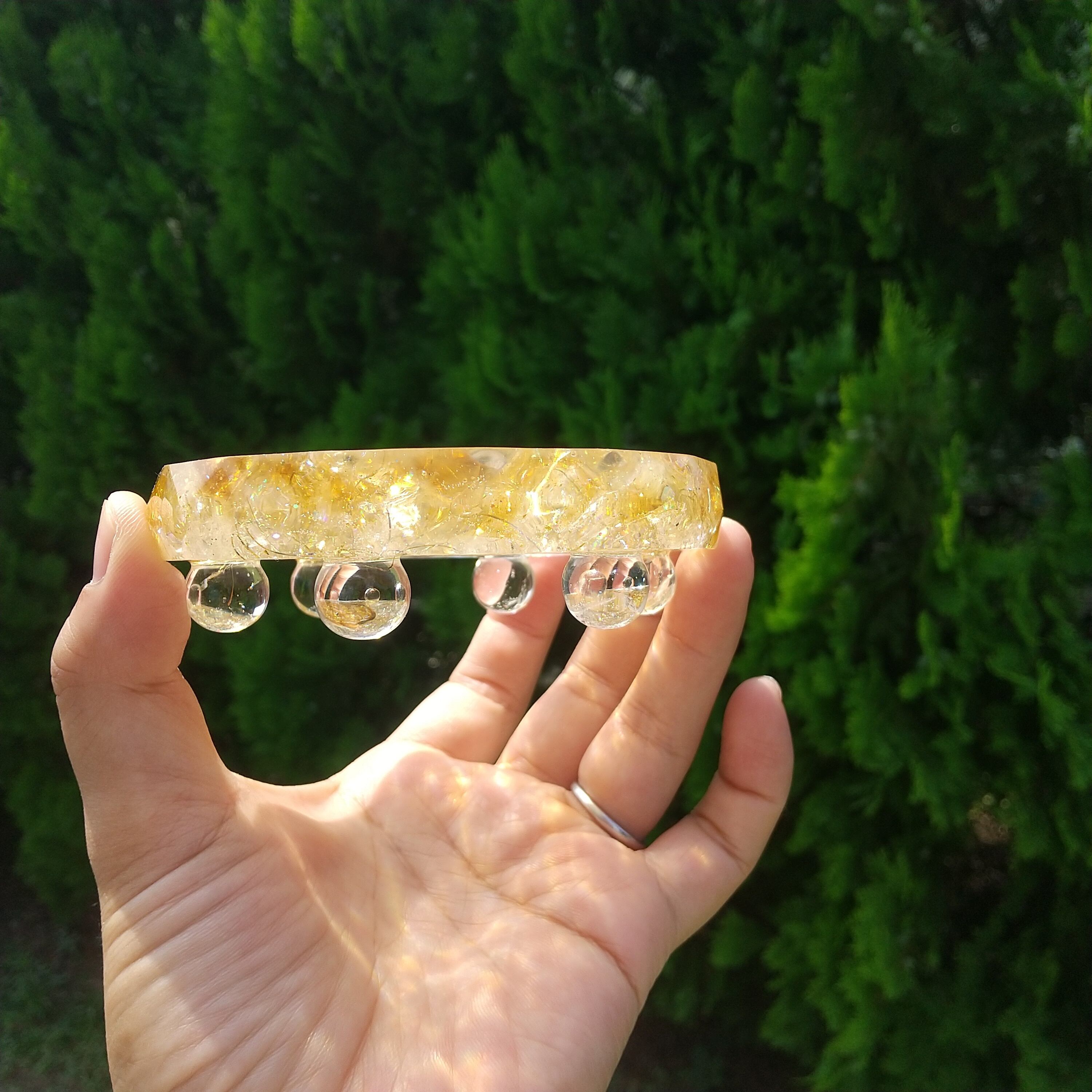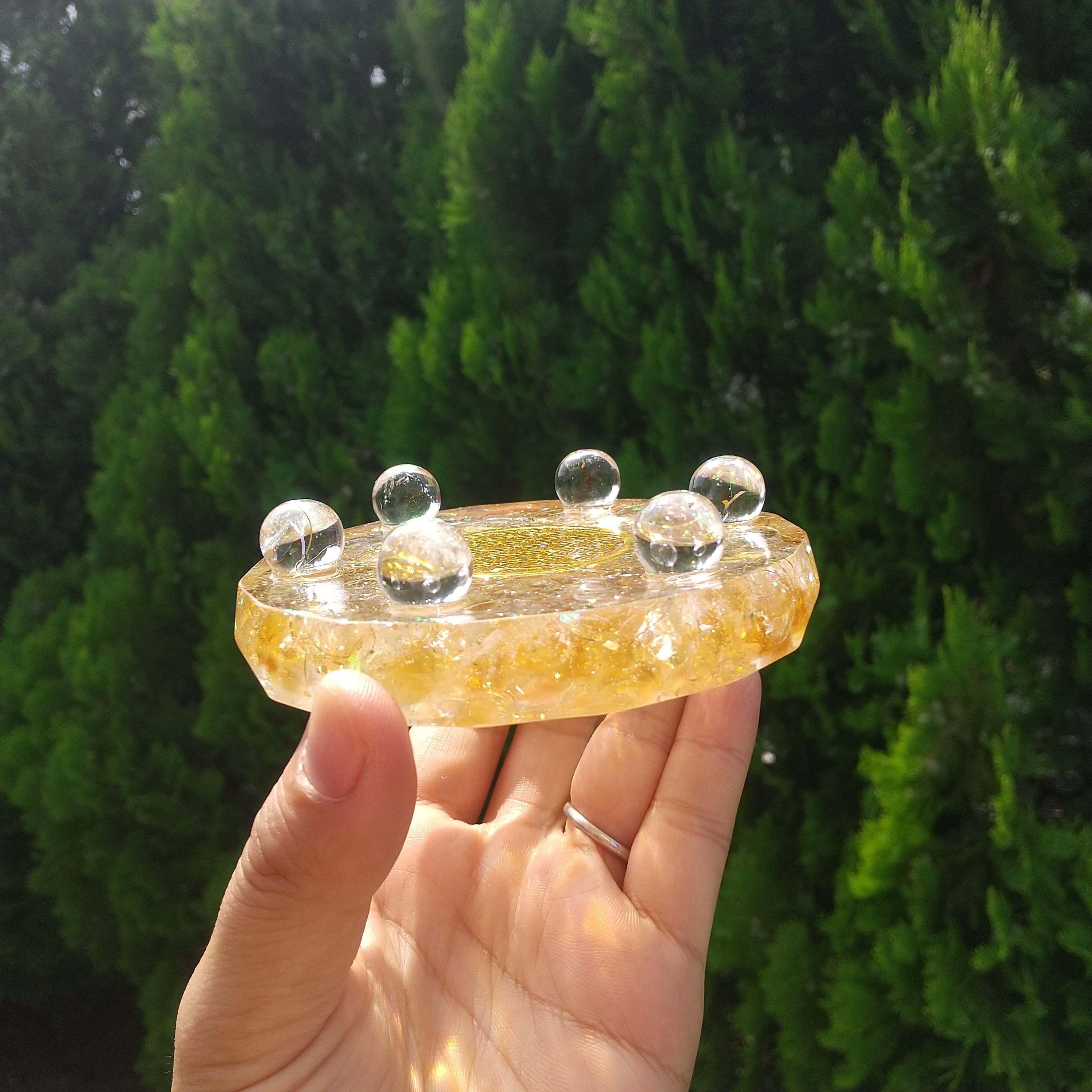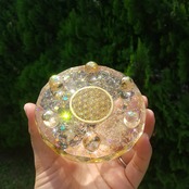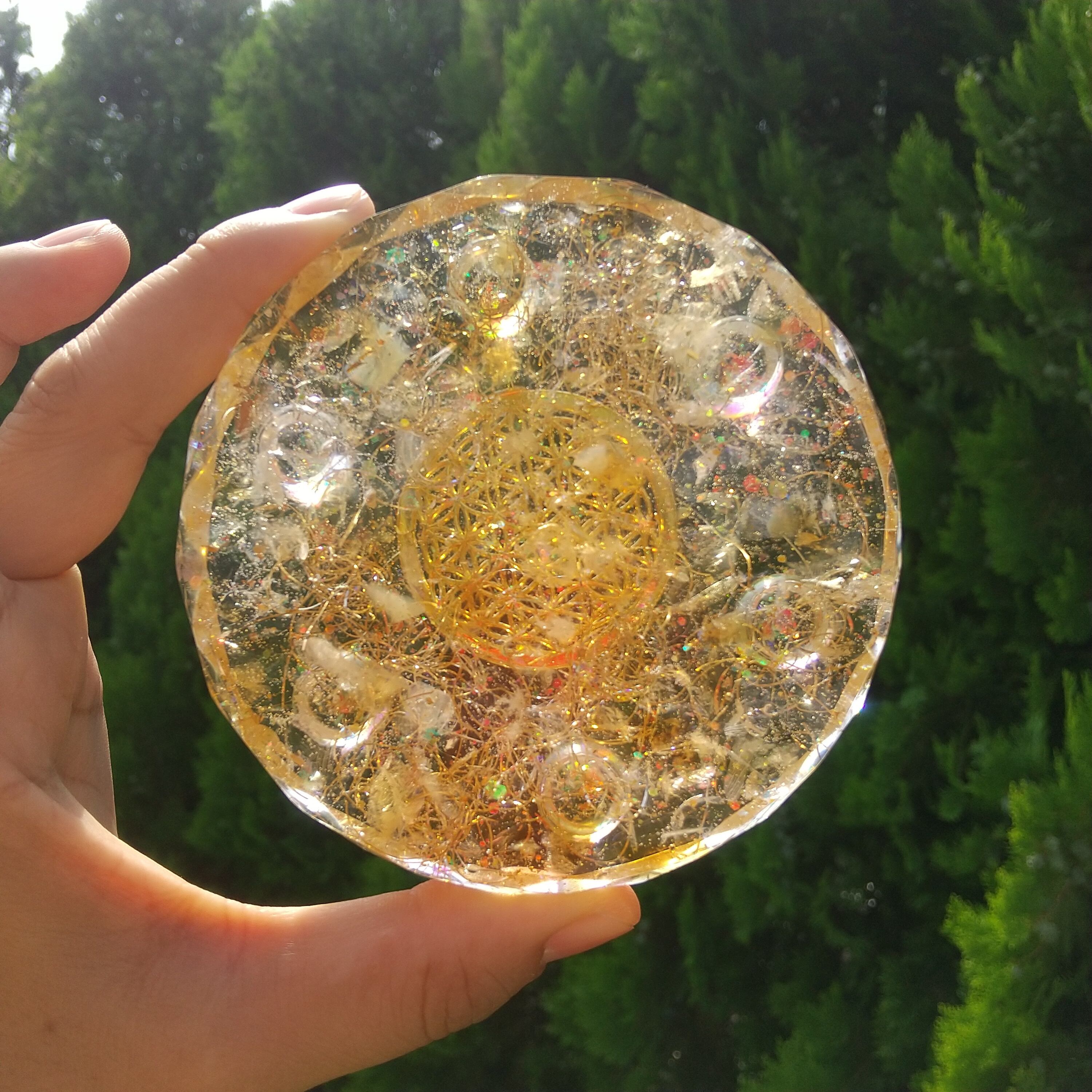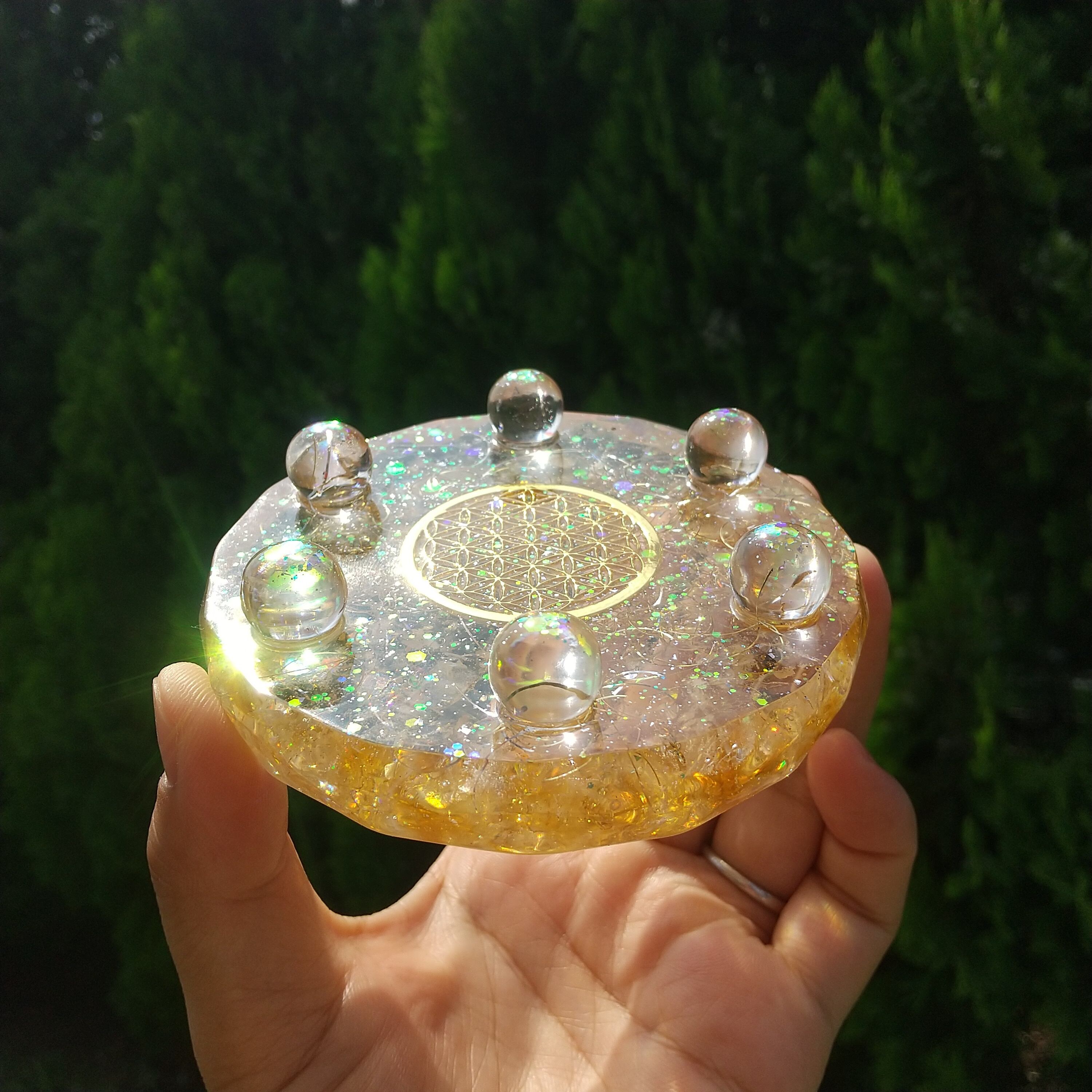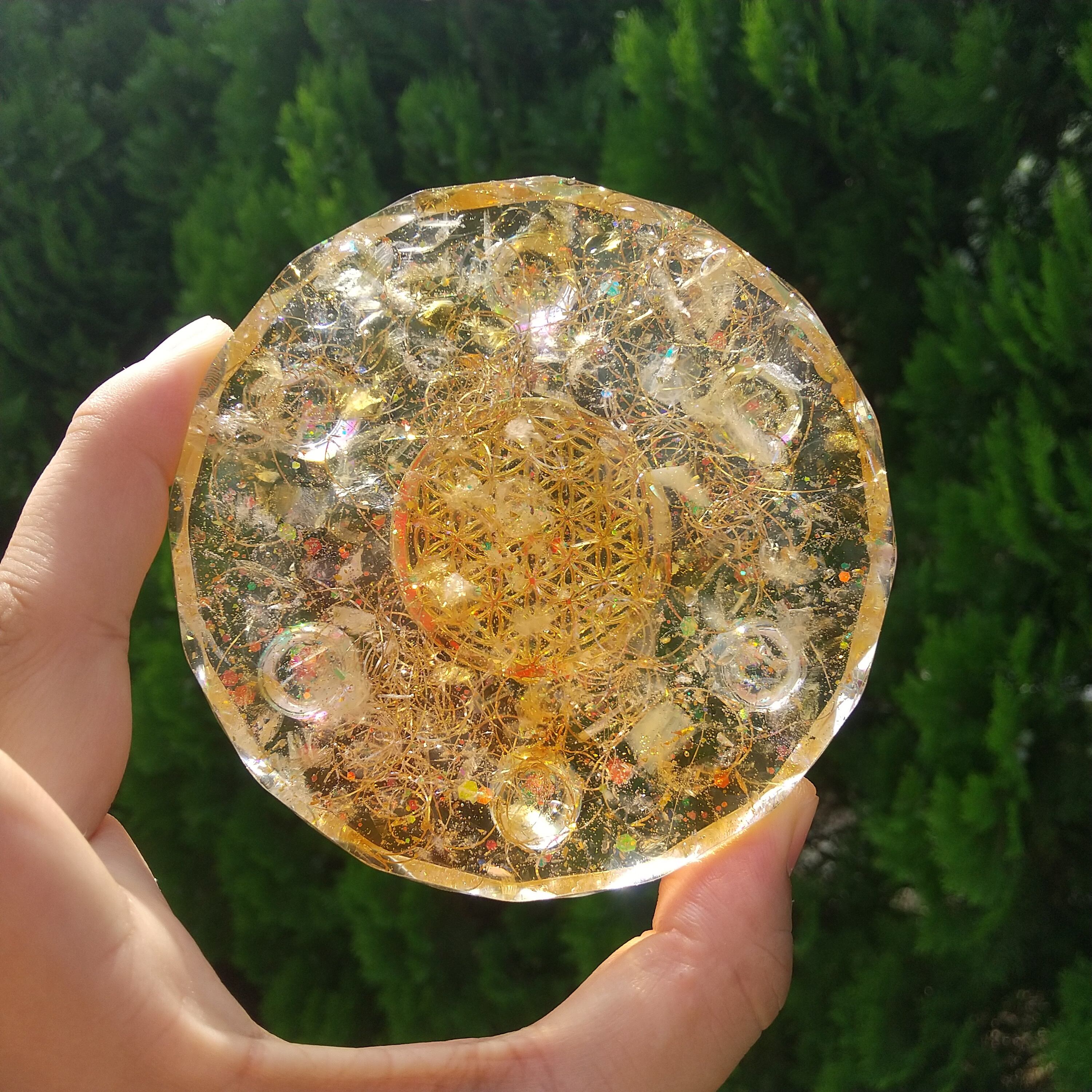 金運・財運を呼ぶ石シトリン入りフラワーオブライフのプレートオルゴナイト