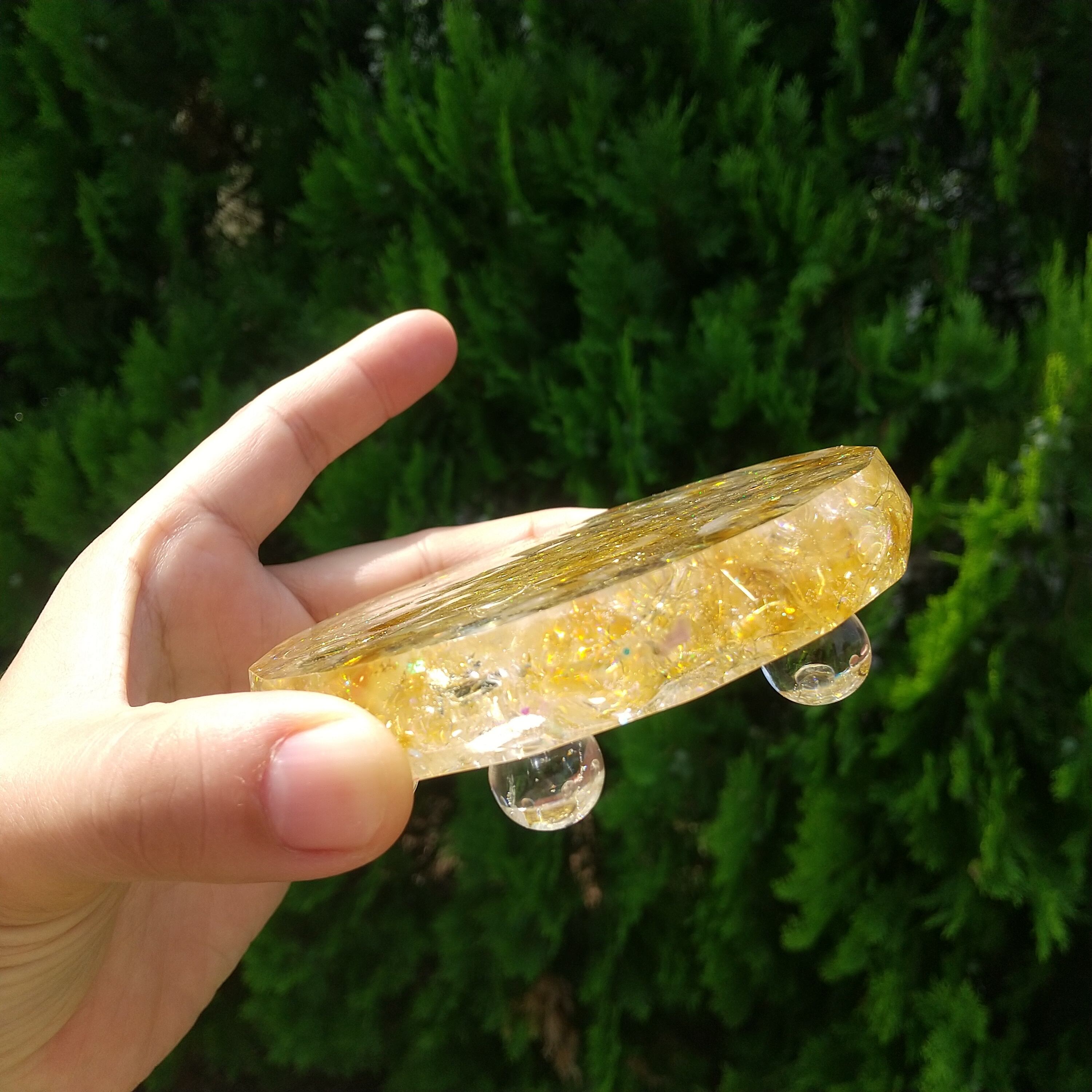 こちらは、シトリンが沢山入っているプレートのオルゴナイトです。