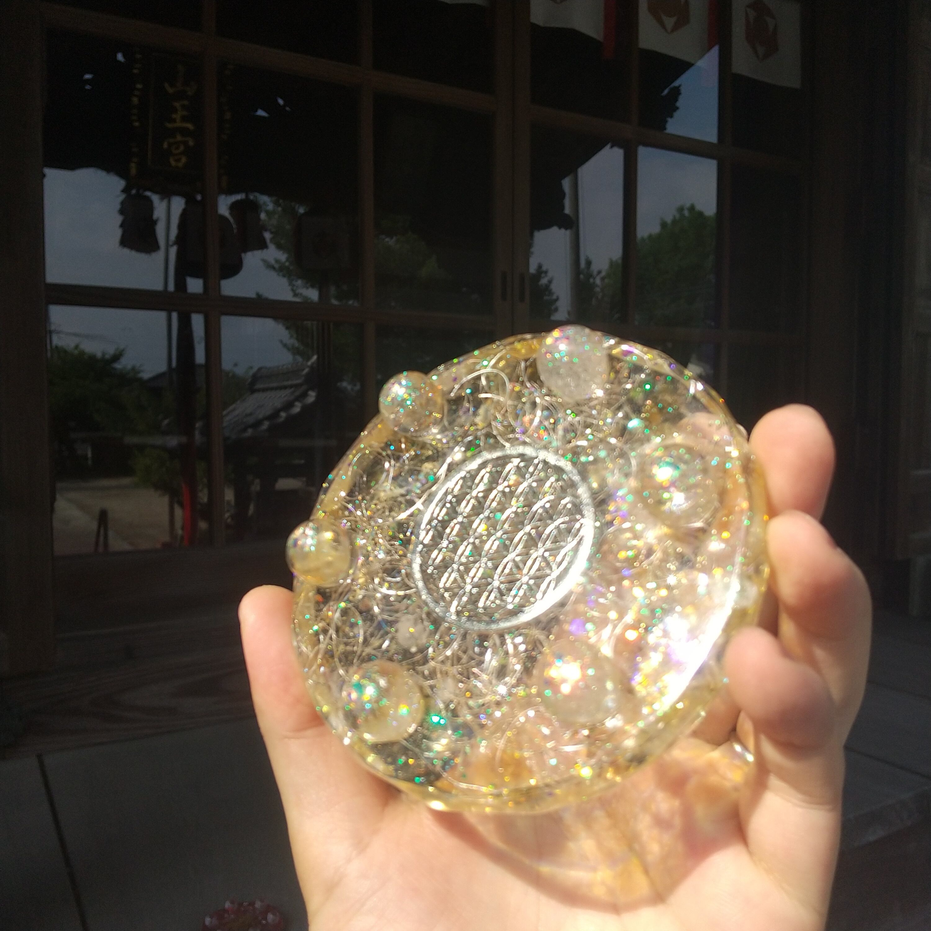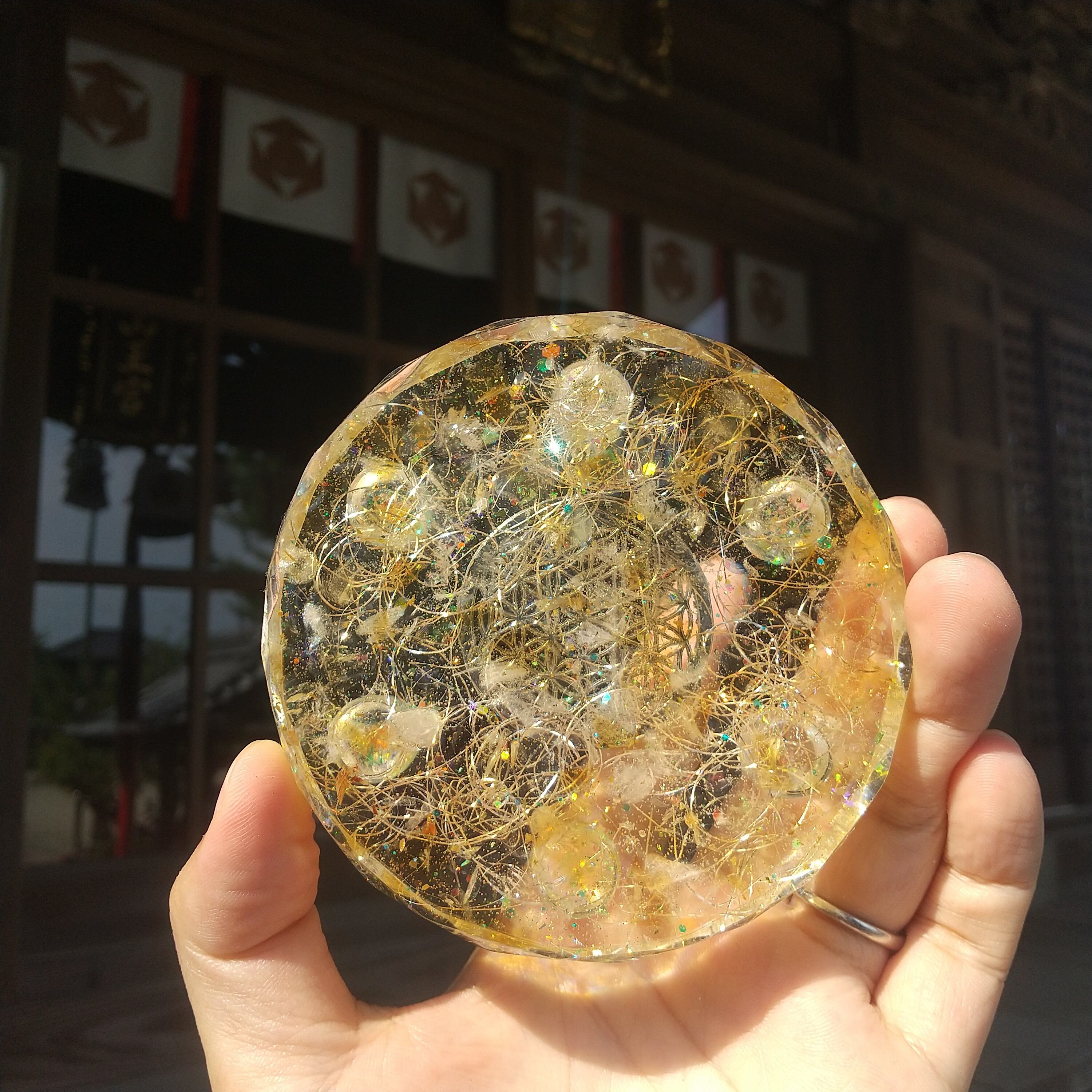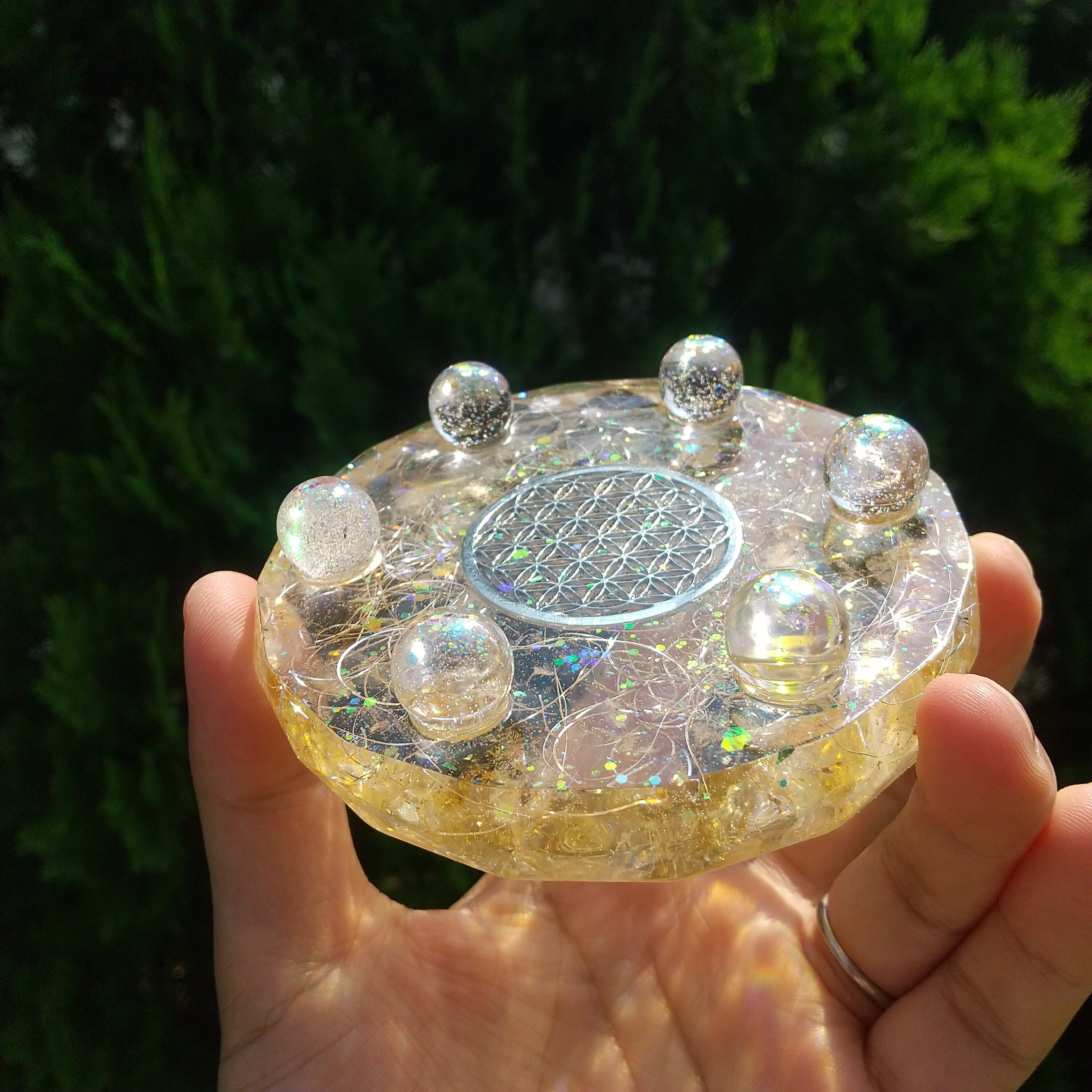 ※(あさひ様専用です) 金運・財運を呼ぶ石シトリン入りフラワーオブライフのプレートオルゴナイト