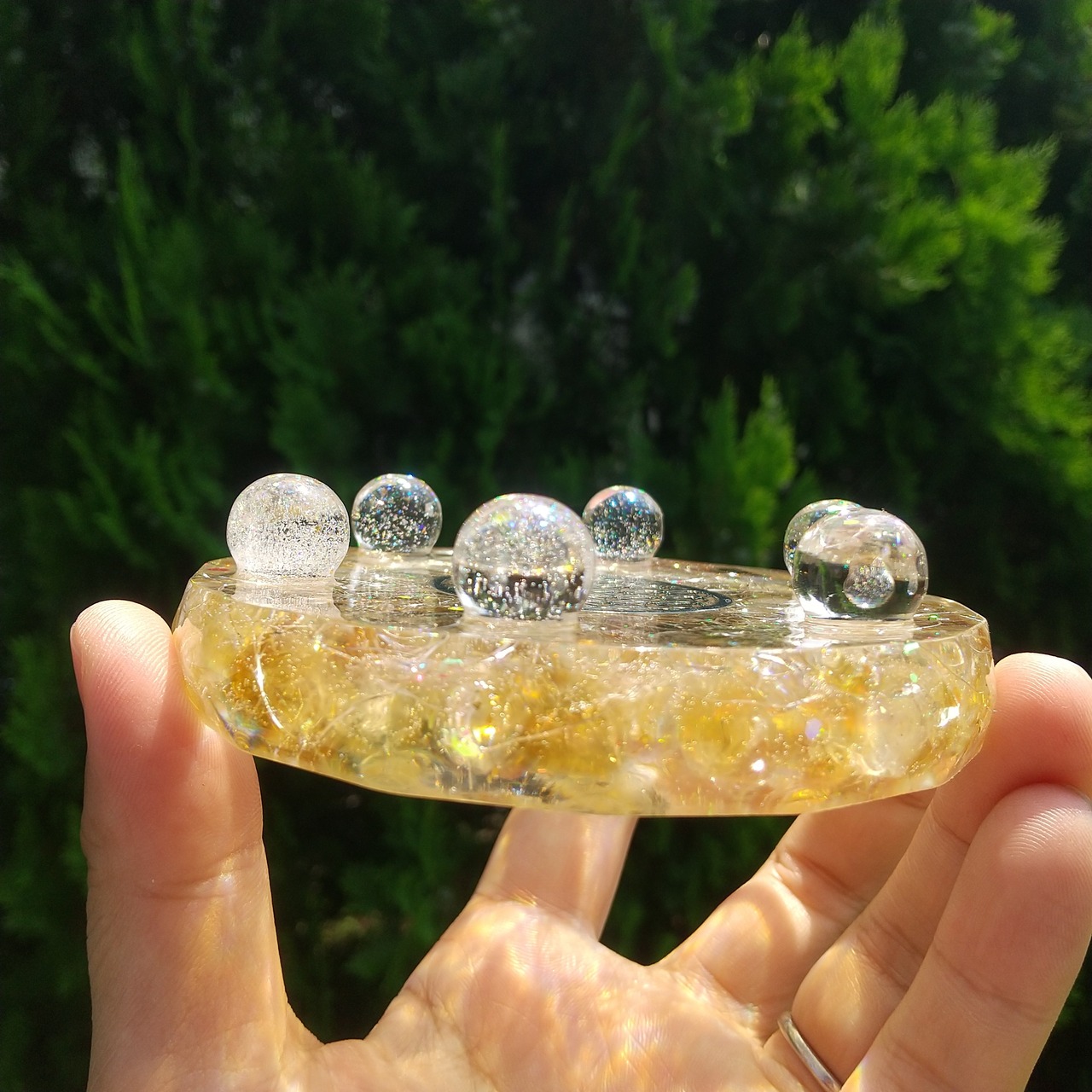 こちらは、シトリンが沢山入っているプレートのオルゴナイトです。