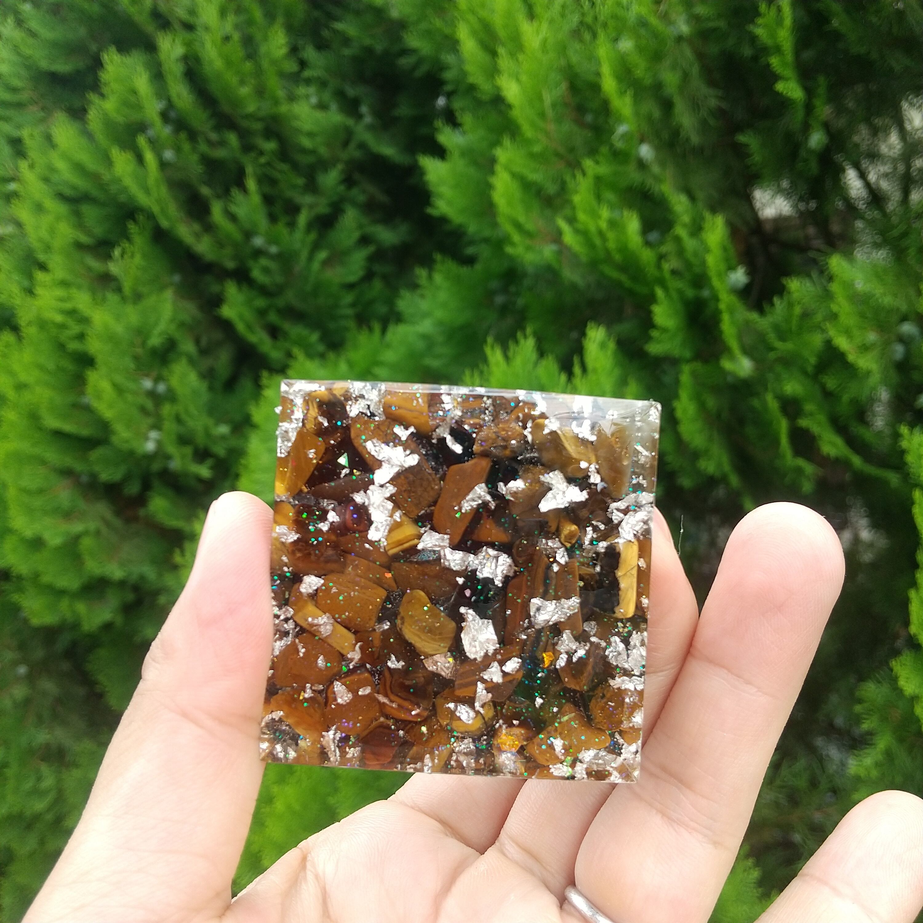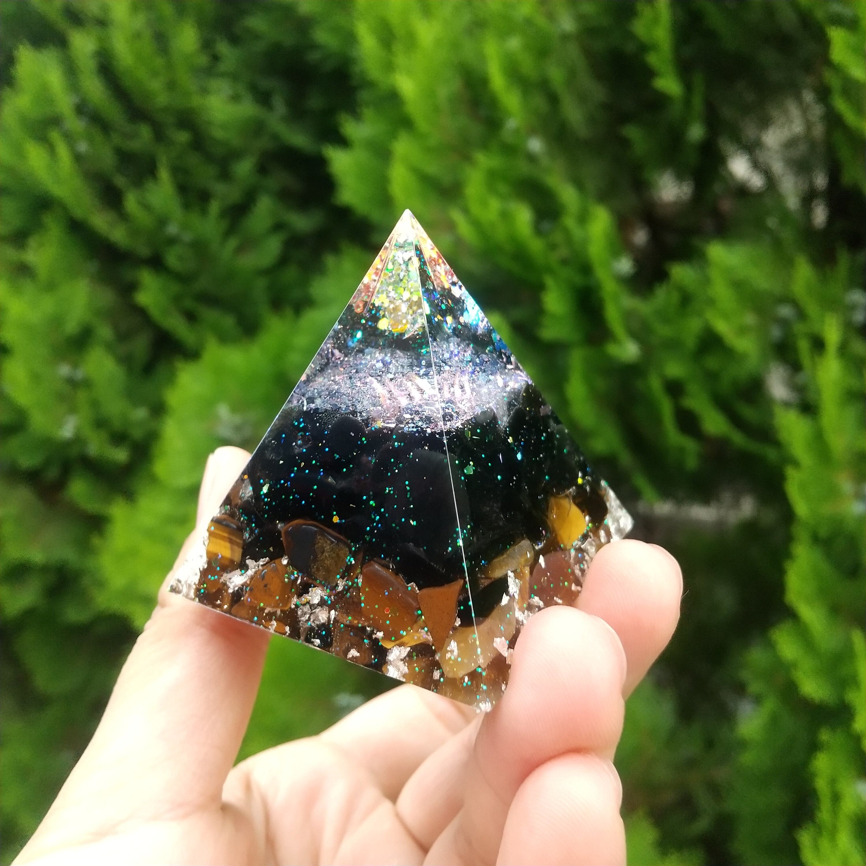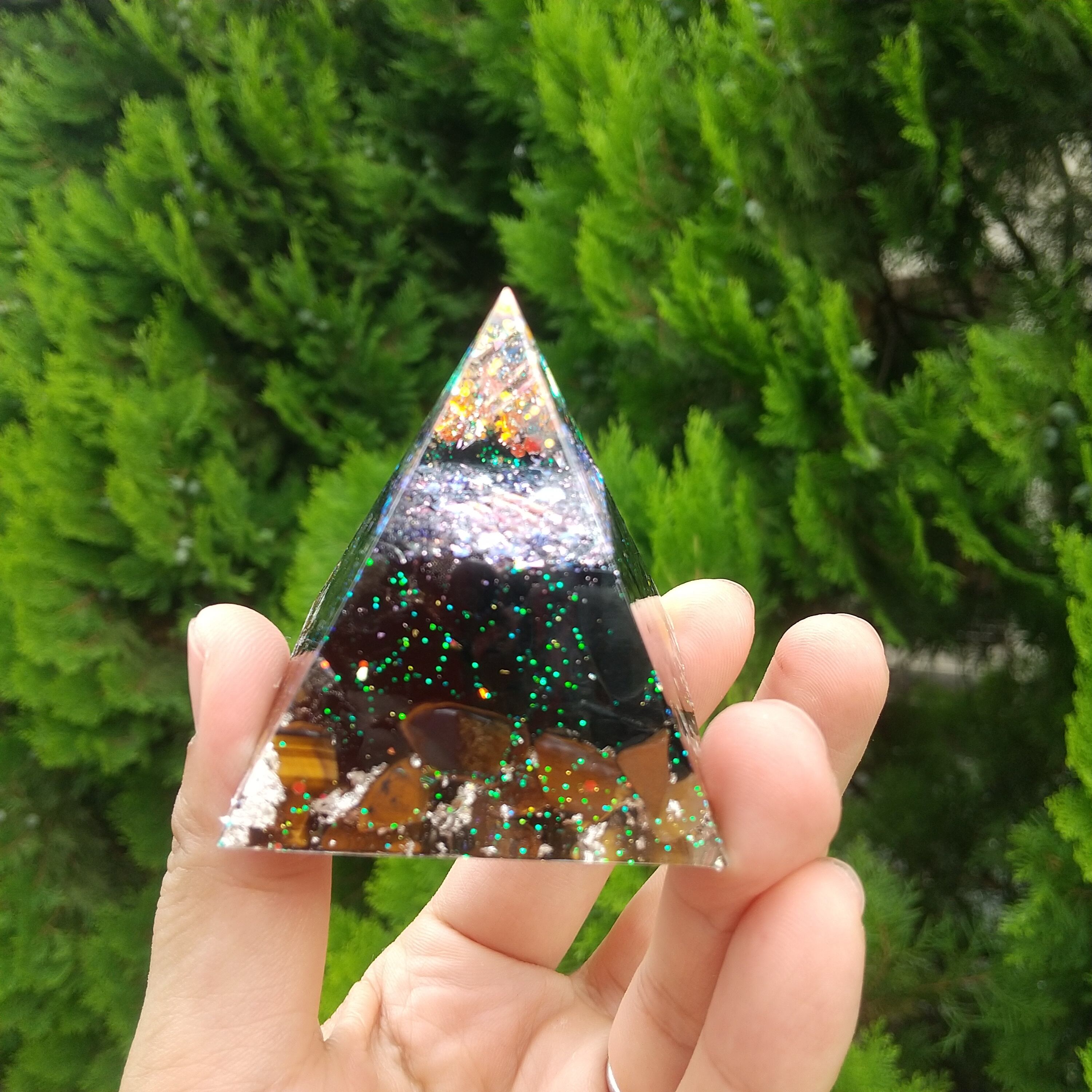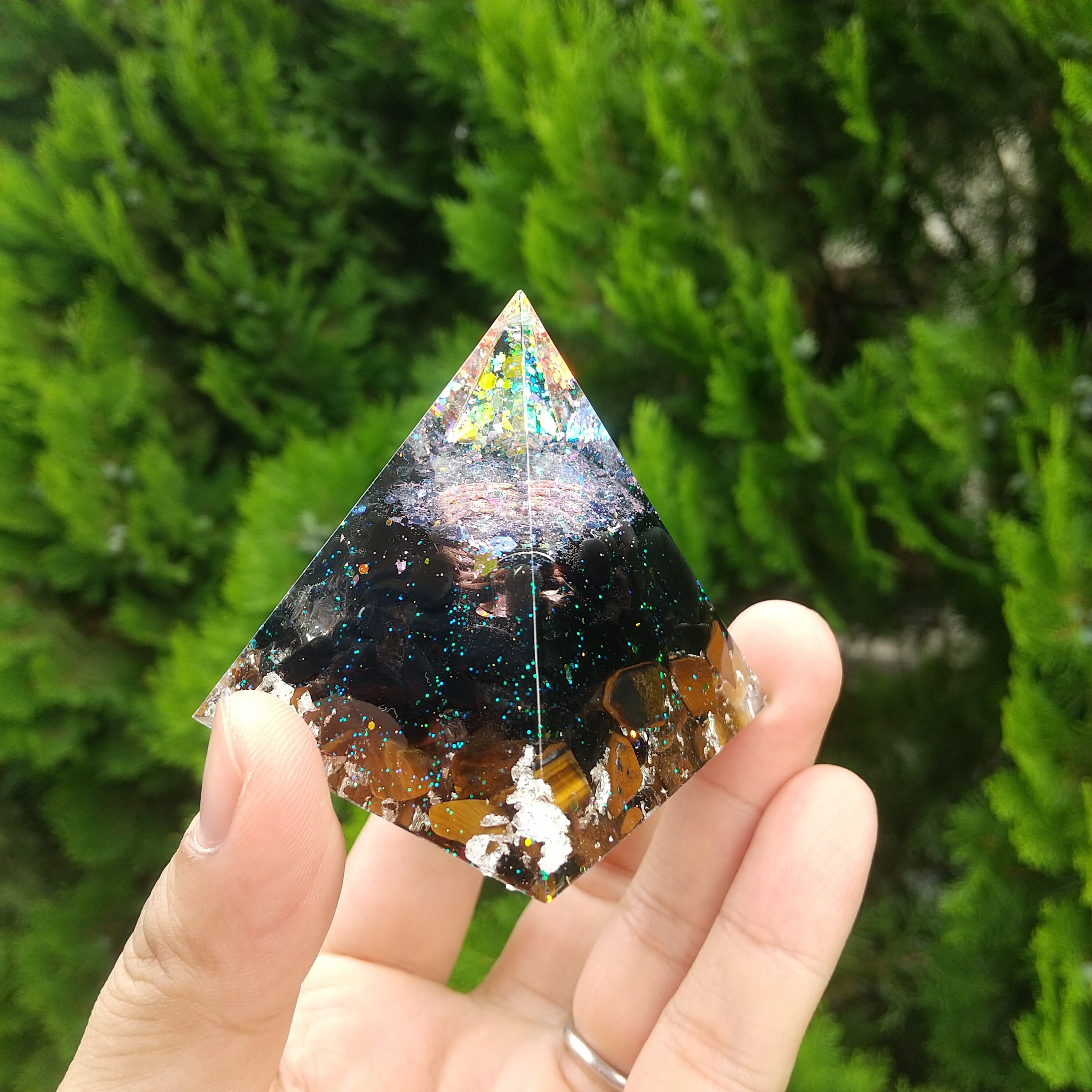 身を守るモリオン(黒水晶)と広い視野と洞察力を与える "幸運を招く聖なる石"タイガーアイのミニオルゴナイトです!