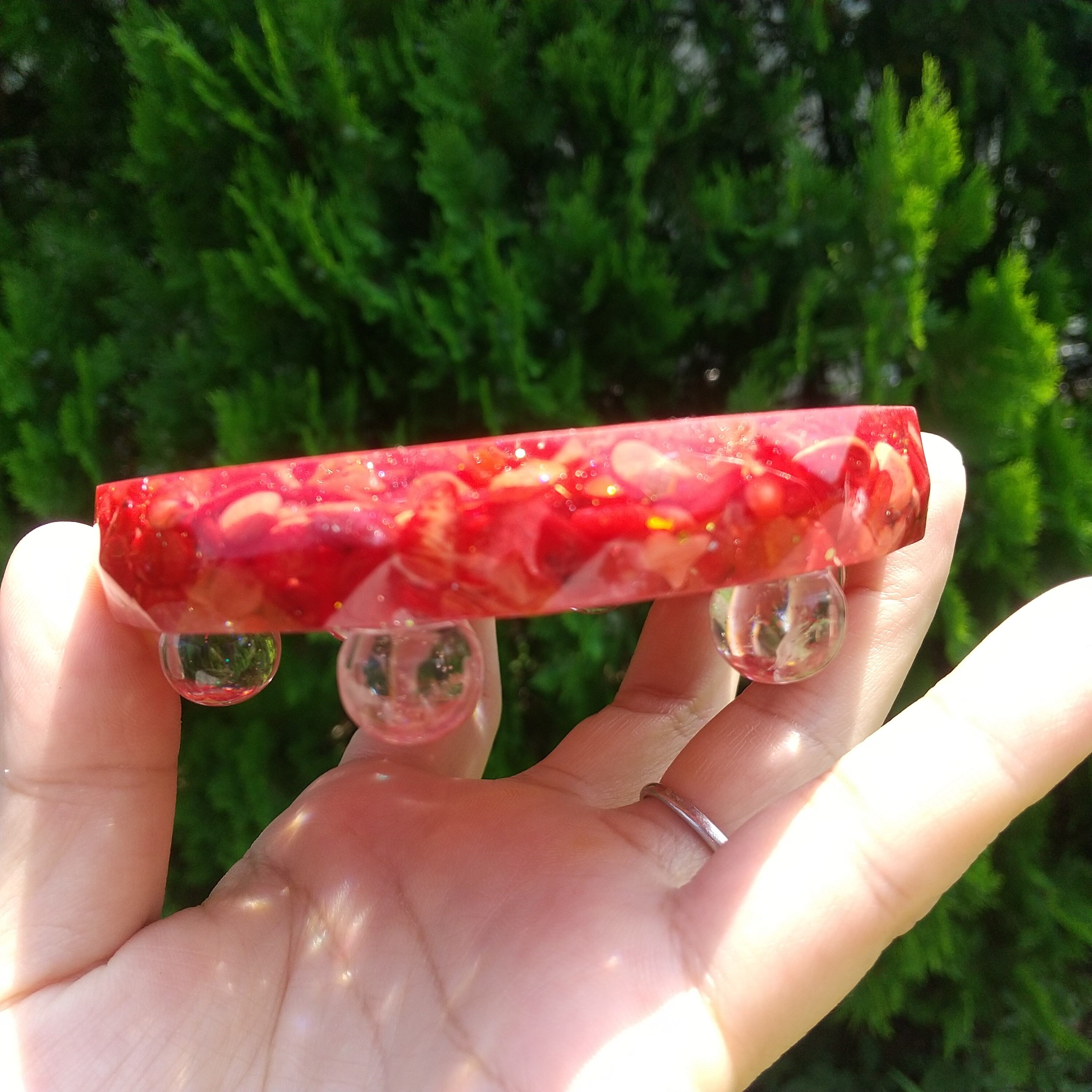 レッドコーラル(赤珊瑚)とA5ランクヒマラヤ水晶がふんだんに入ったメタトロンキューブのプレートオルゴナイト完成です!