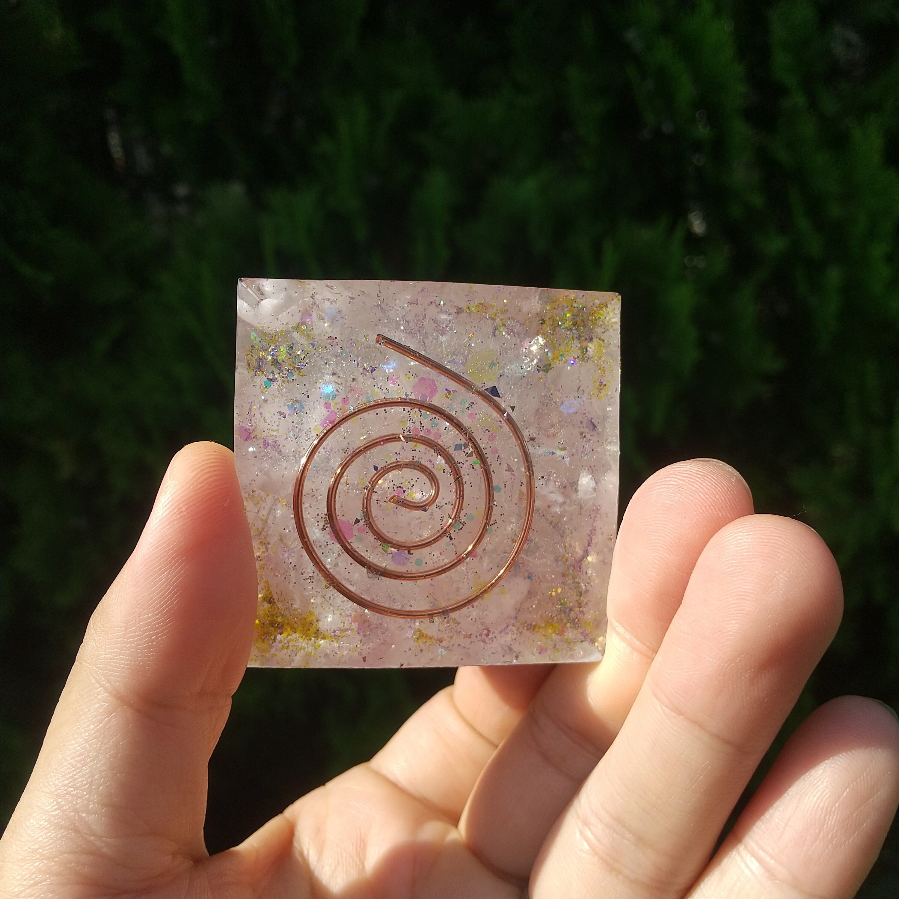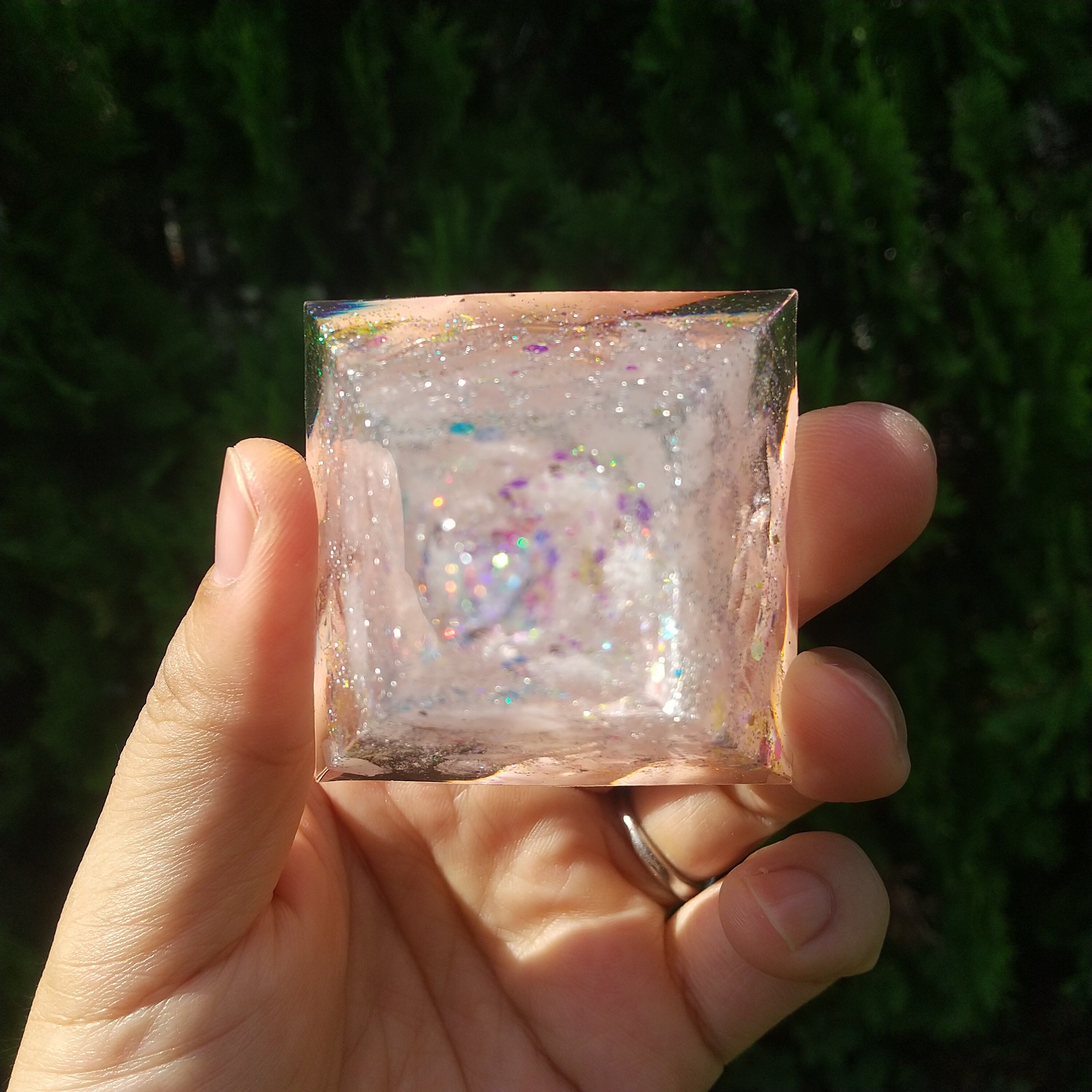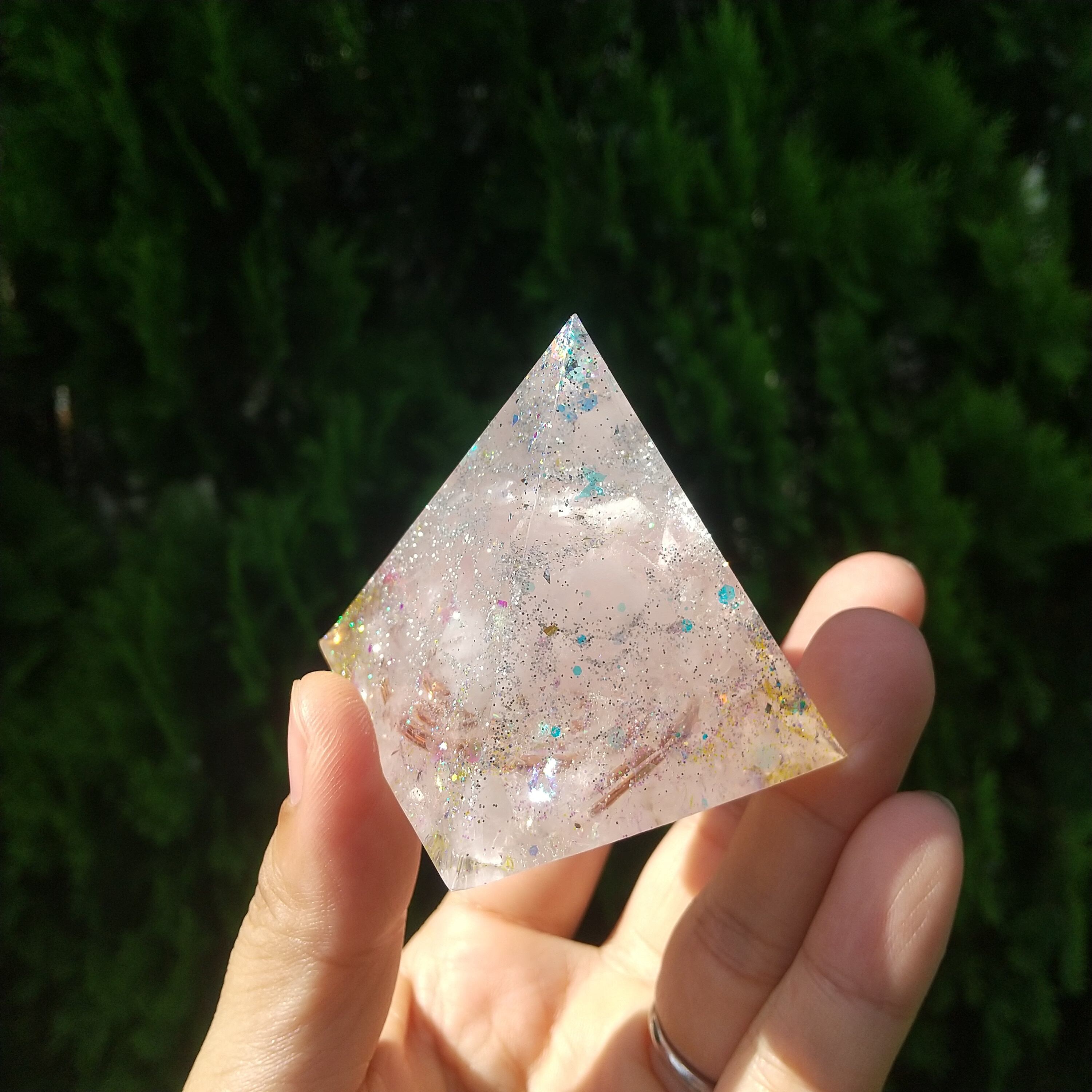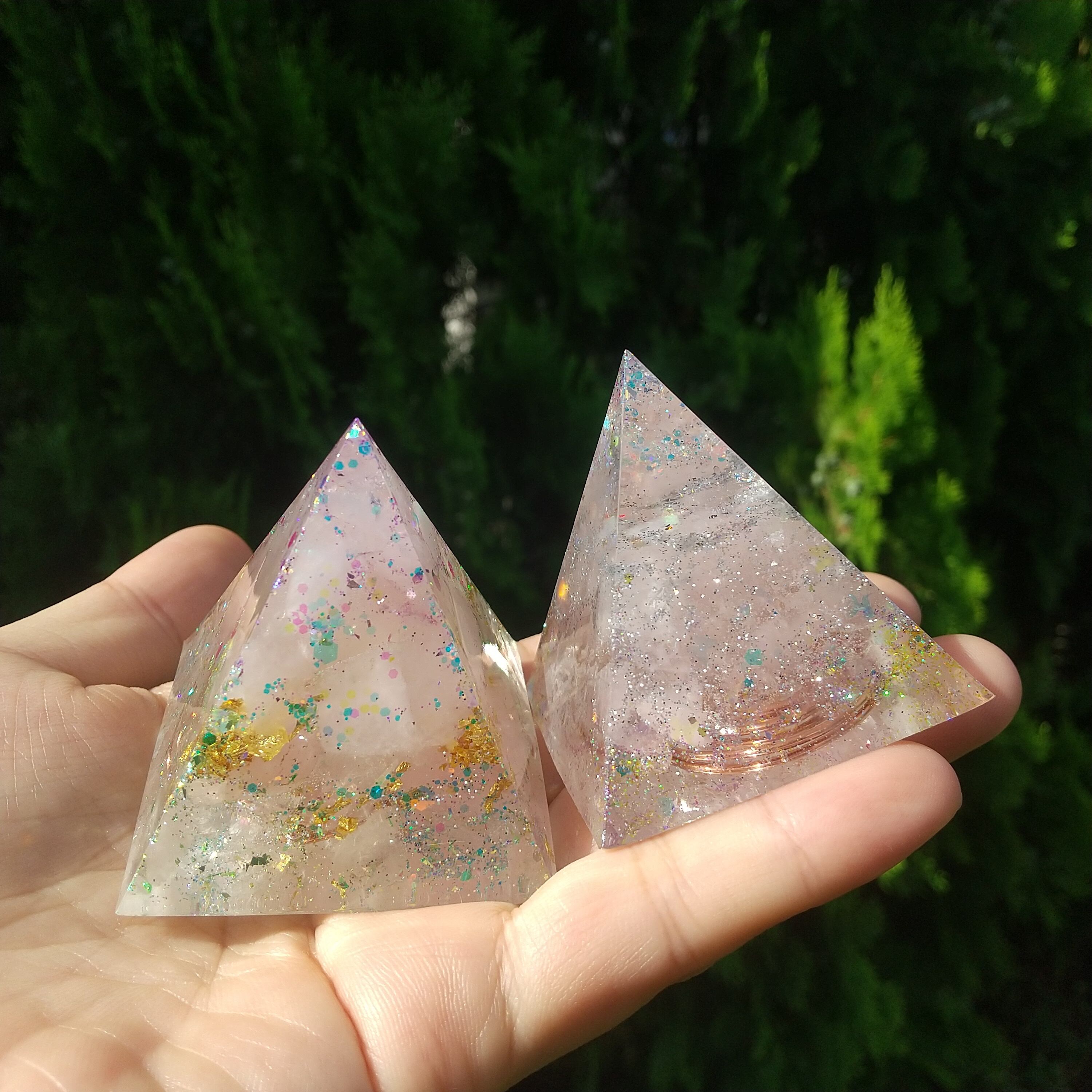 ゴールドは全面にローズクォーツ、A5ランクヒマラヤ水晶、金箔を封入しました。