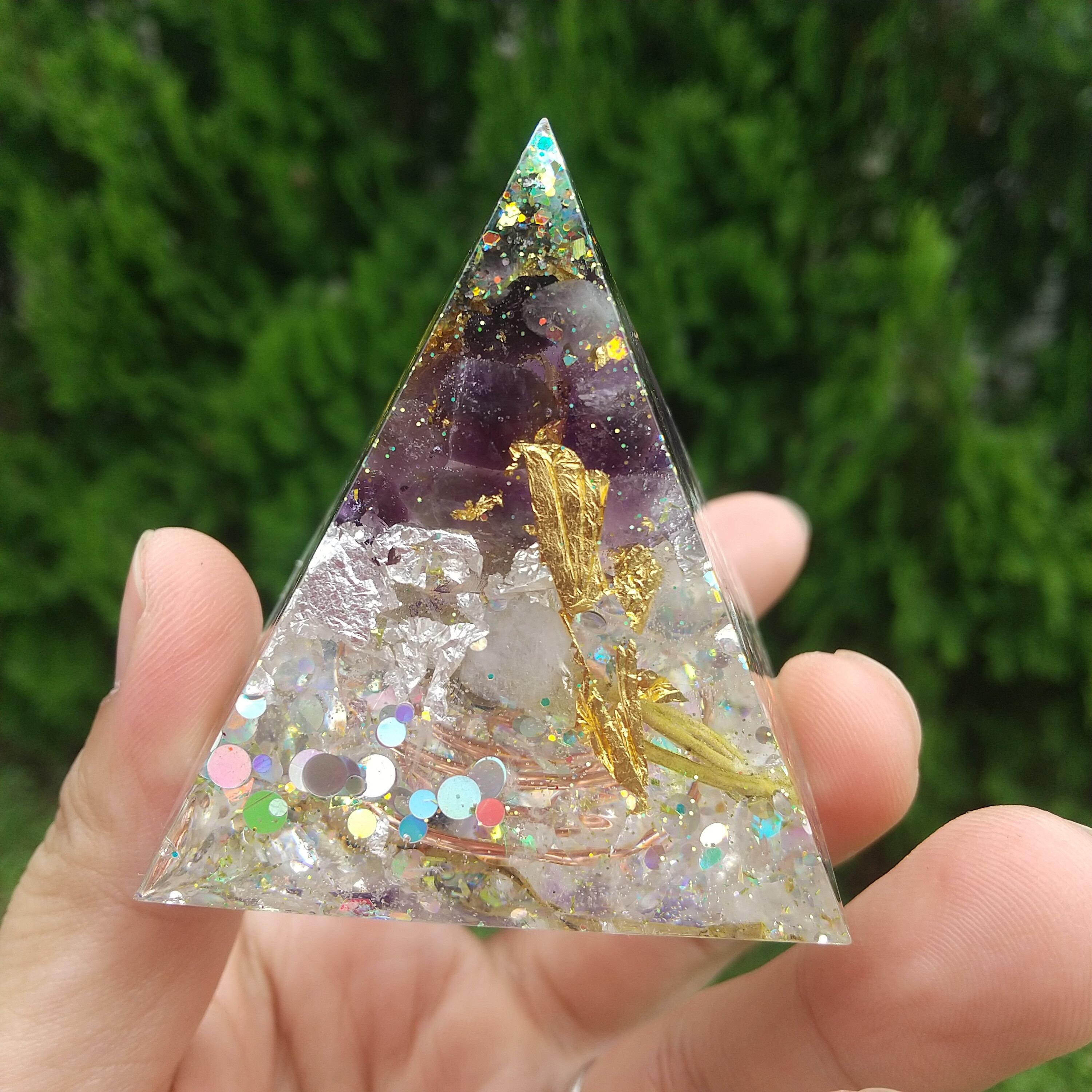 ホワイトセージ封入 真実の愛を守りぬく天然石アメジストのミニオルゴナイト