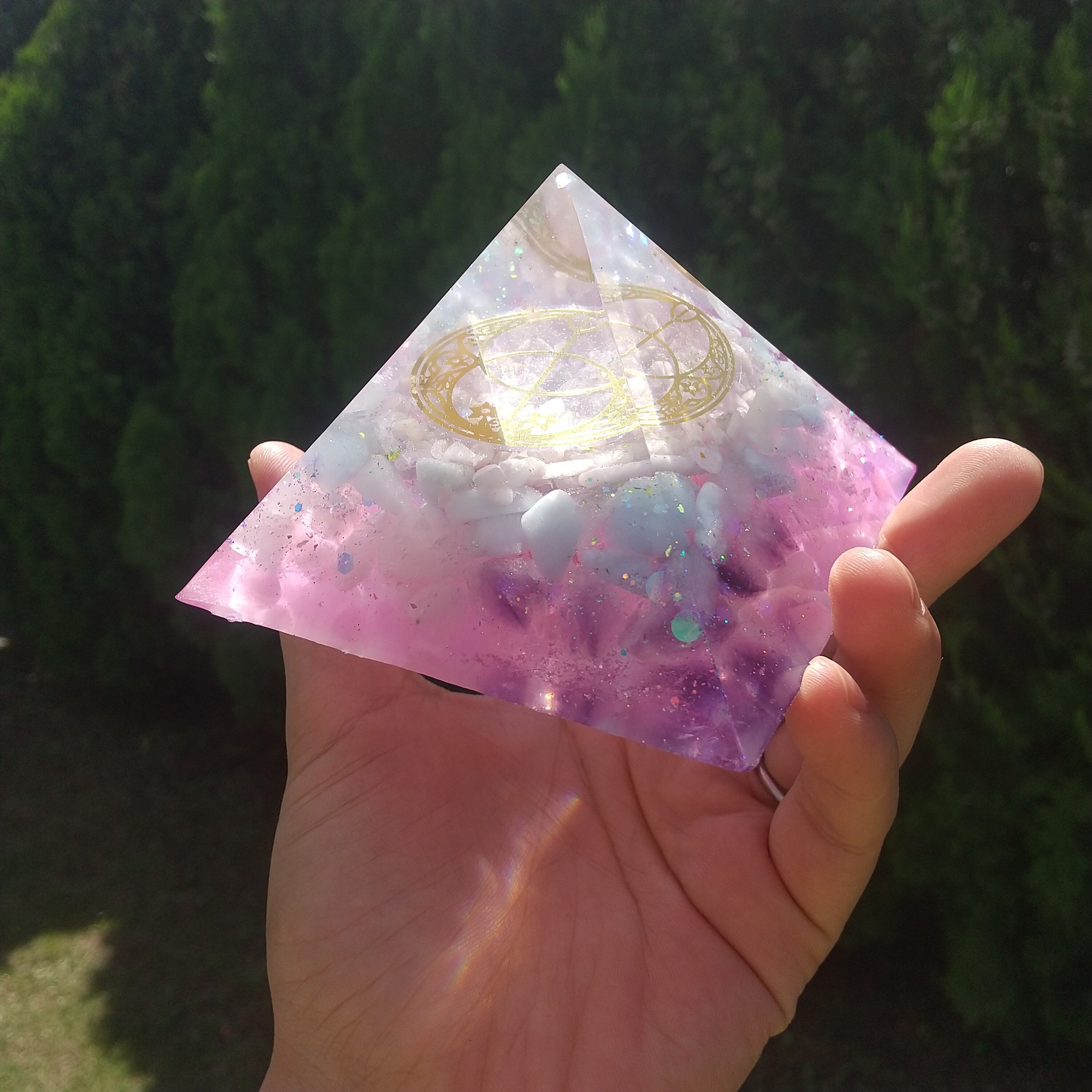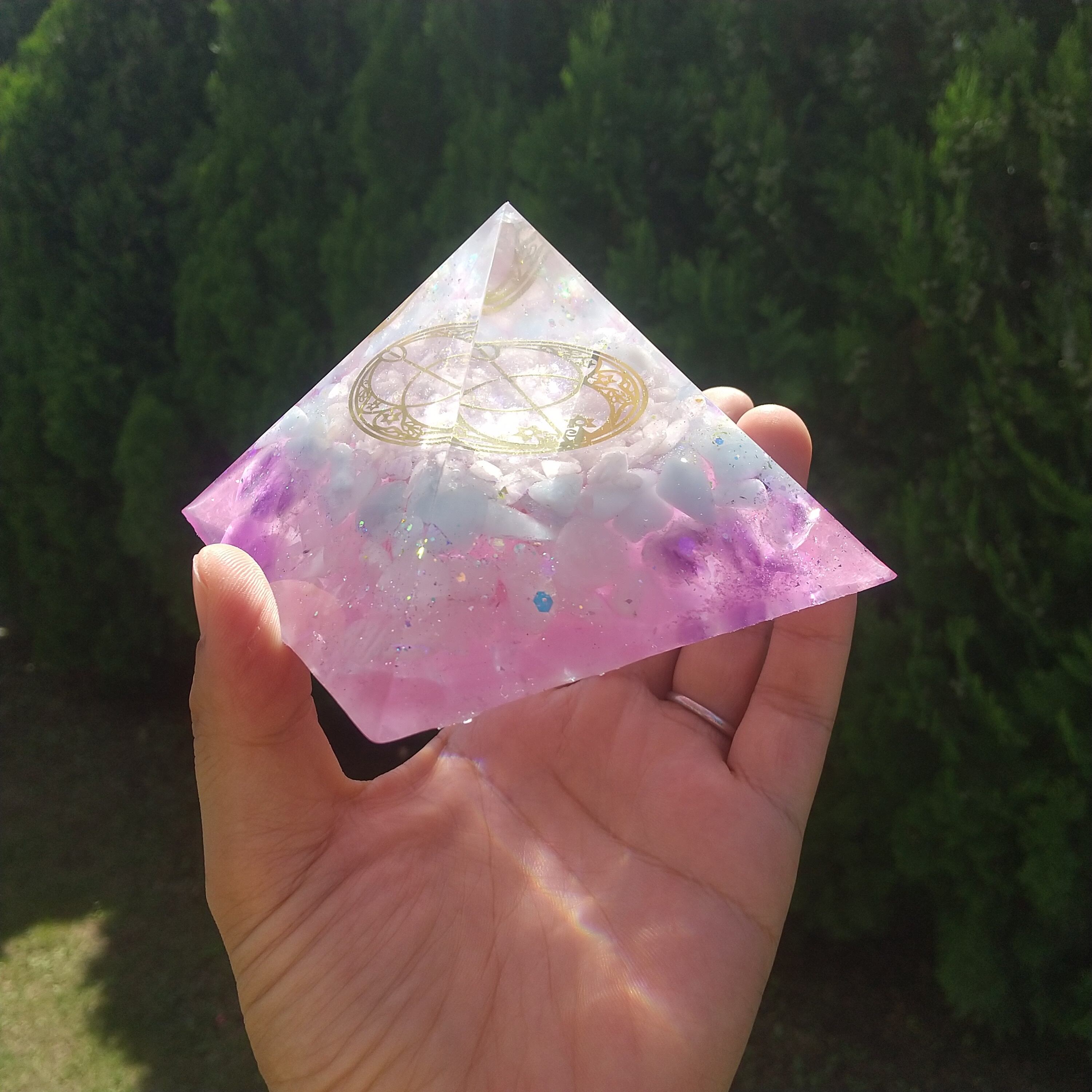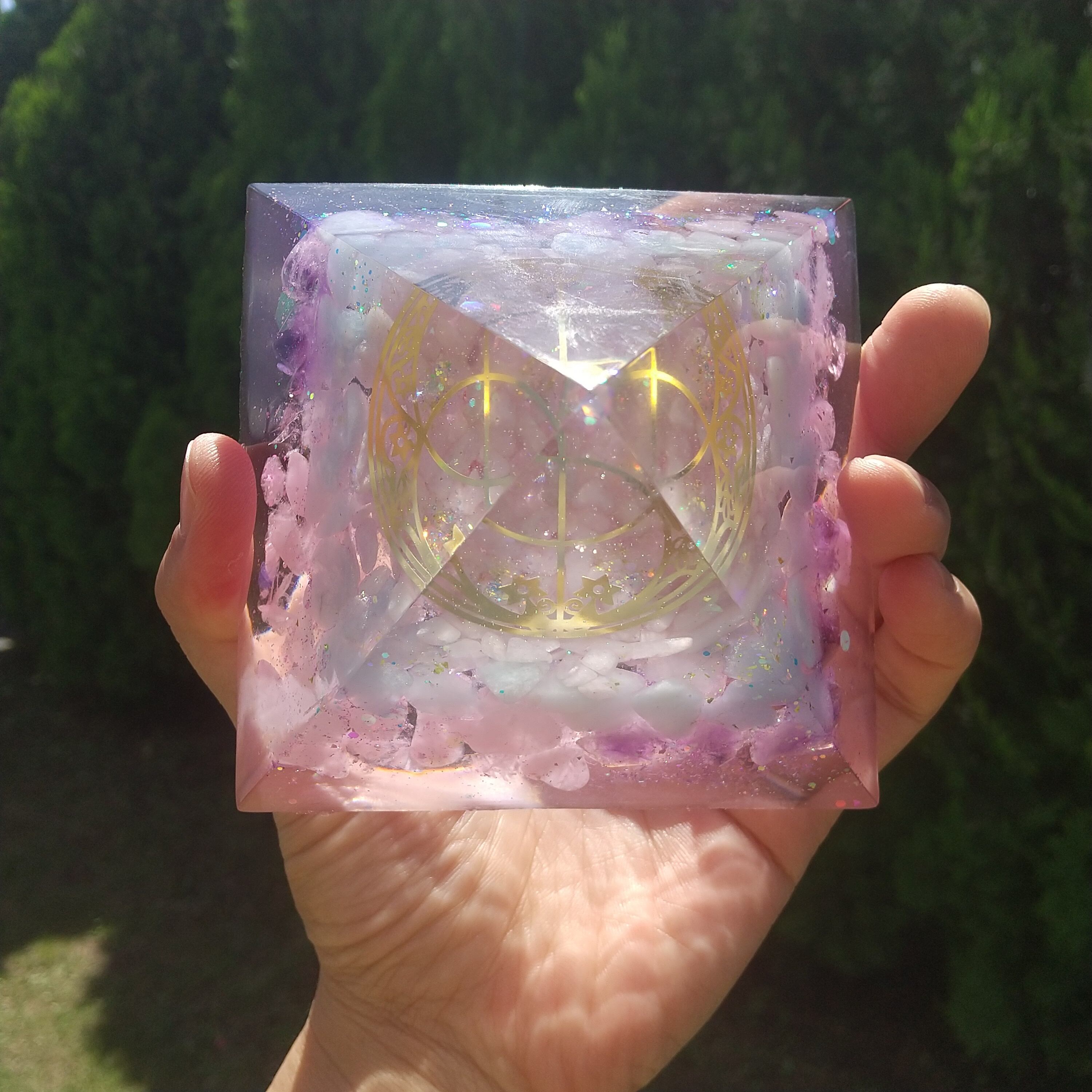 こちら、奇跡を起こすカトリックの巡礼地ルルドの泉の聖水が入ったチャリスウェル(開花)のオルゴナイトです♥