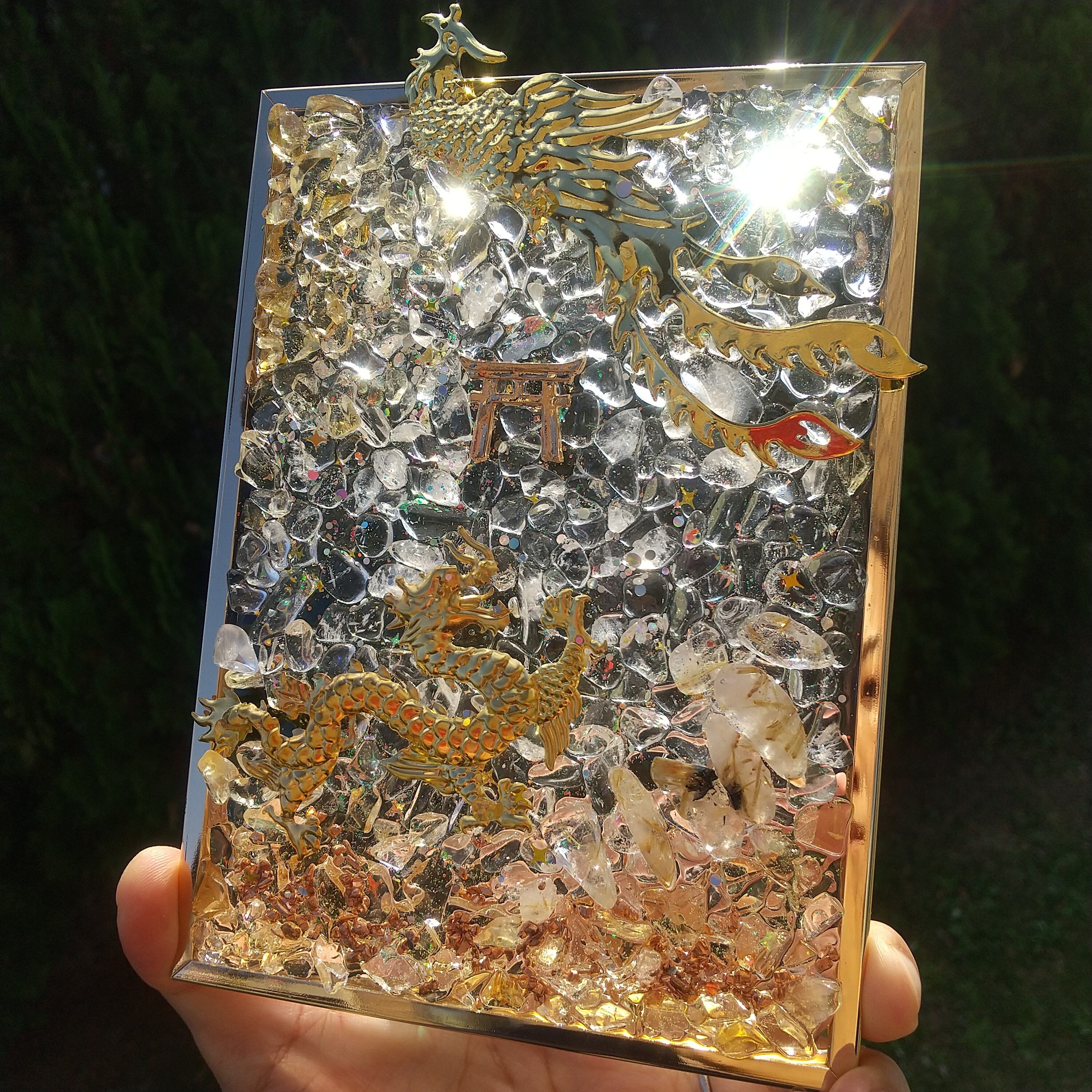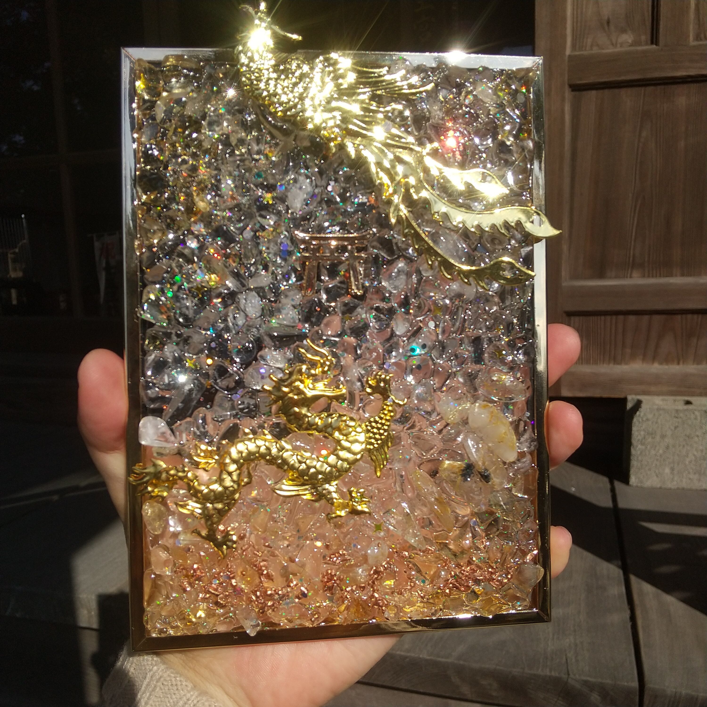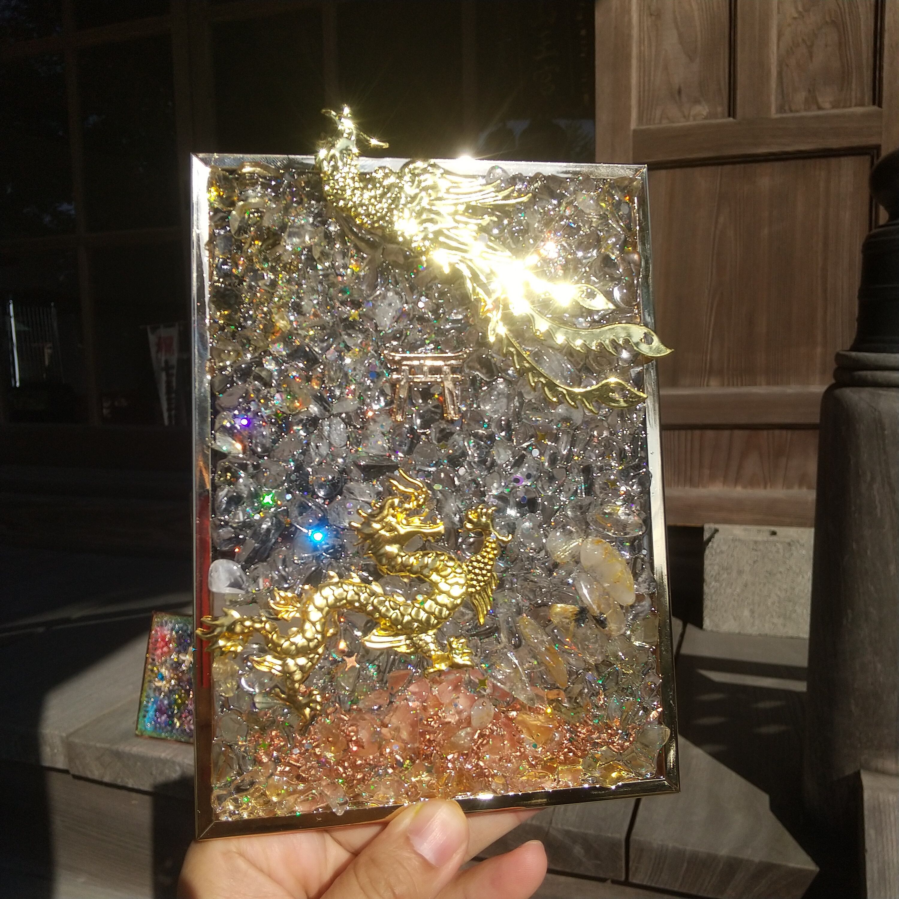こちらは、鳳凰と龍のスタンドオルゴナイトです✨中央部に鳥居を置きました。