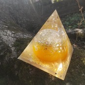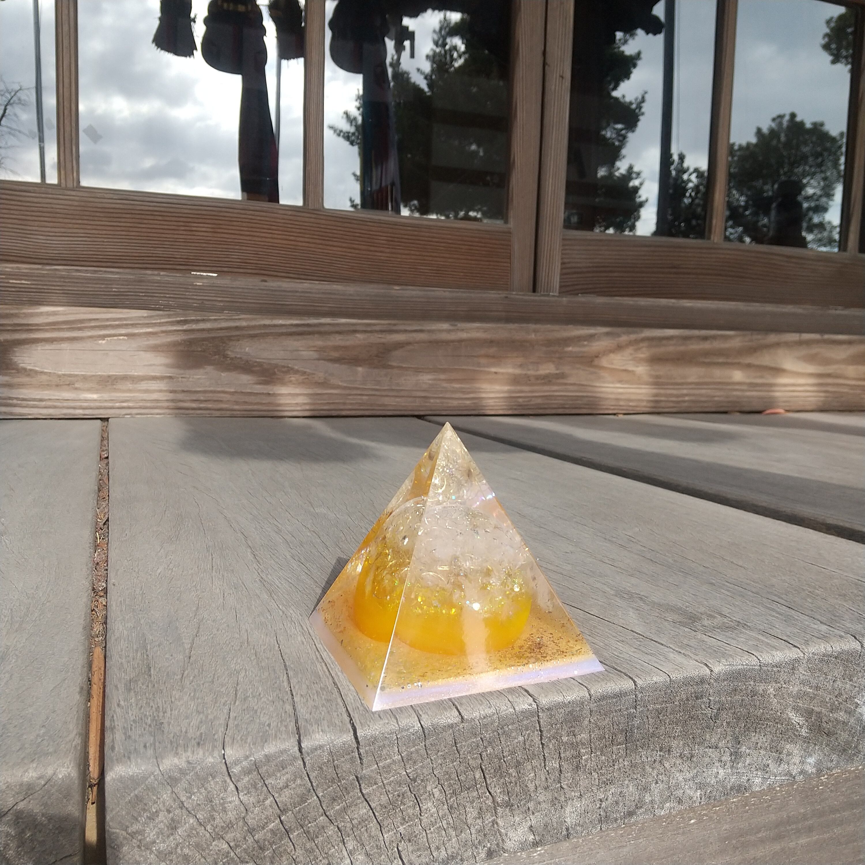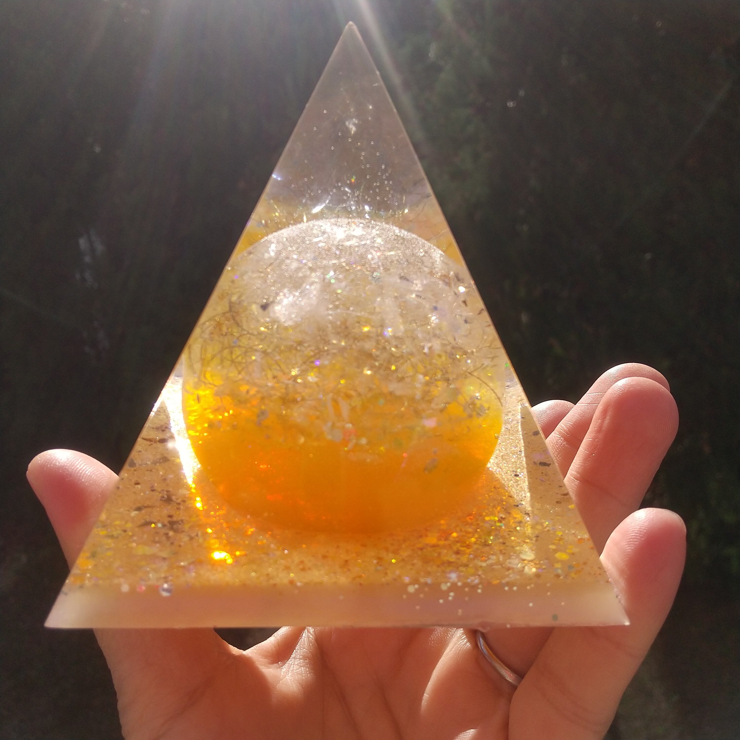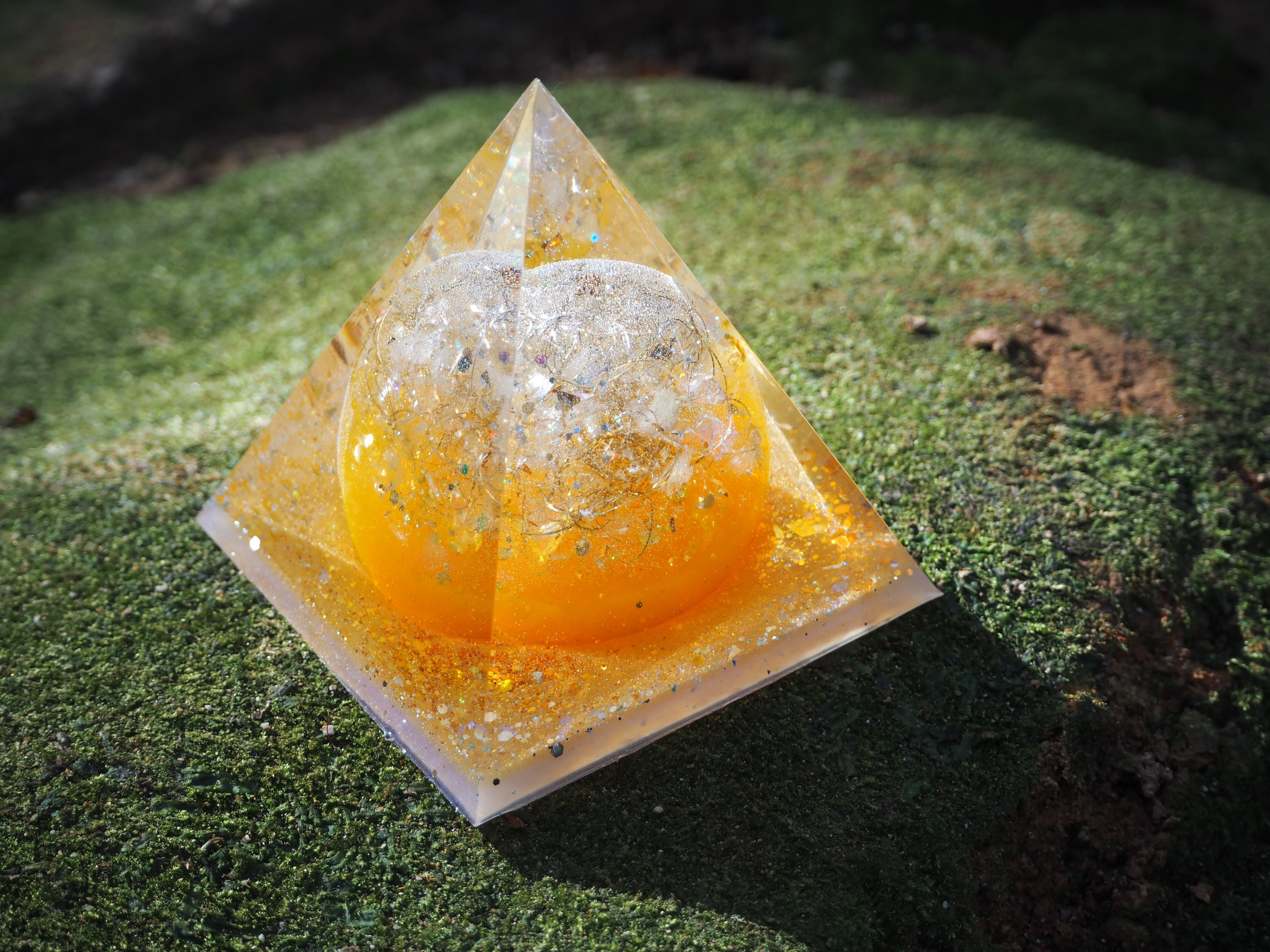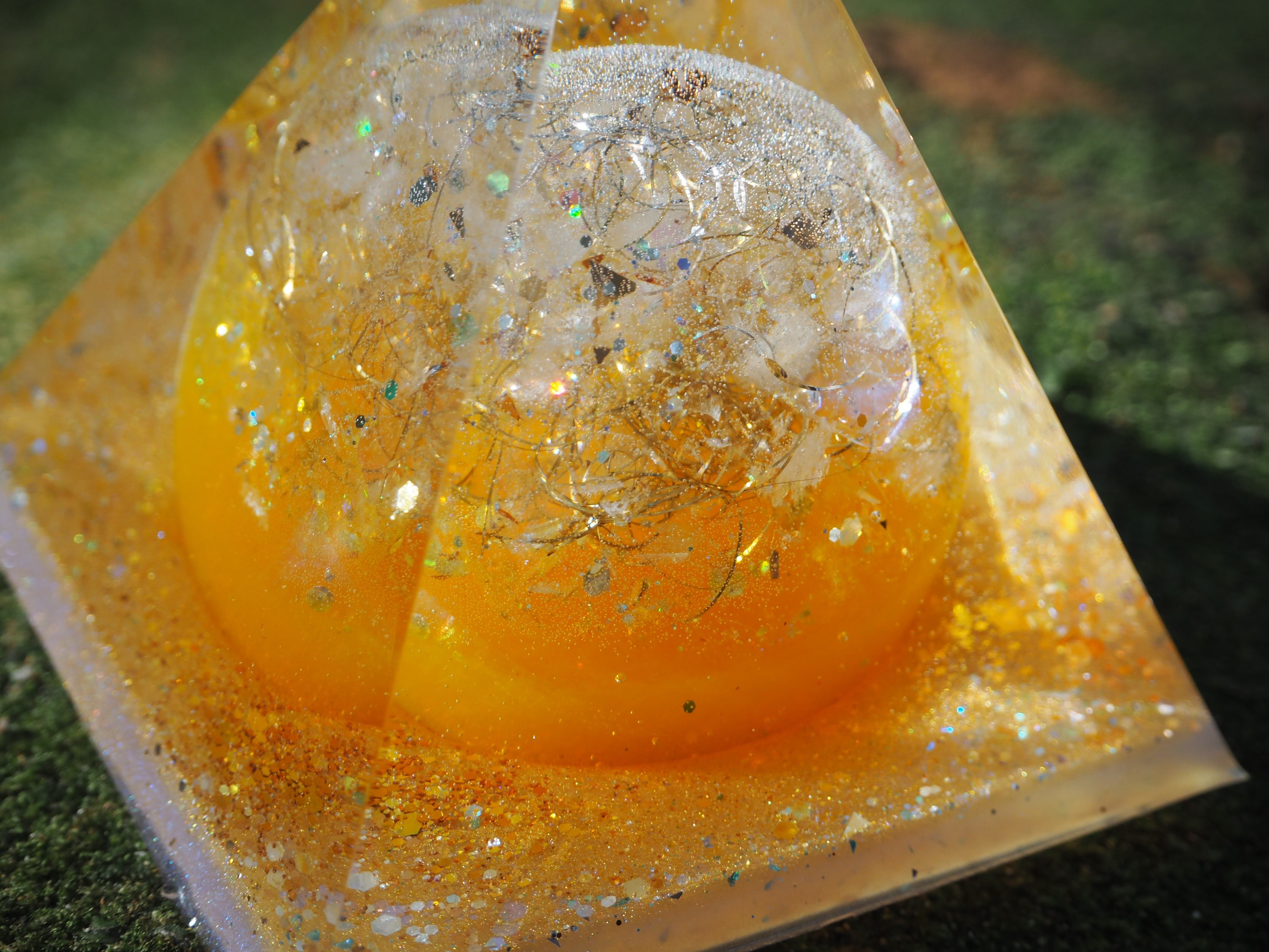 光輝く黄色のエナジーボールオルゴナイトを封入した美しい作品が完成致しました。