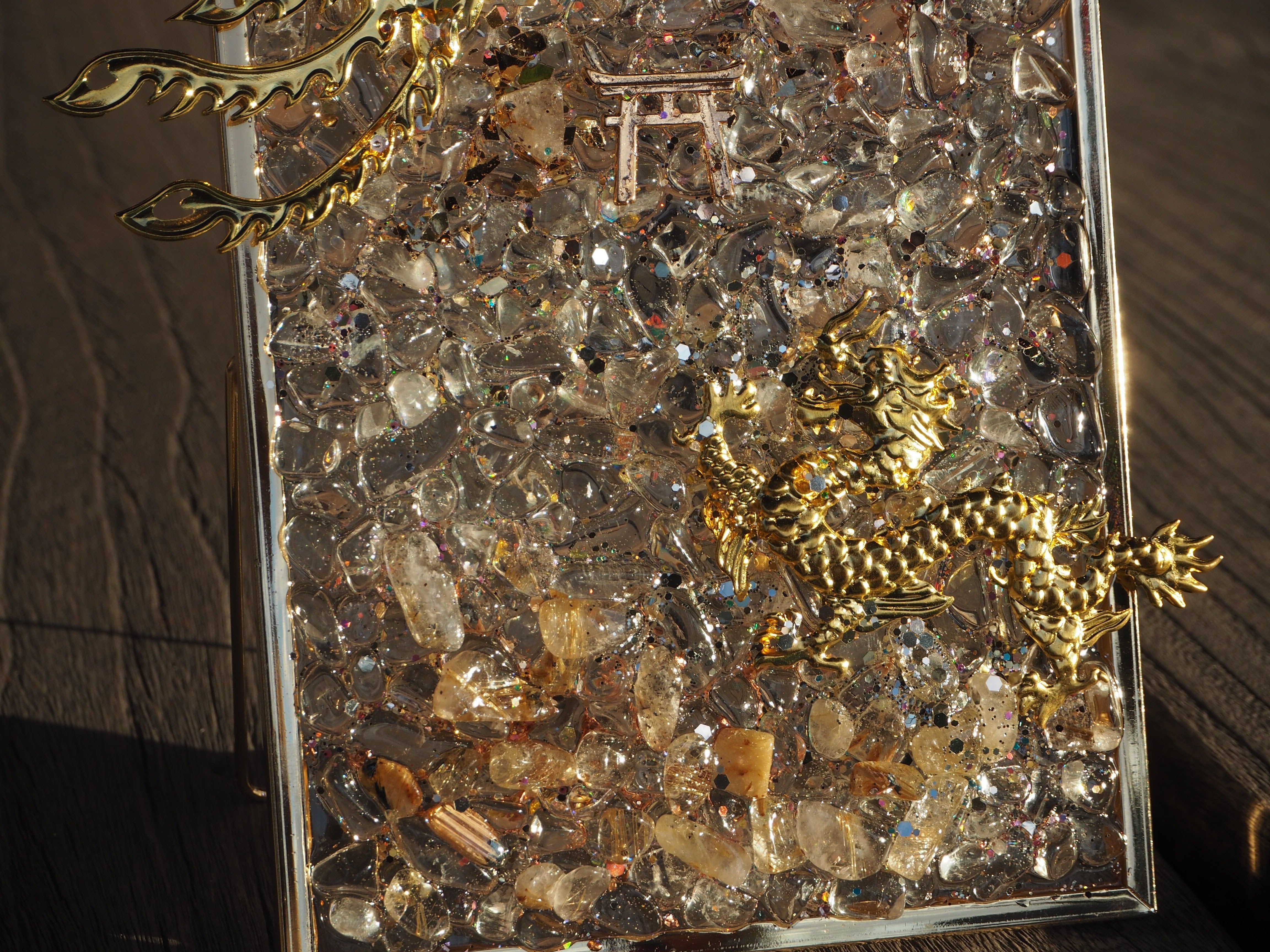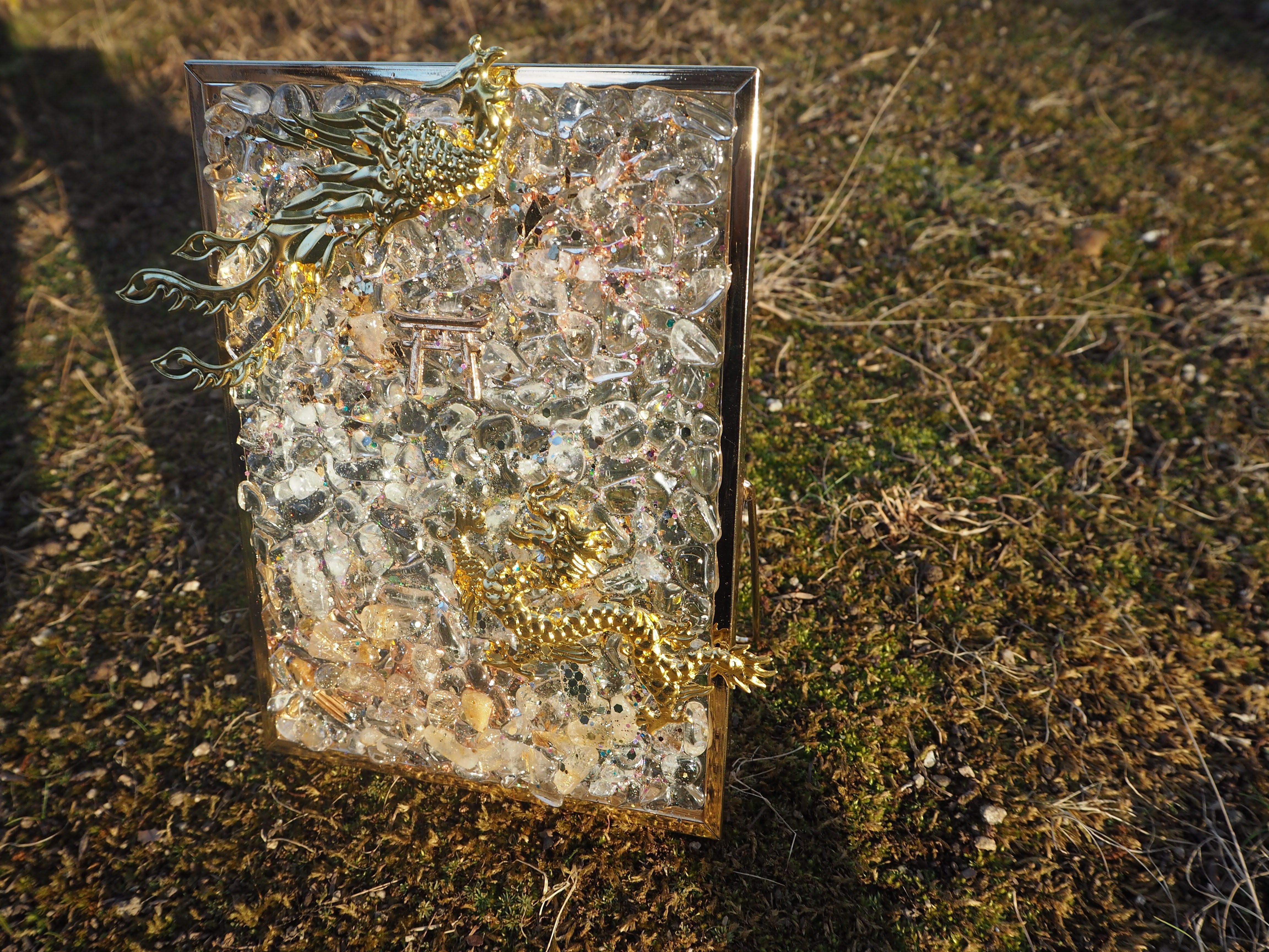 こちらは、鳳凰と龍のスタンドオルゴナイトです✨中央部に鳥居を置きました。