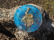 直径9.8㎝×高さ2.2㎝の台座付オルゴナイトです。