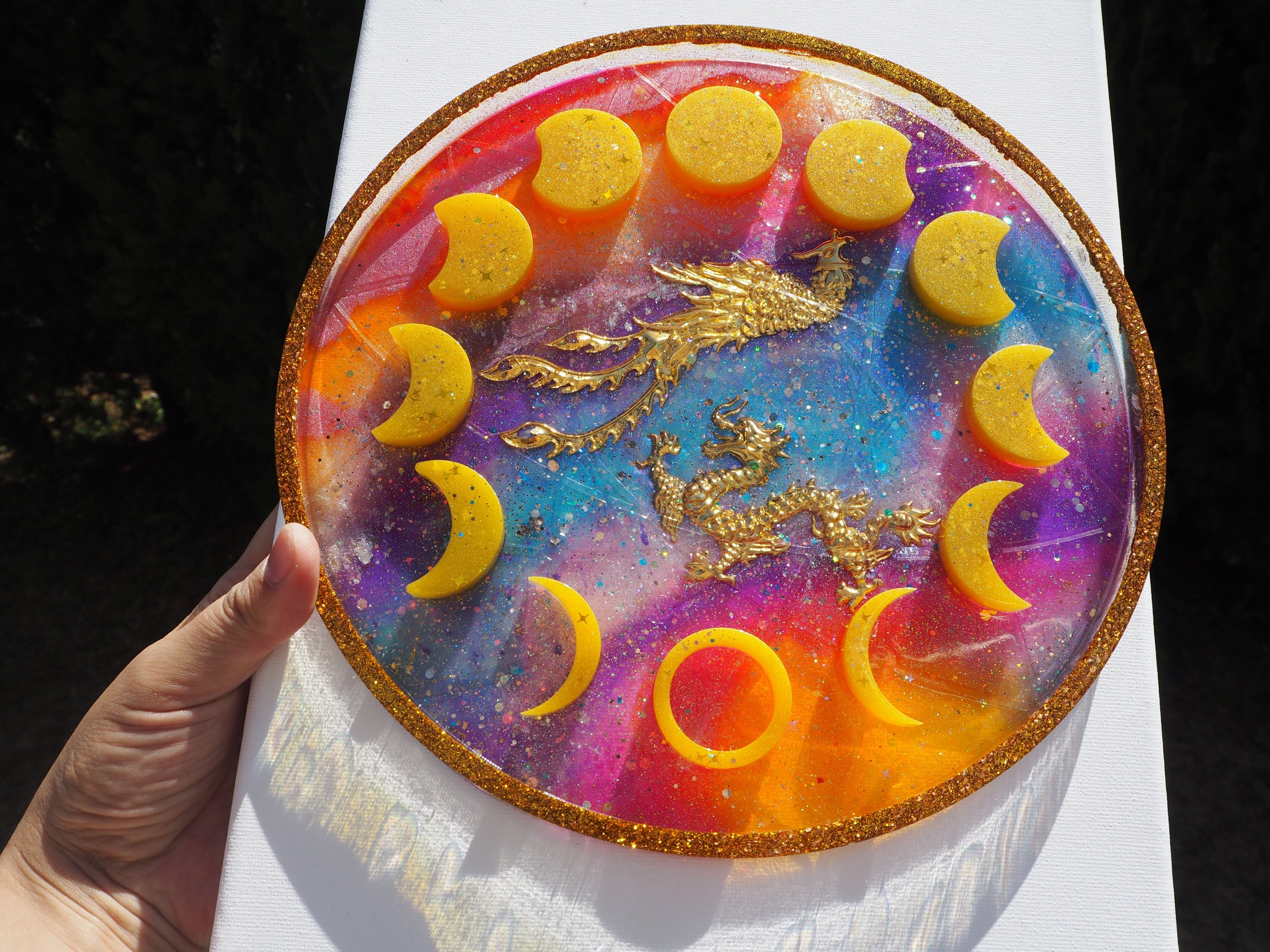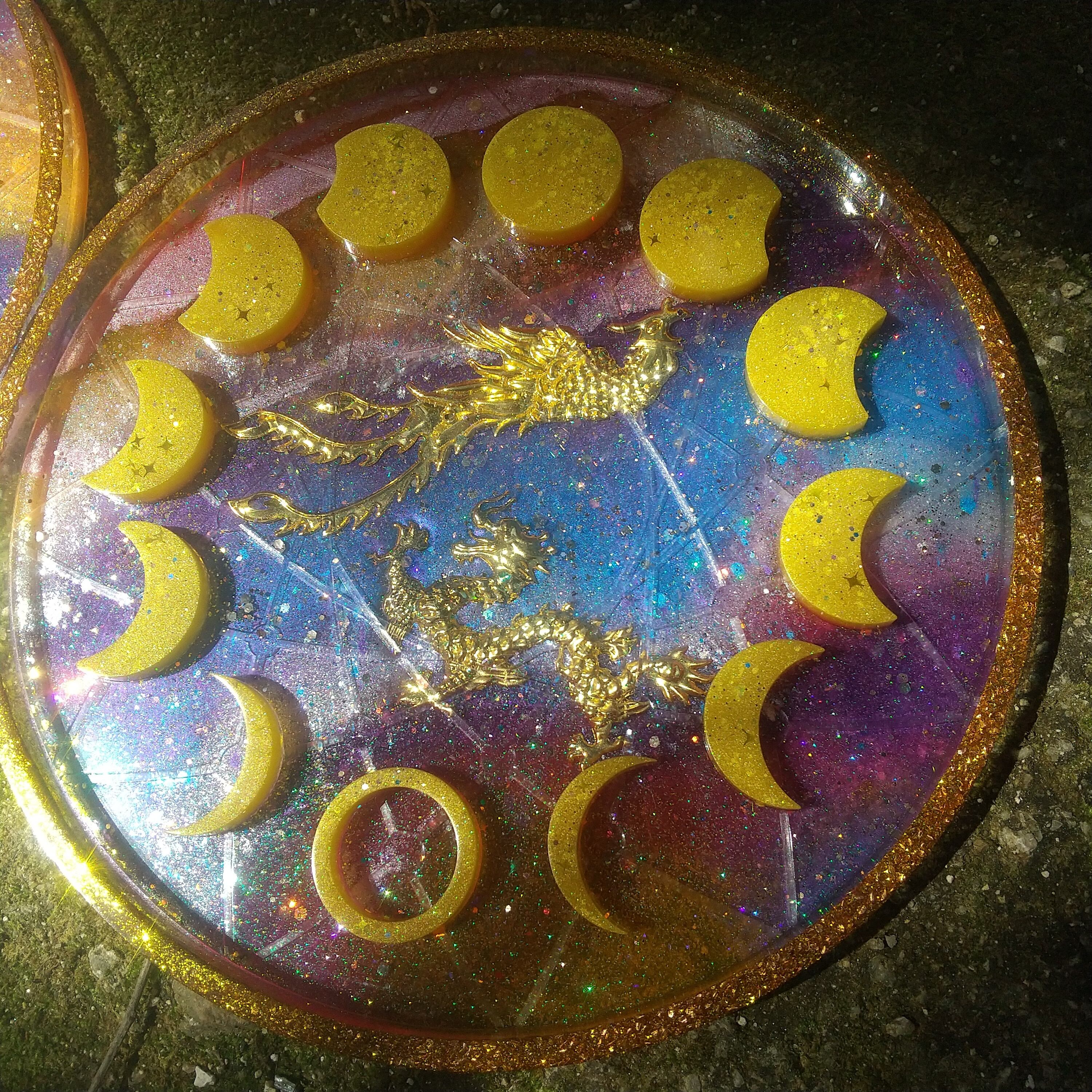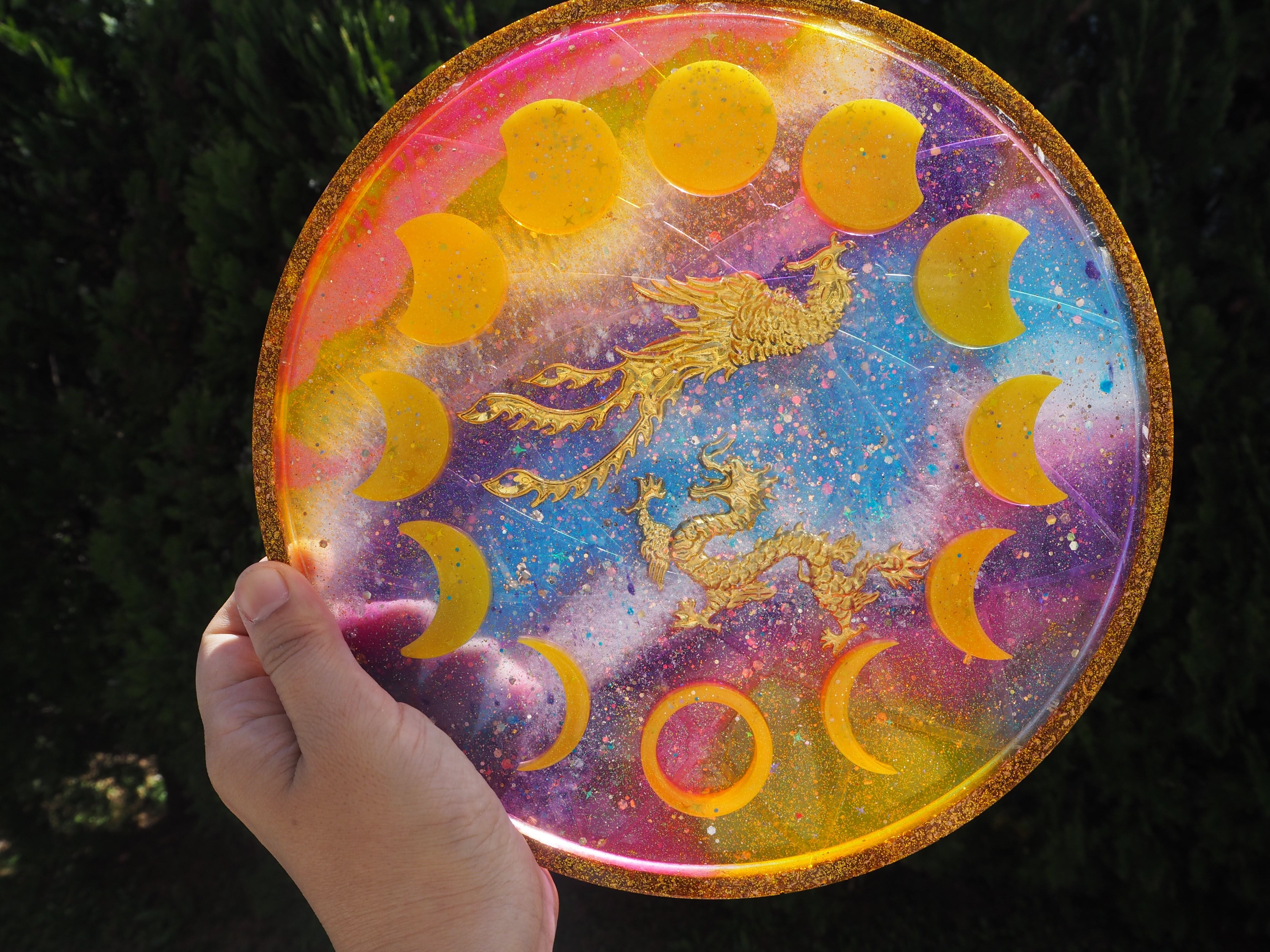 B 龍と鳳凰の月の満ち欠けプレートオルゴナイト(木製スタンド付き)