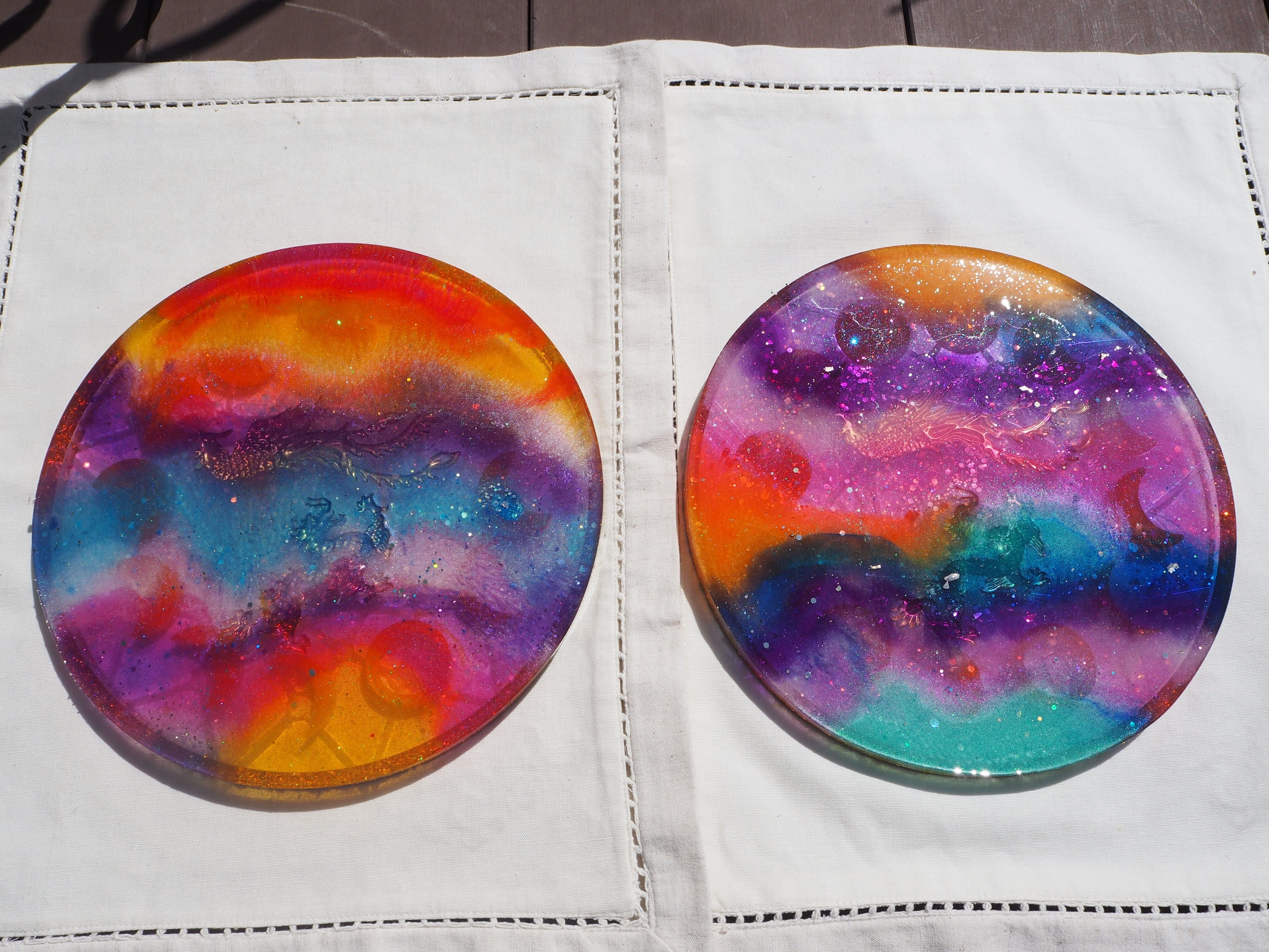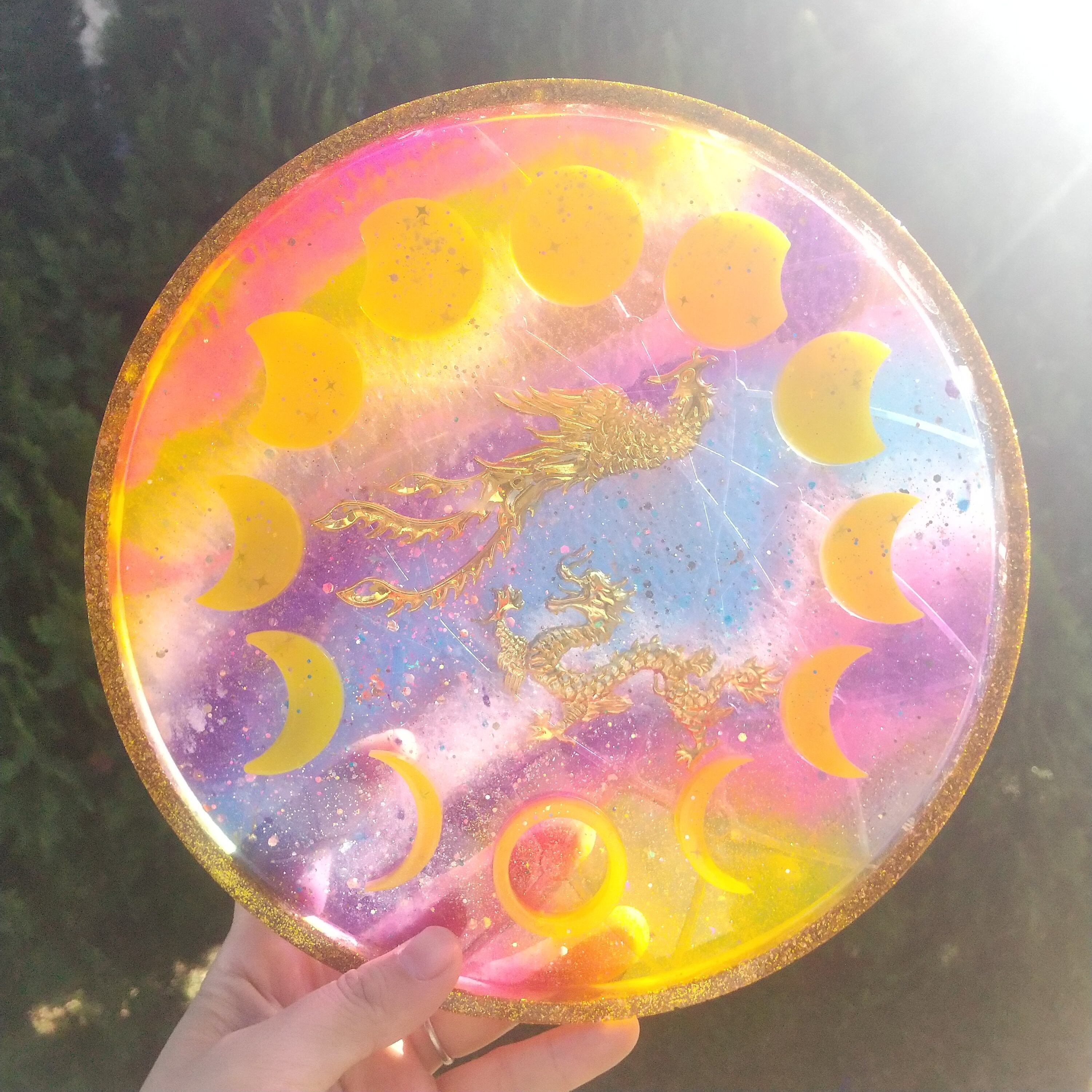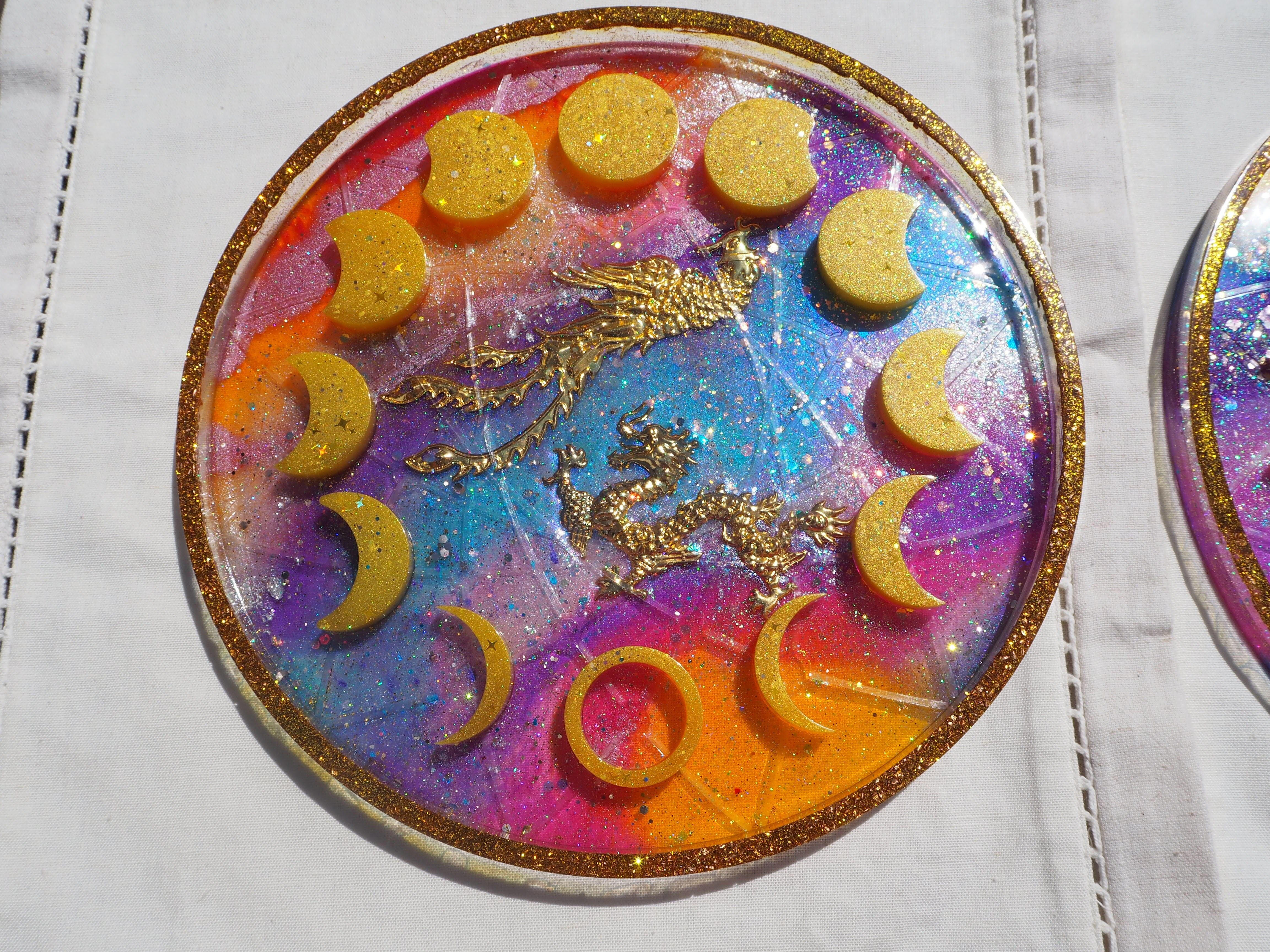 B 龍と鳳凰の月の満ち欠けプレートオルゴナイト(木製スタンド付き)