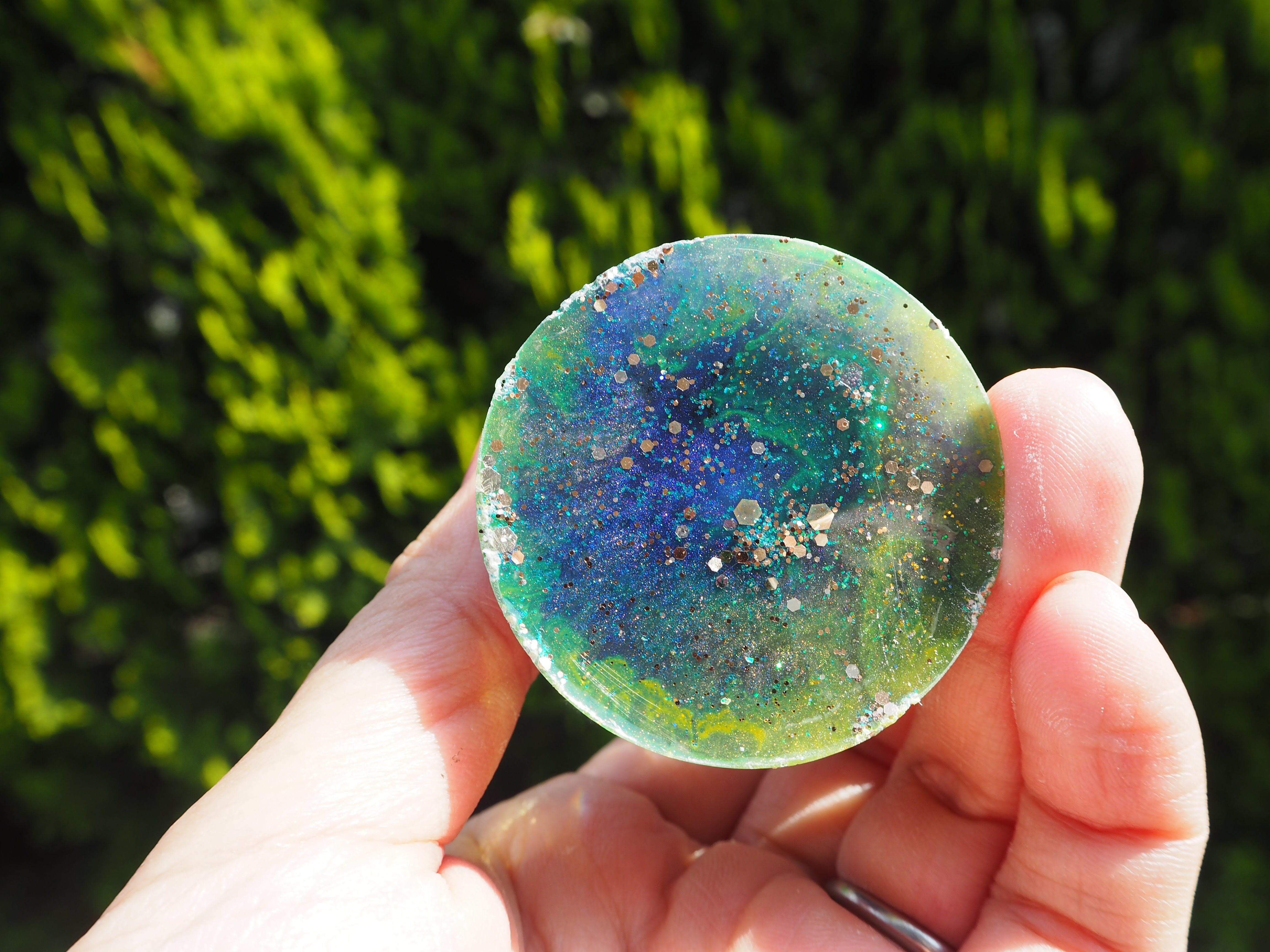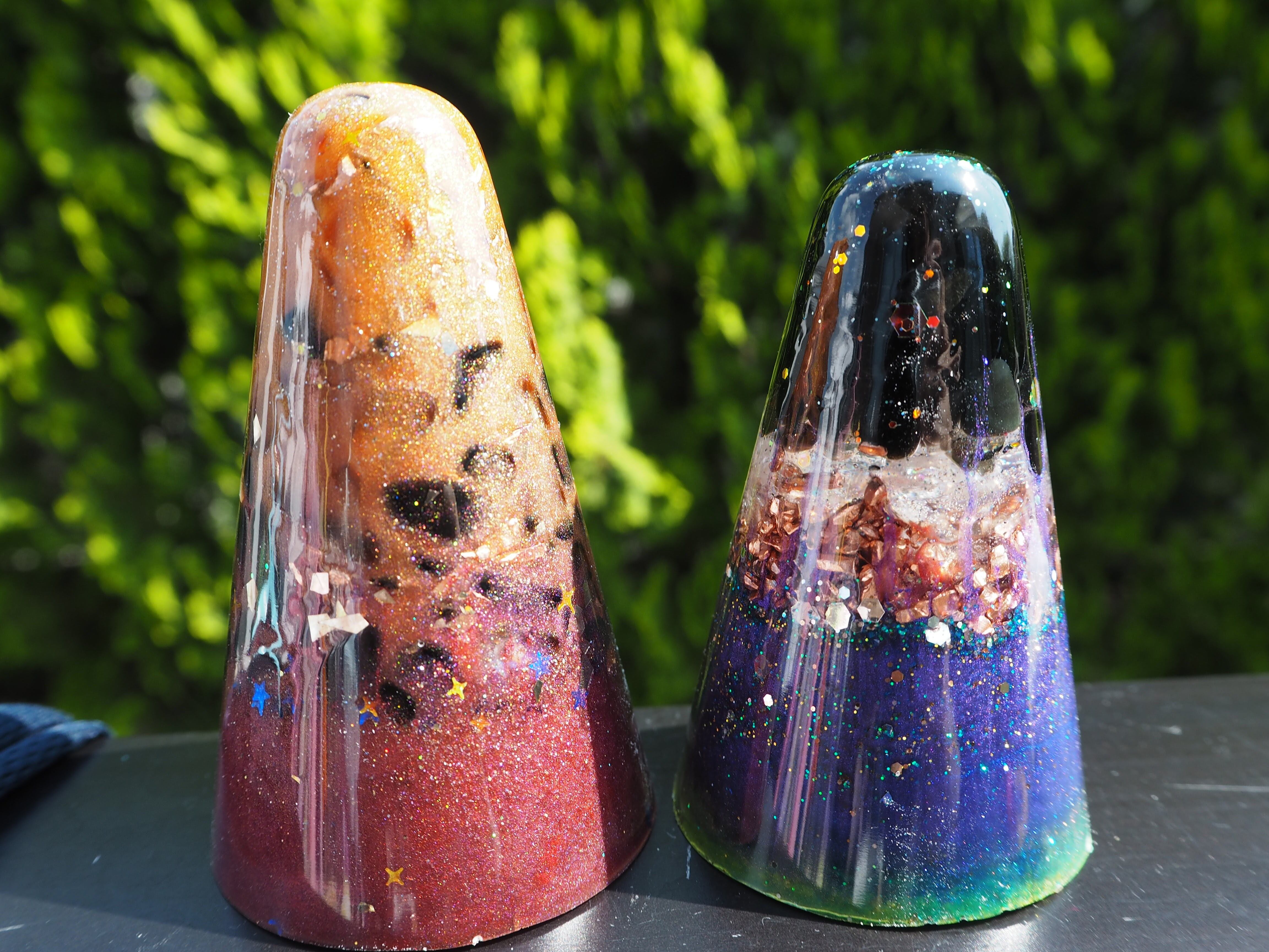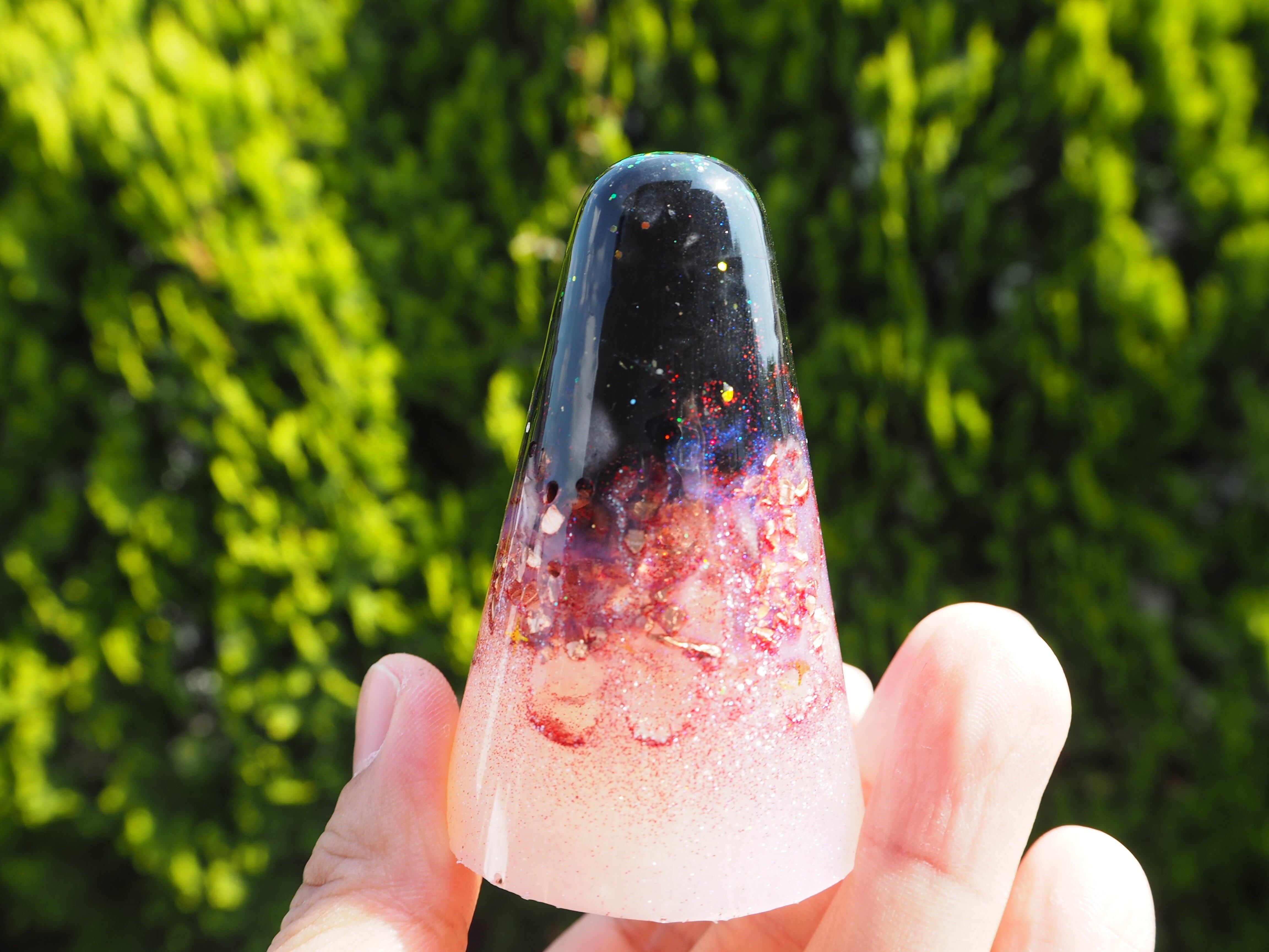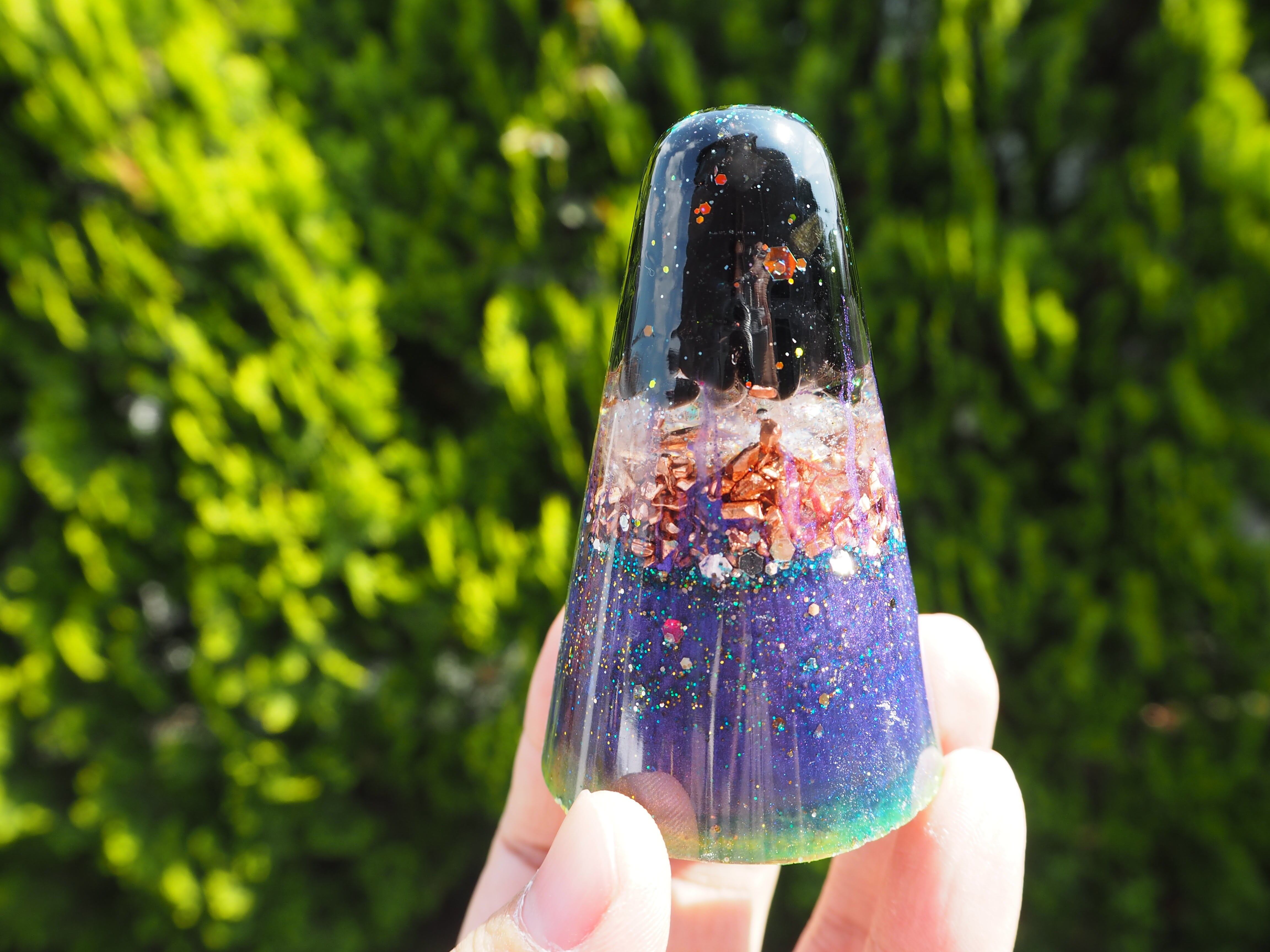 こちらは、モリオン(黒水晶)が入った浄化のオルゴナイトになります。