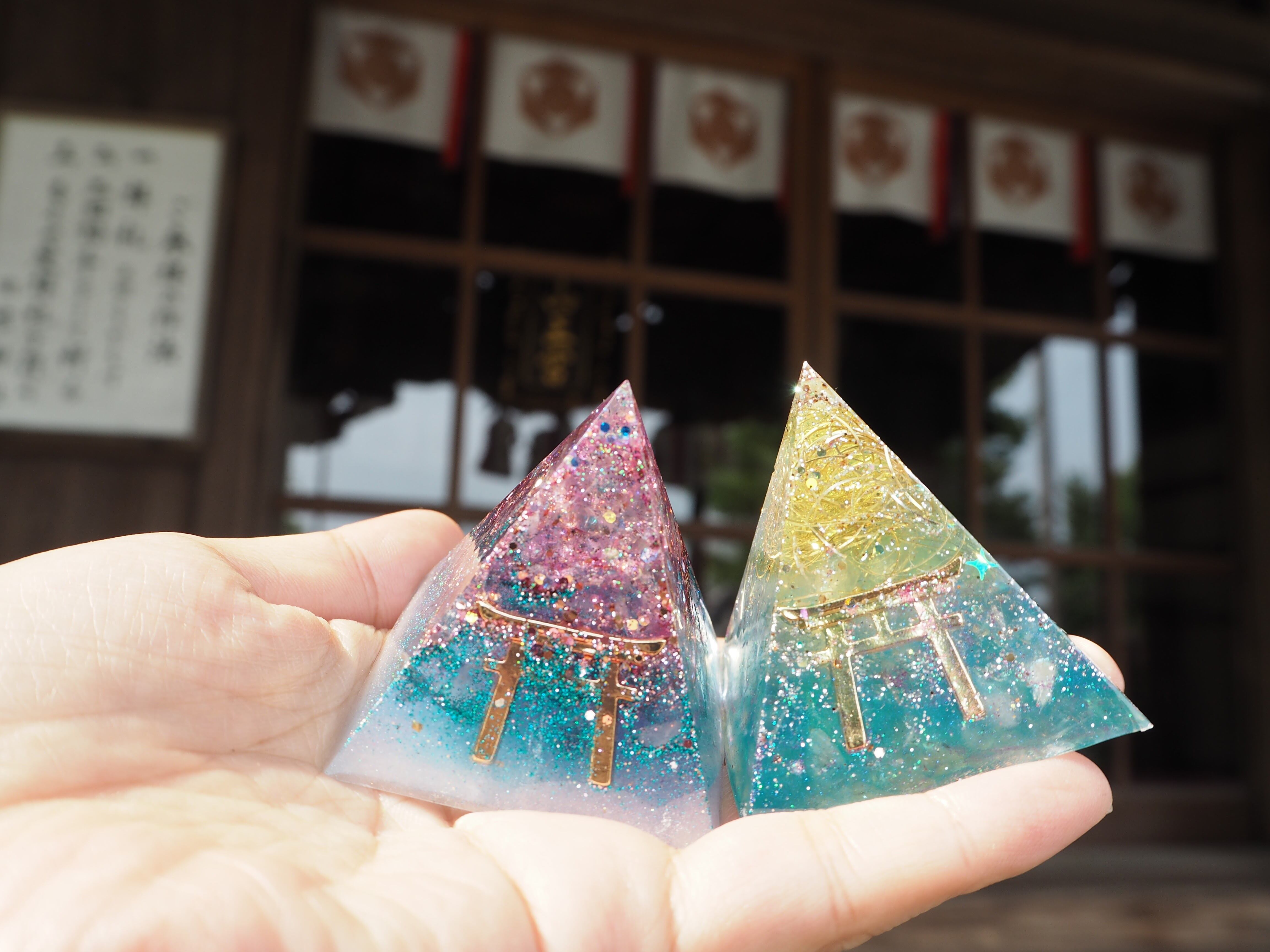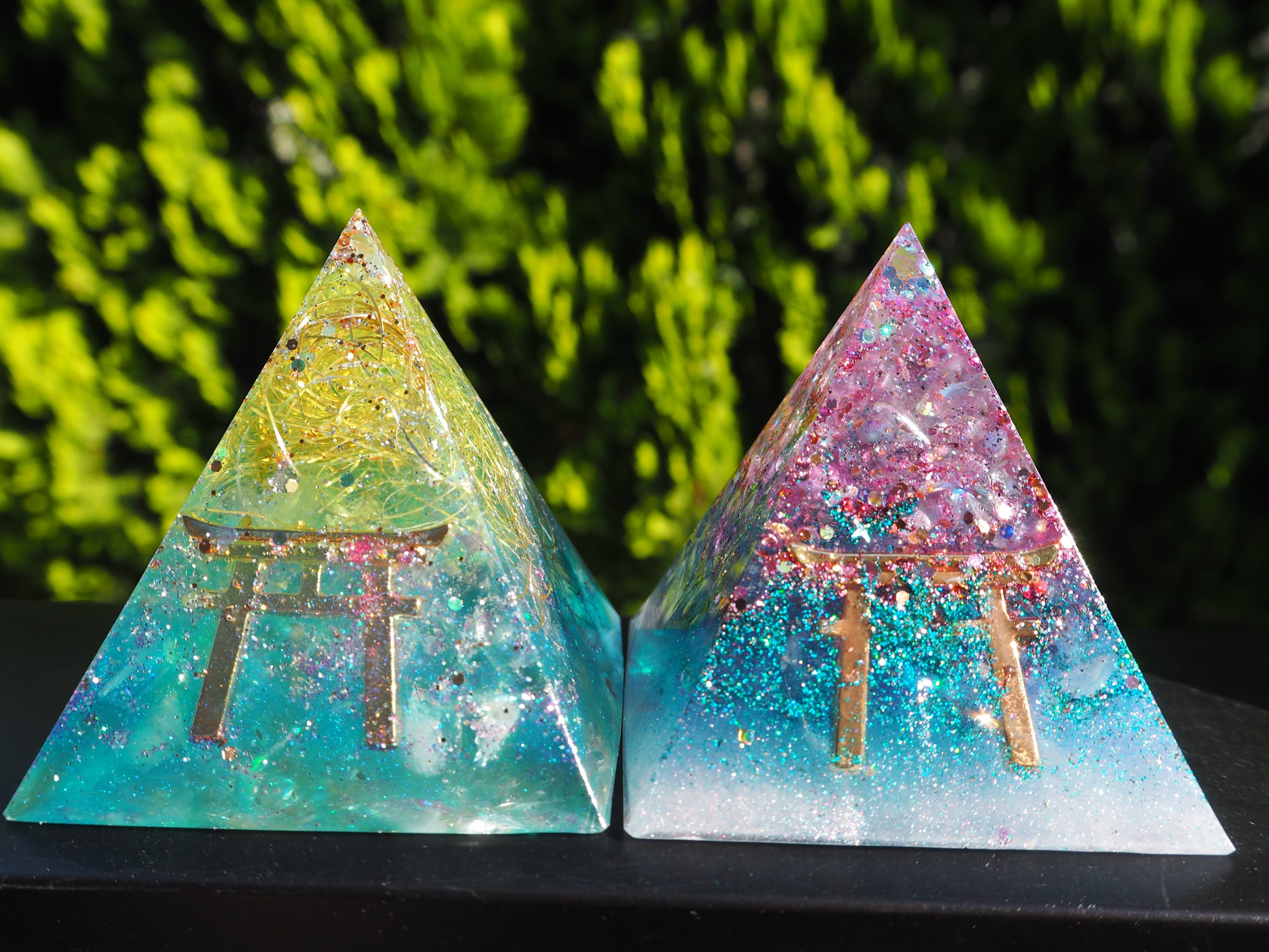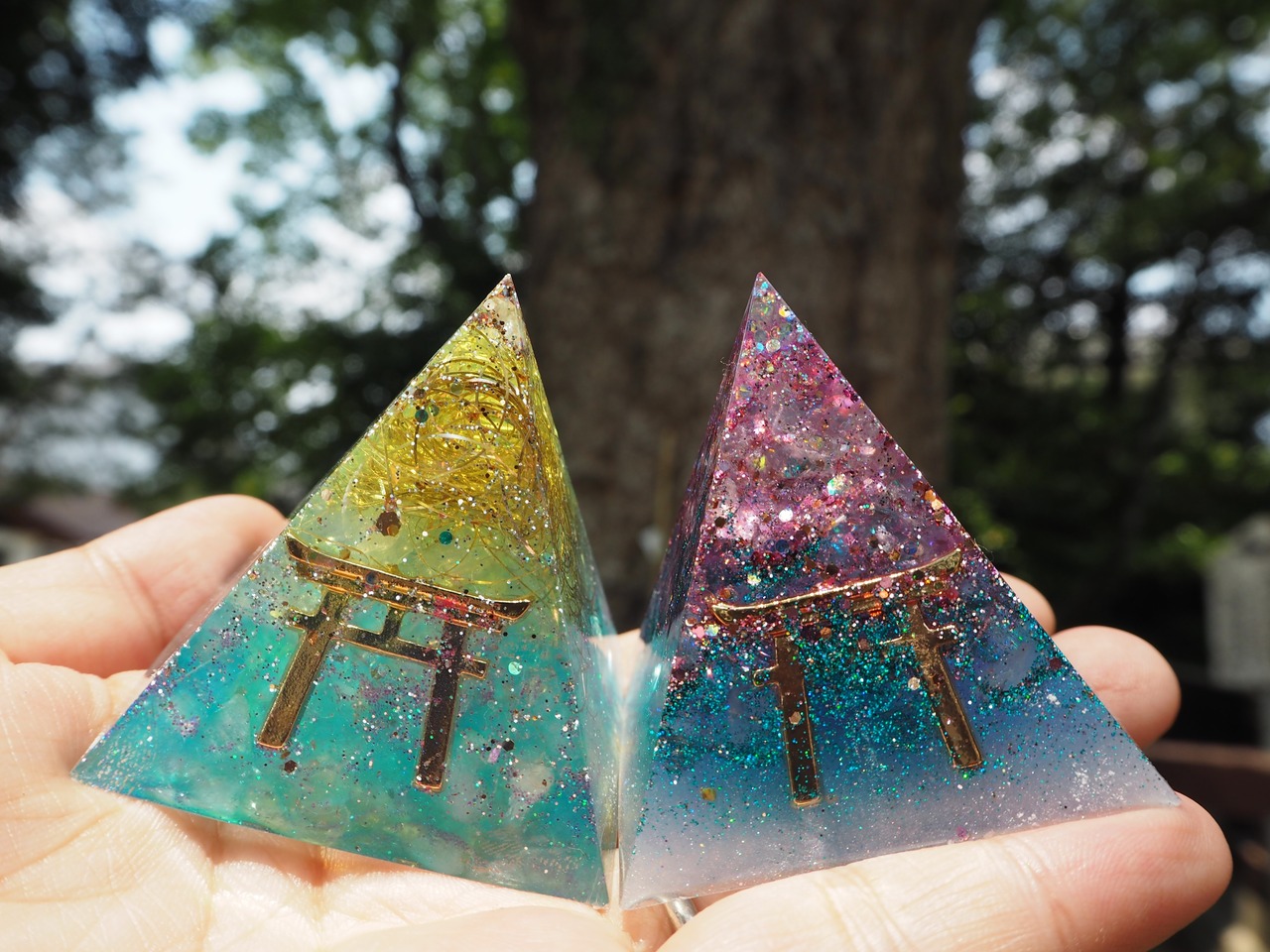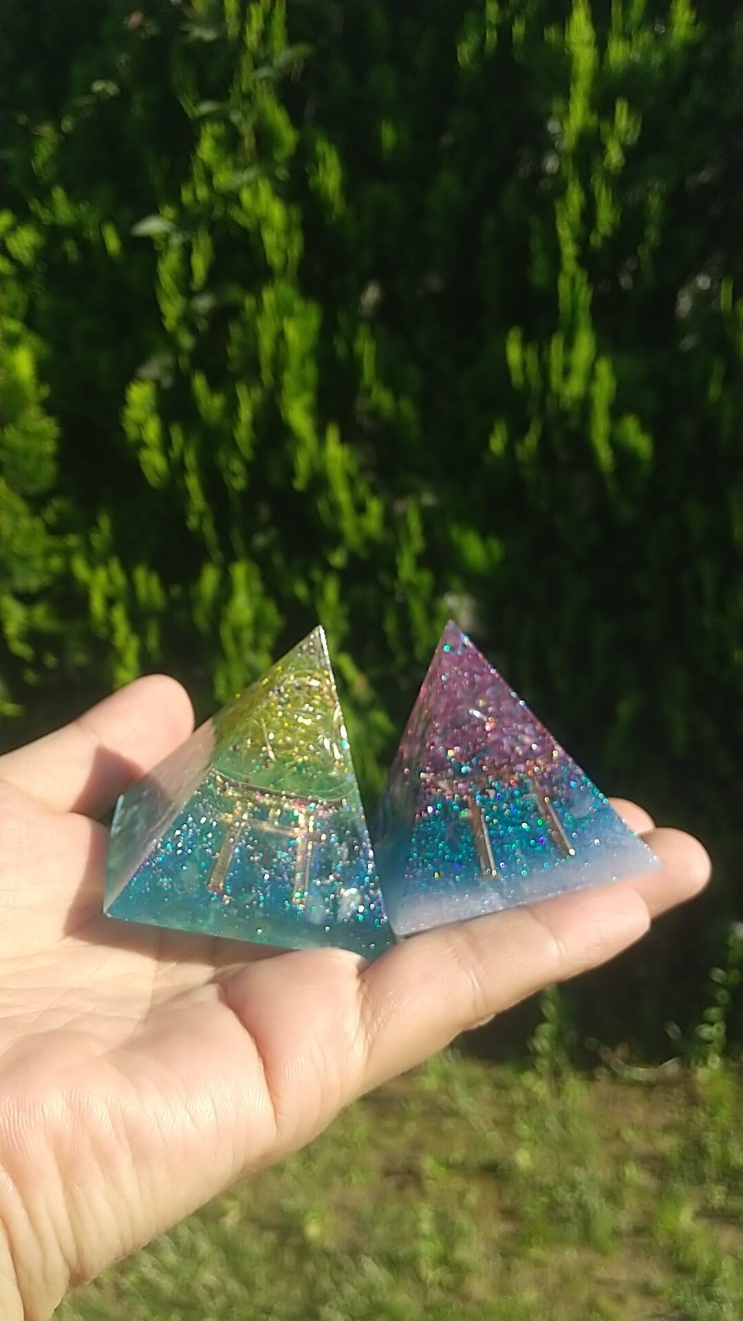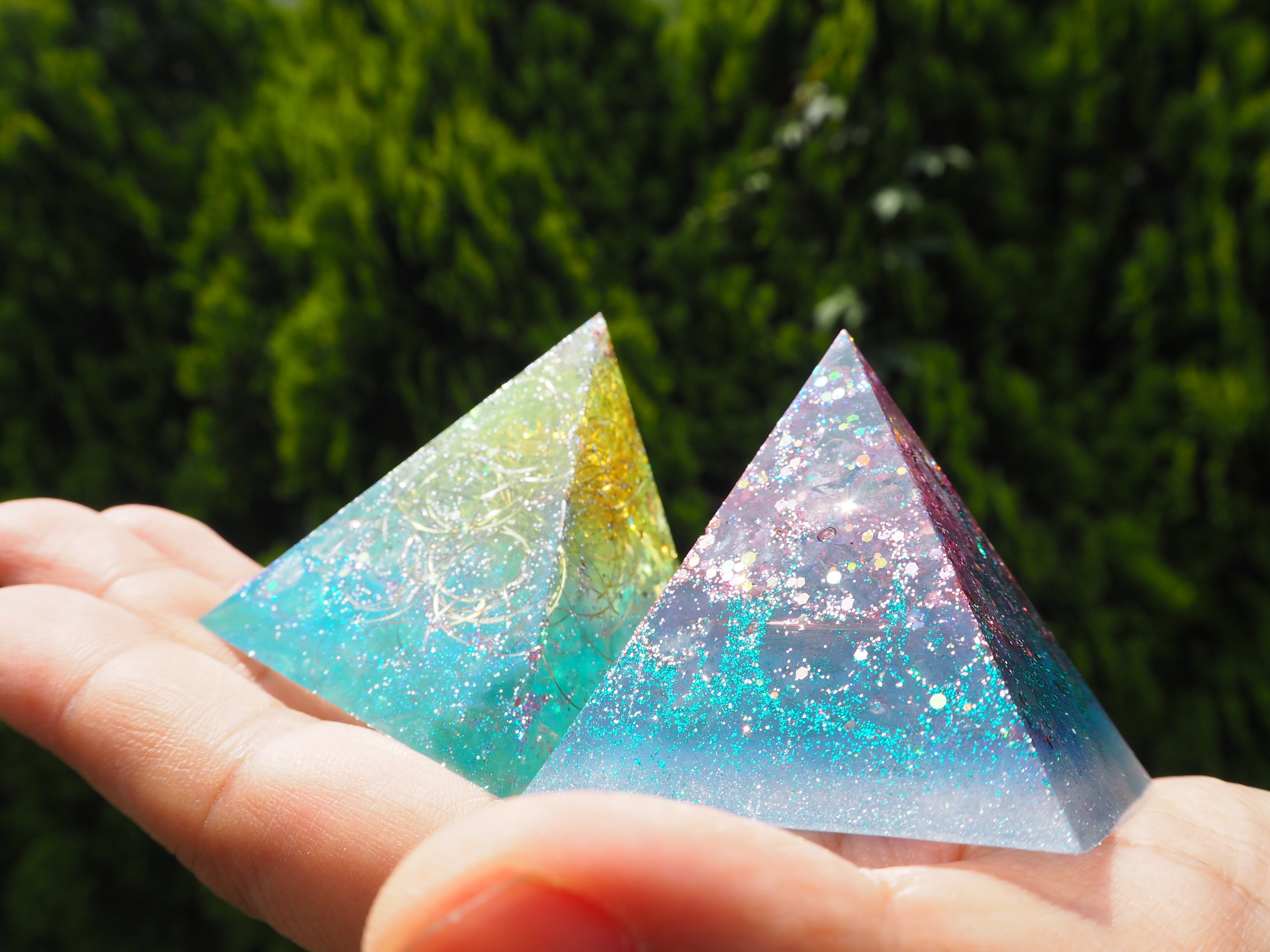 5㎝×5㎝×5㎝のピラミッドオルゴナイトになります。