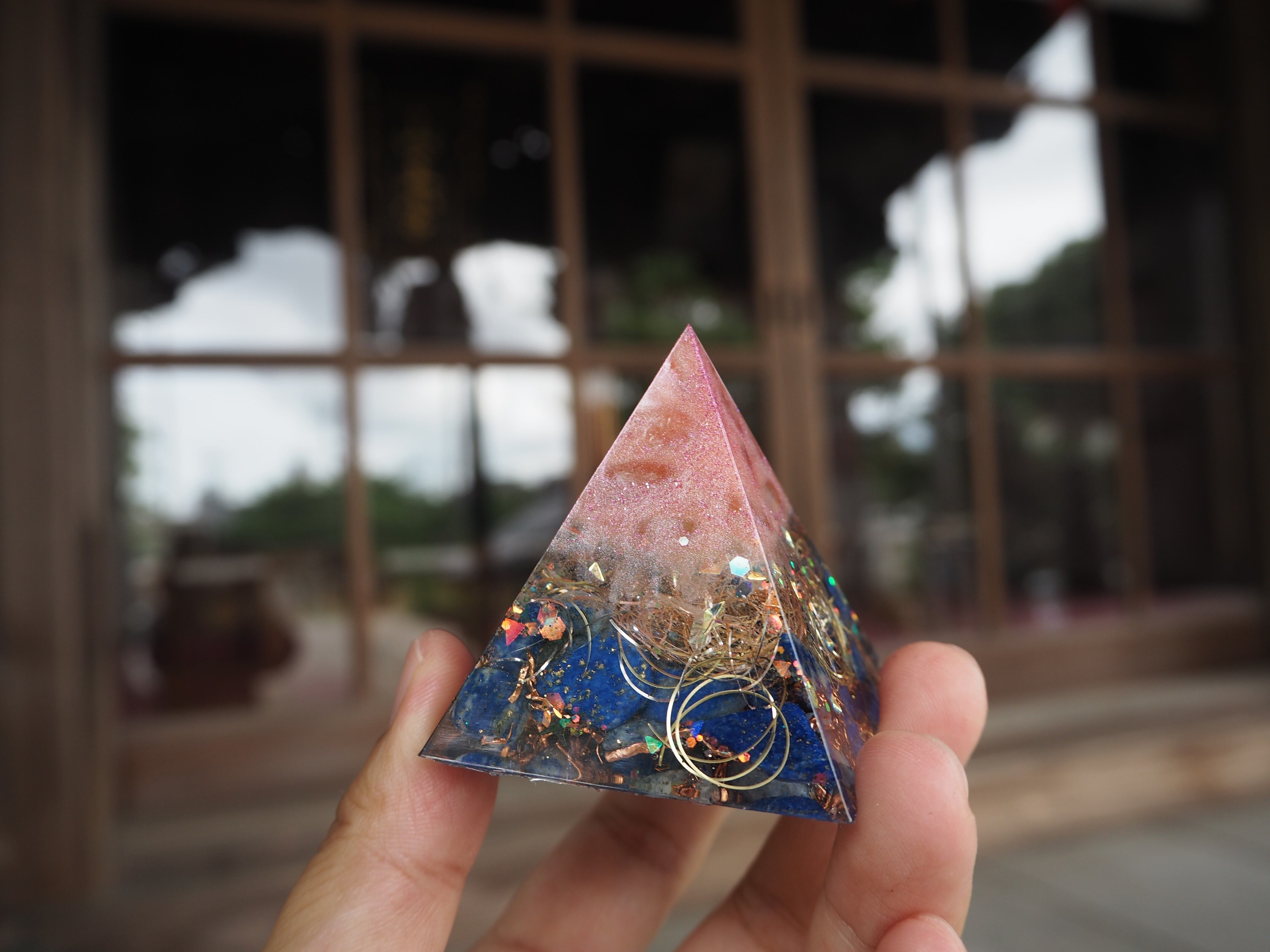 「幸運を招く石」といわれ、邪気を退け、正しいこちらは、判断力を高め、最高の幸運を呼び寄せてくれるとされる最古の石ラピスラズリを封入したミニオルゴナイトです。