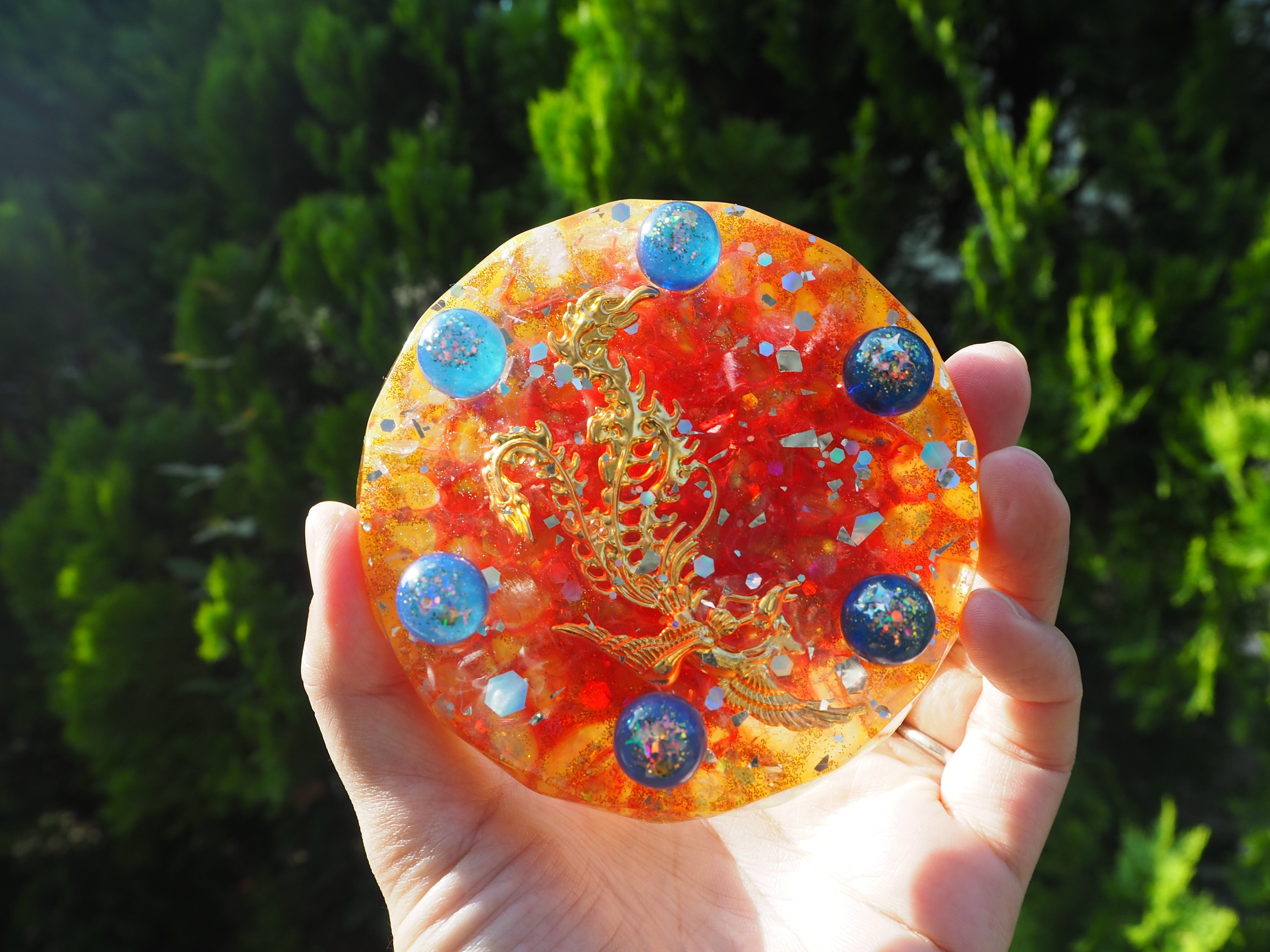 鳳凰と四神龍の龍体文字(開運)のプレートオルゴナイト