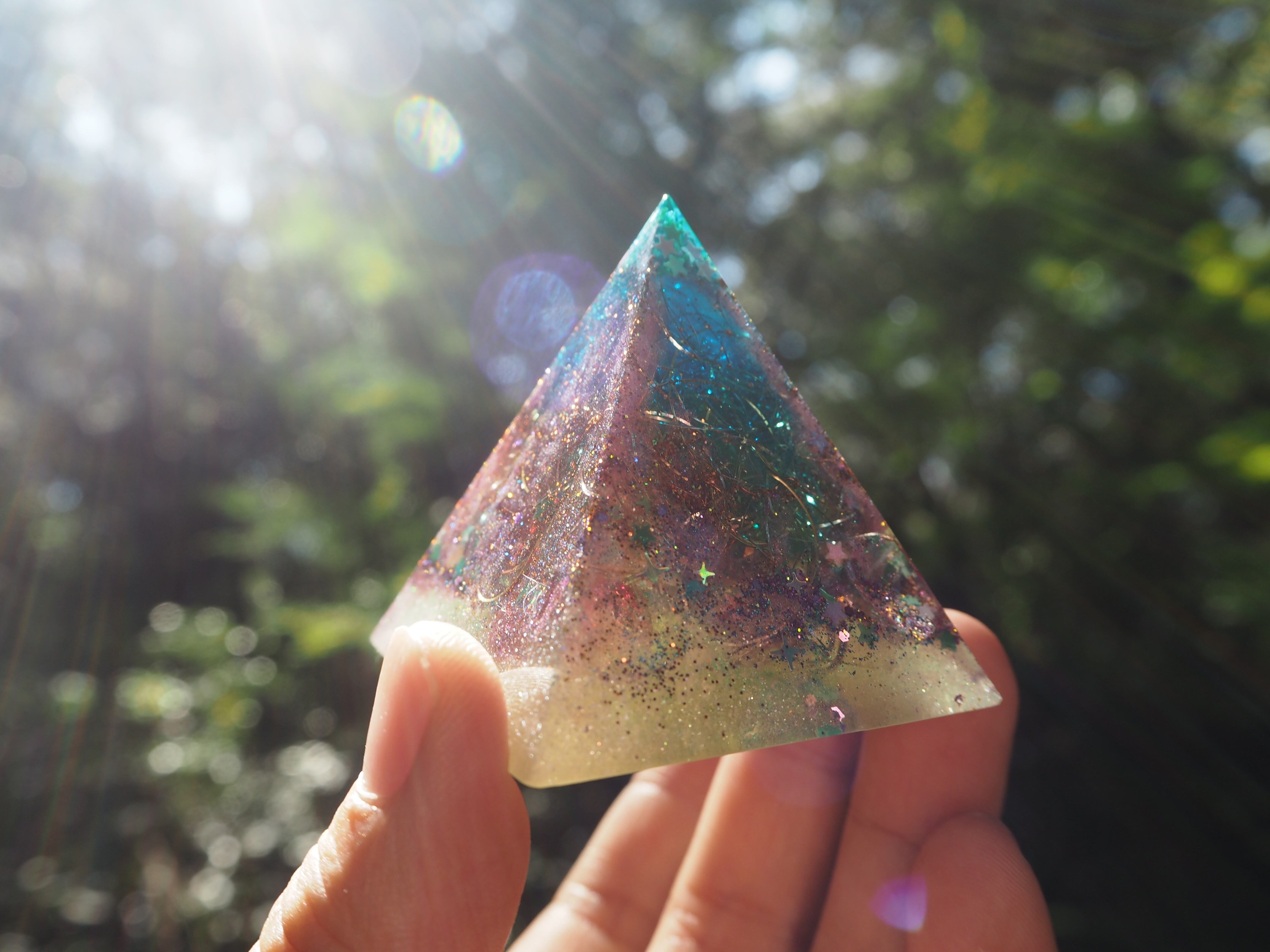 四方から見え方が異なり、幻想的で、とても美しいオルゴナイトです✨