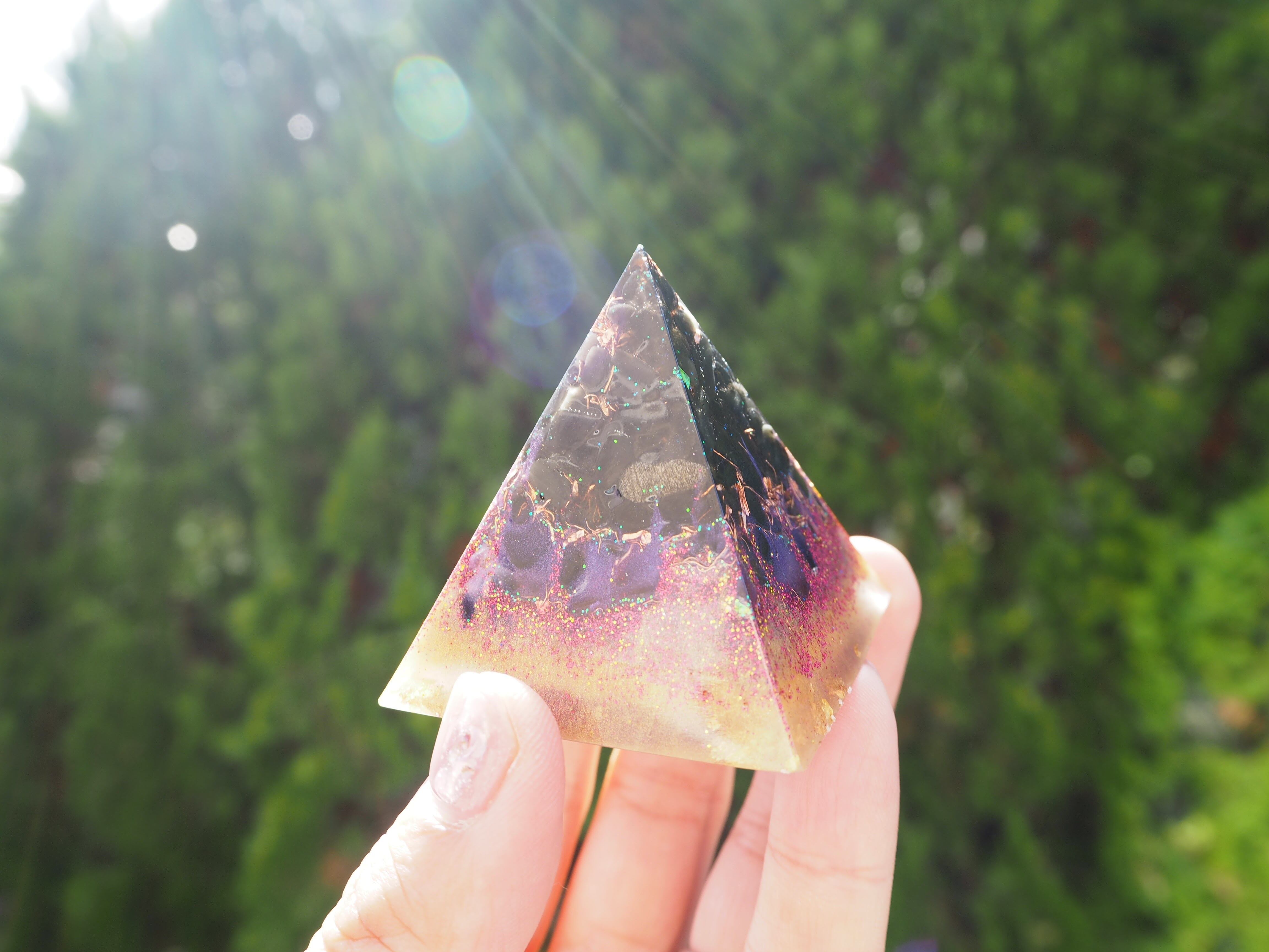 こちらは、満月に制作した赤龍のお守りオルゴナイトです。