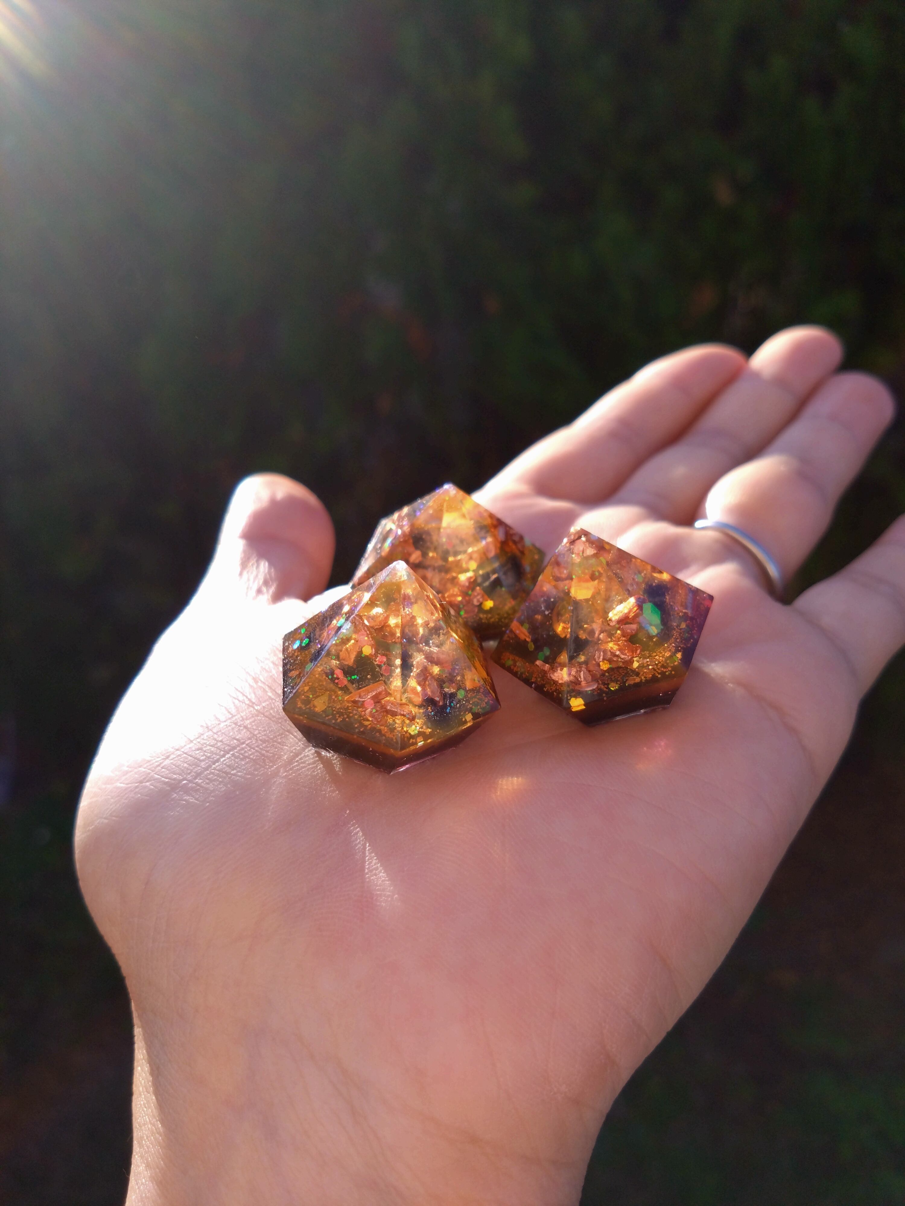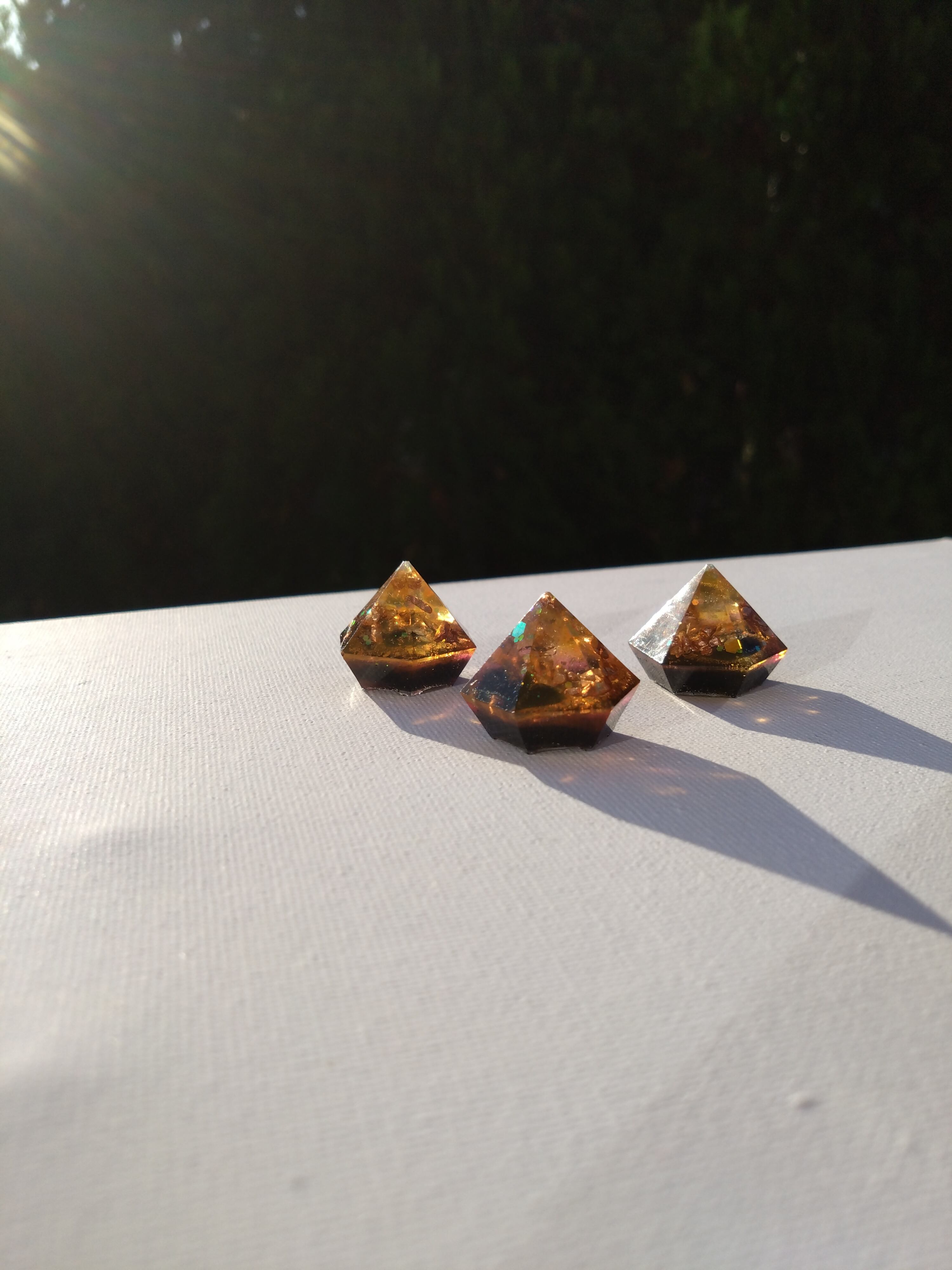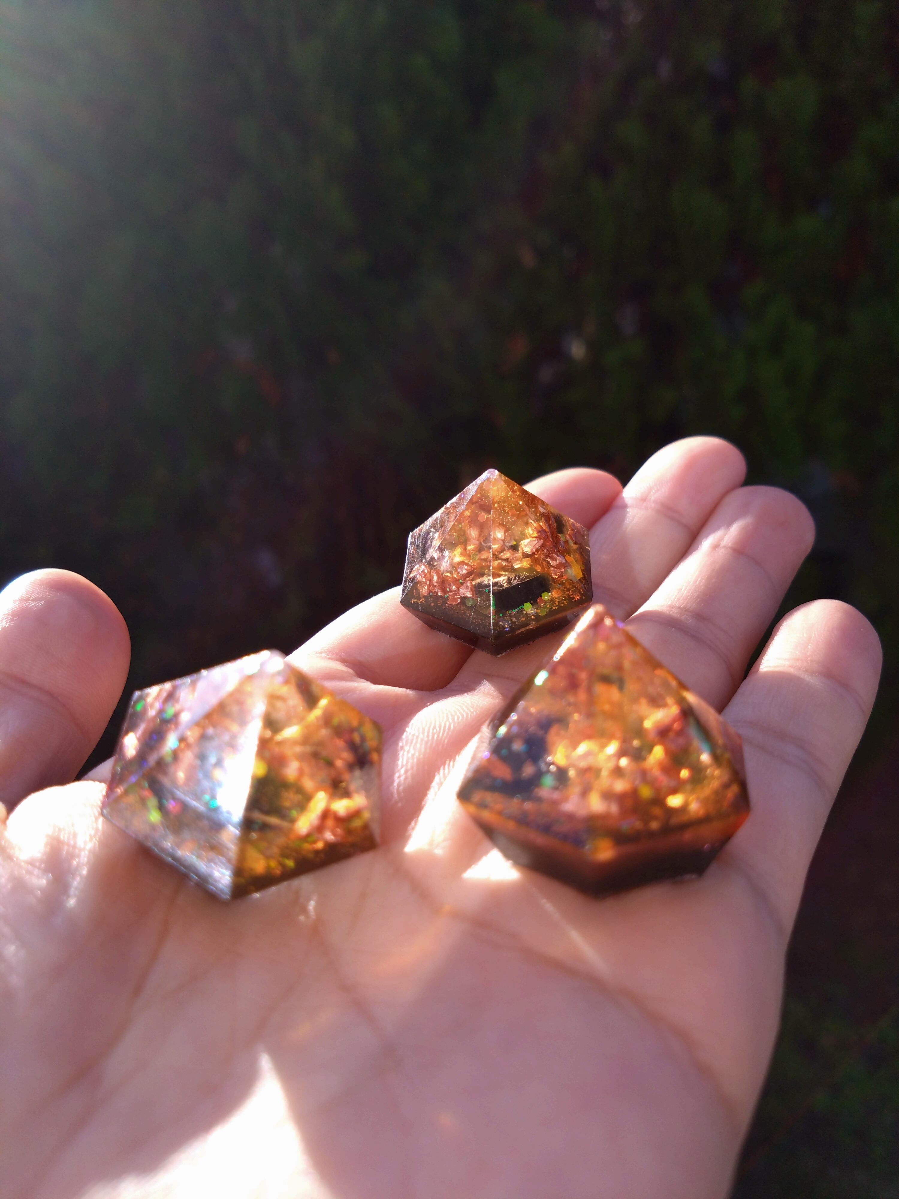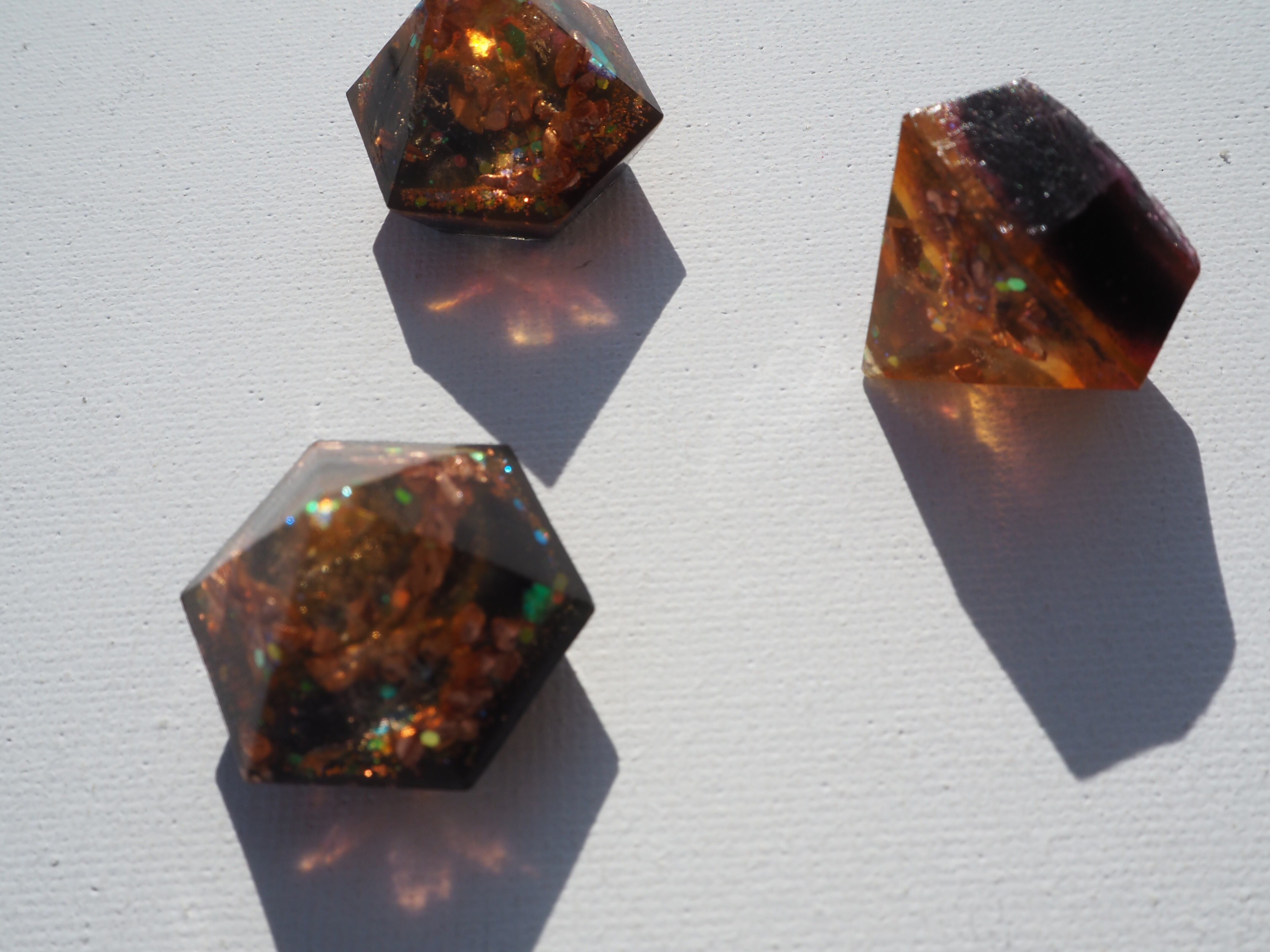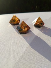 こちらは、宮古島麻炭入りお守り六角ミニオルゴナイトです。