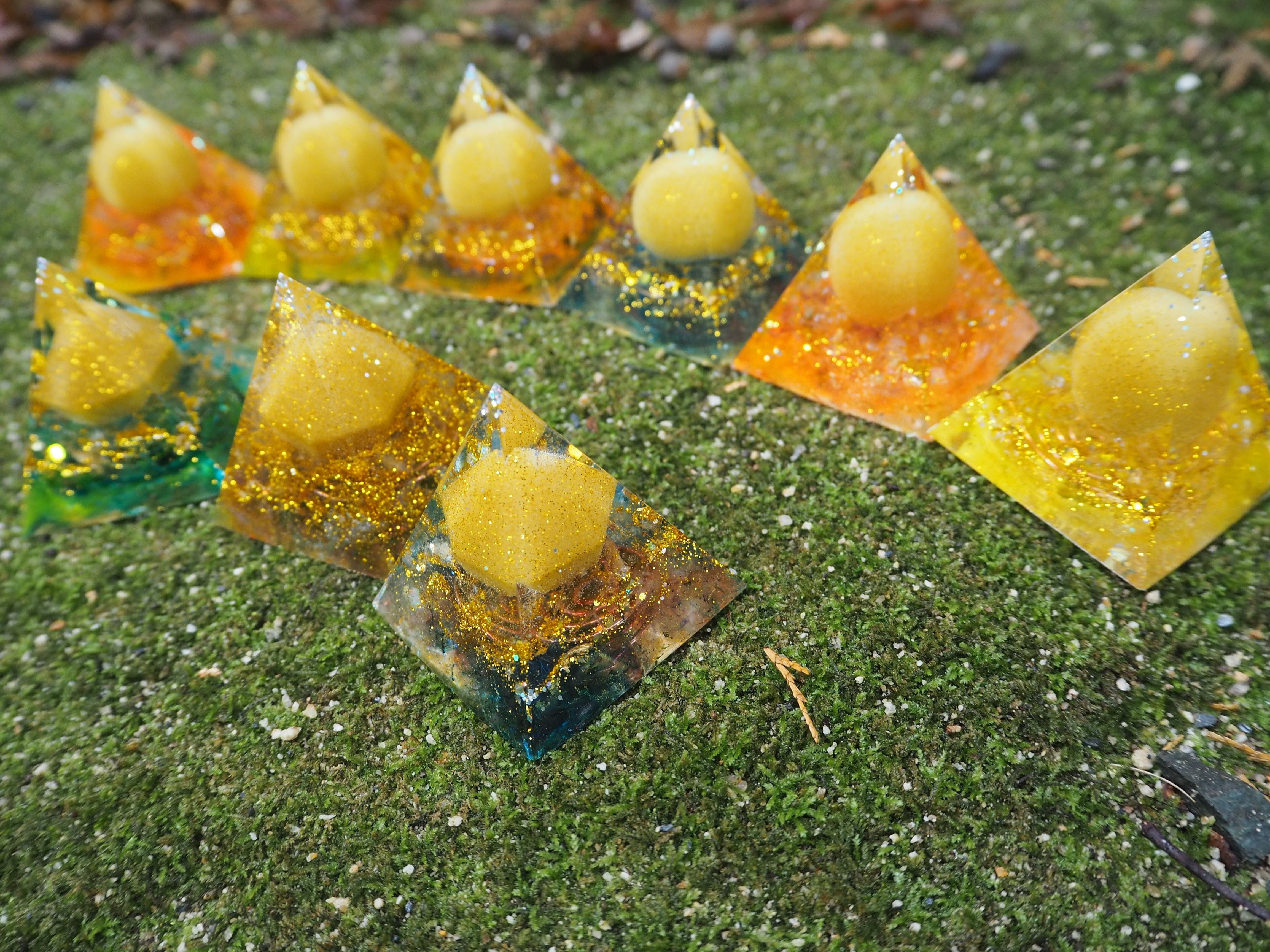 一つのオルゴナイトの中に九福神のエネルギーがはいっています。
