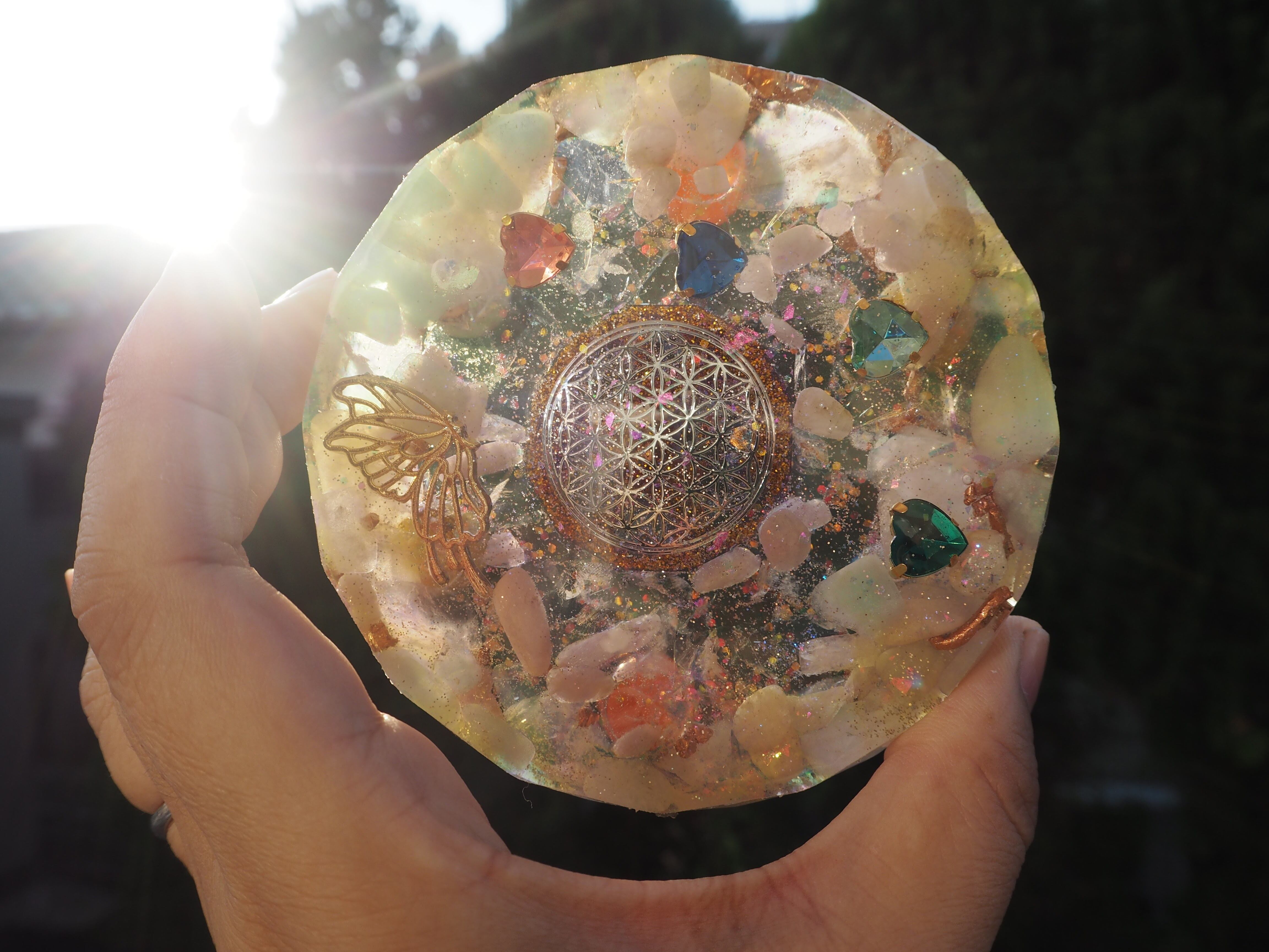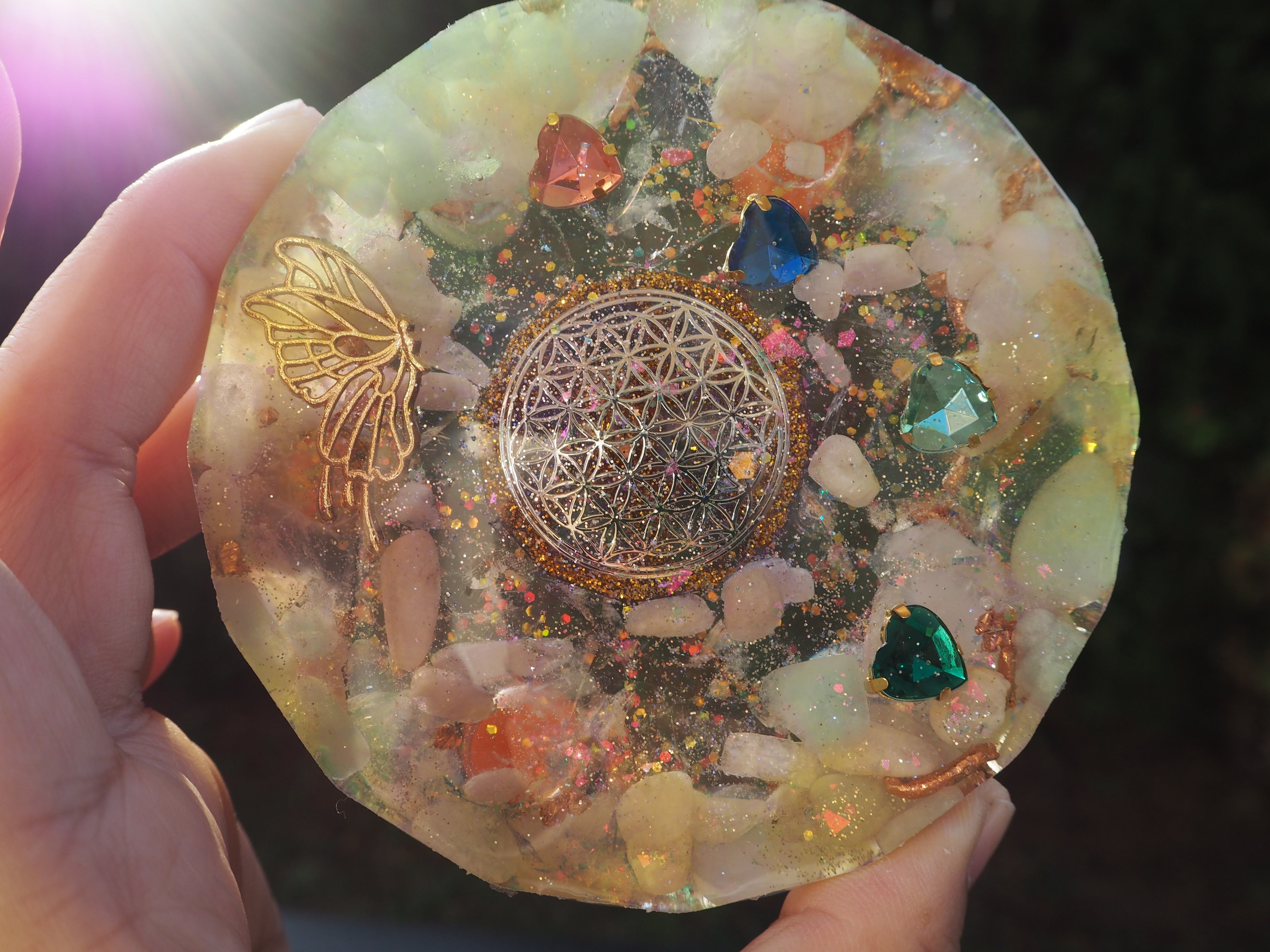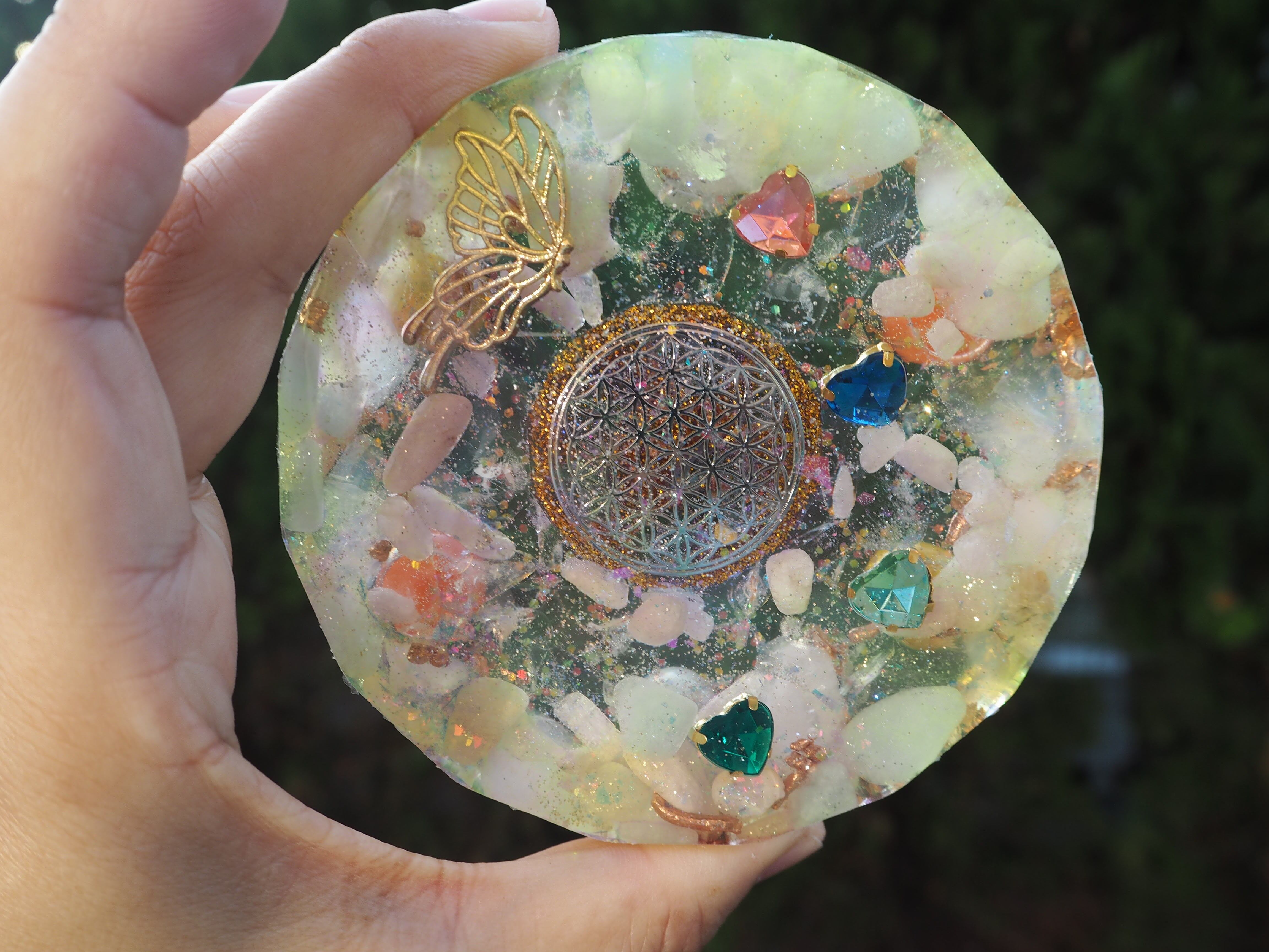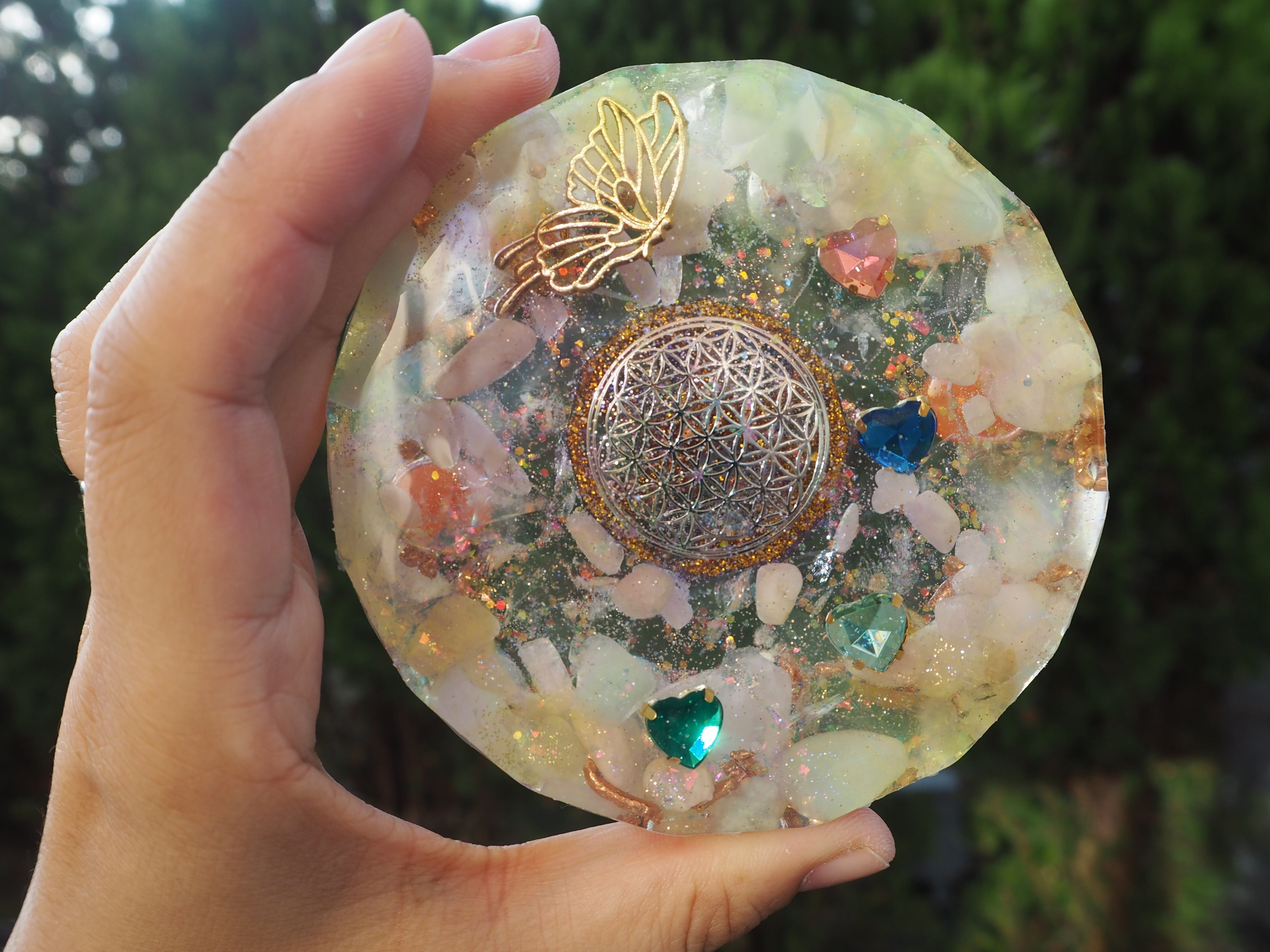 中央には、オルゴでできたフラワー・オブ・ライフのオルゴナイトを封入しました✨✨