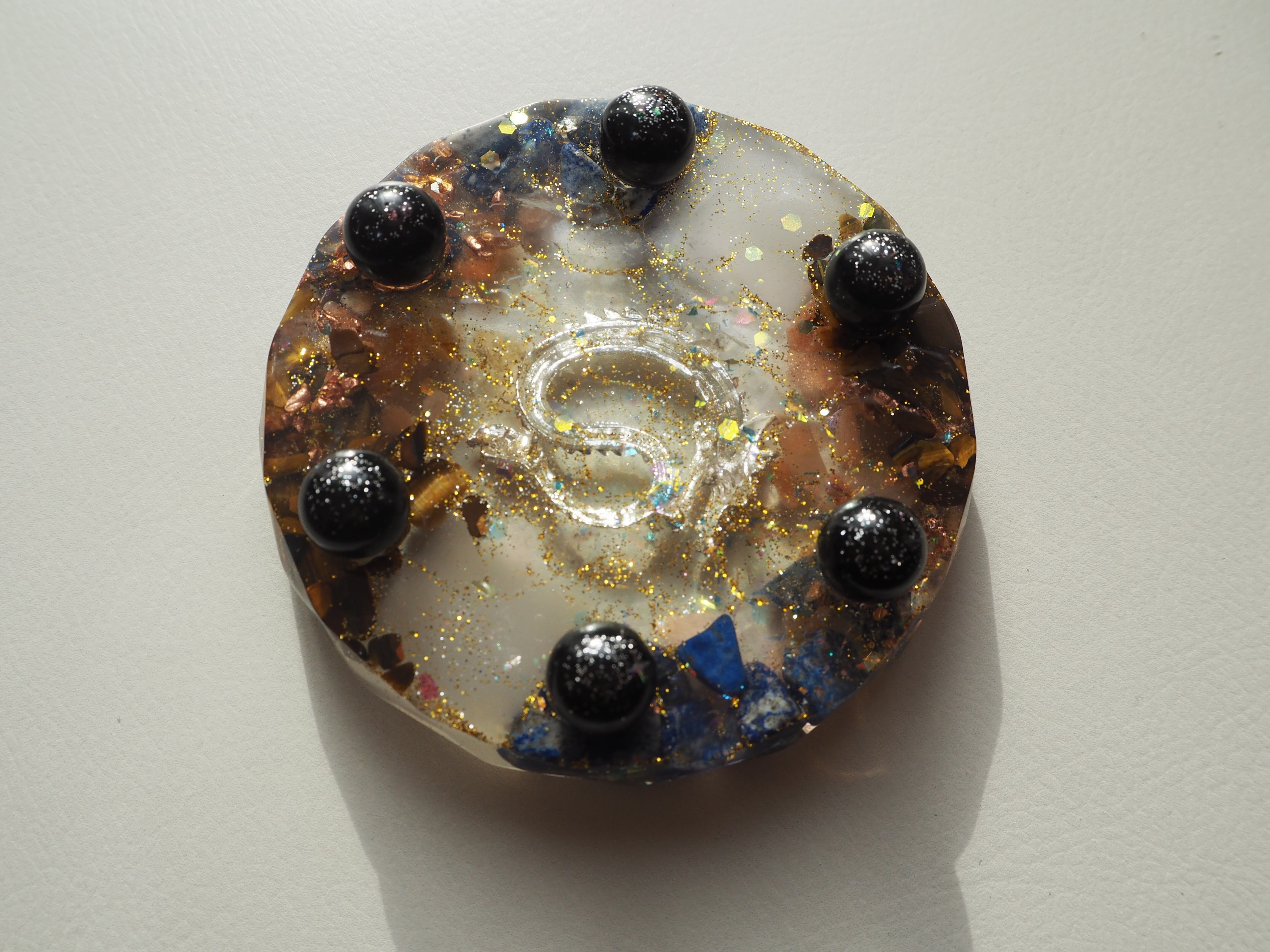 こちらは、四神を封入した結界盛り塩入りプレートオルゴナイトです。
