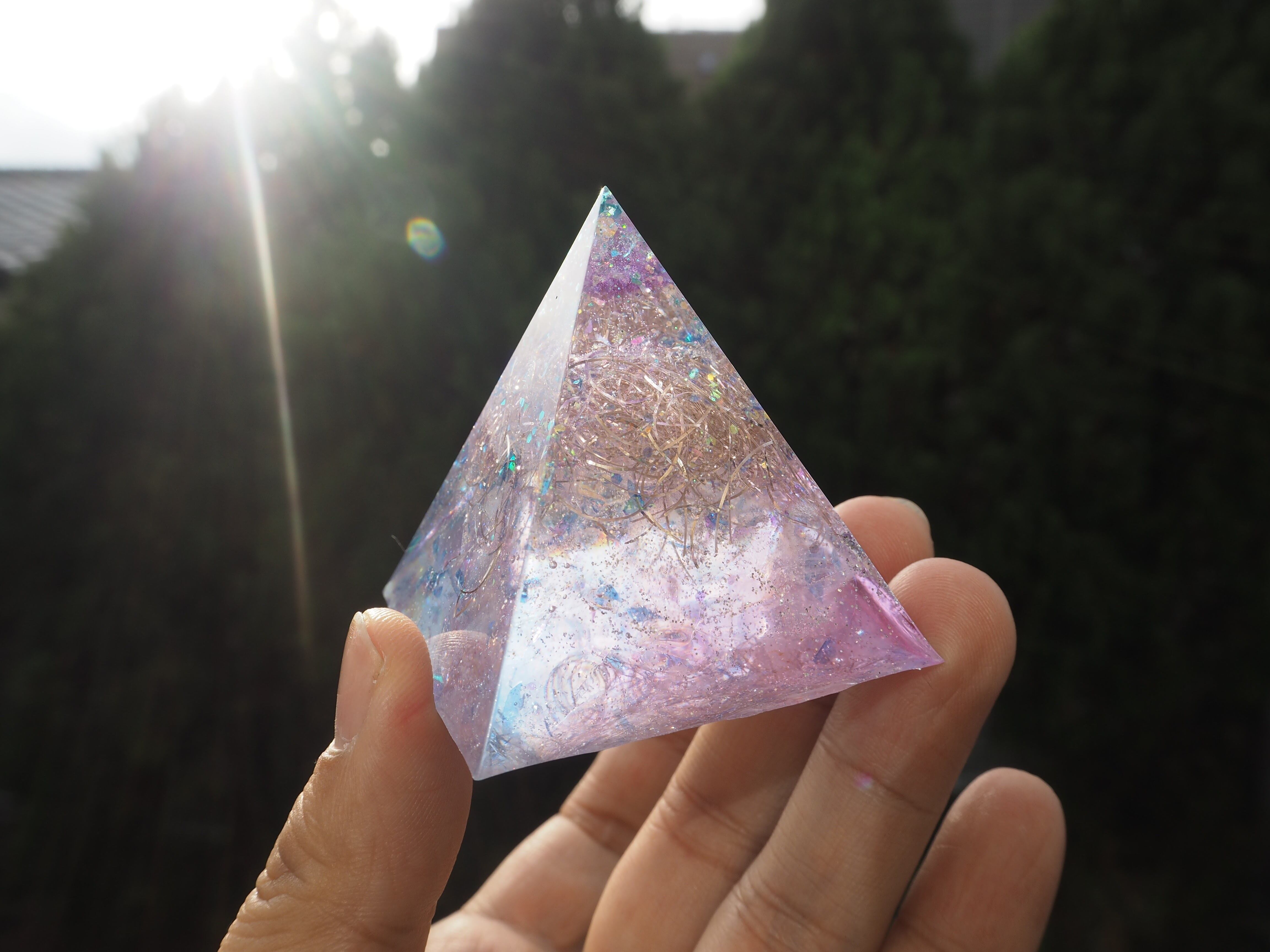 5㎝×5㎝×5㎝のピラミッドオルゴナイトになります。