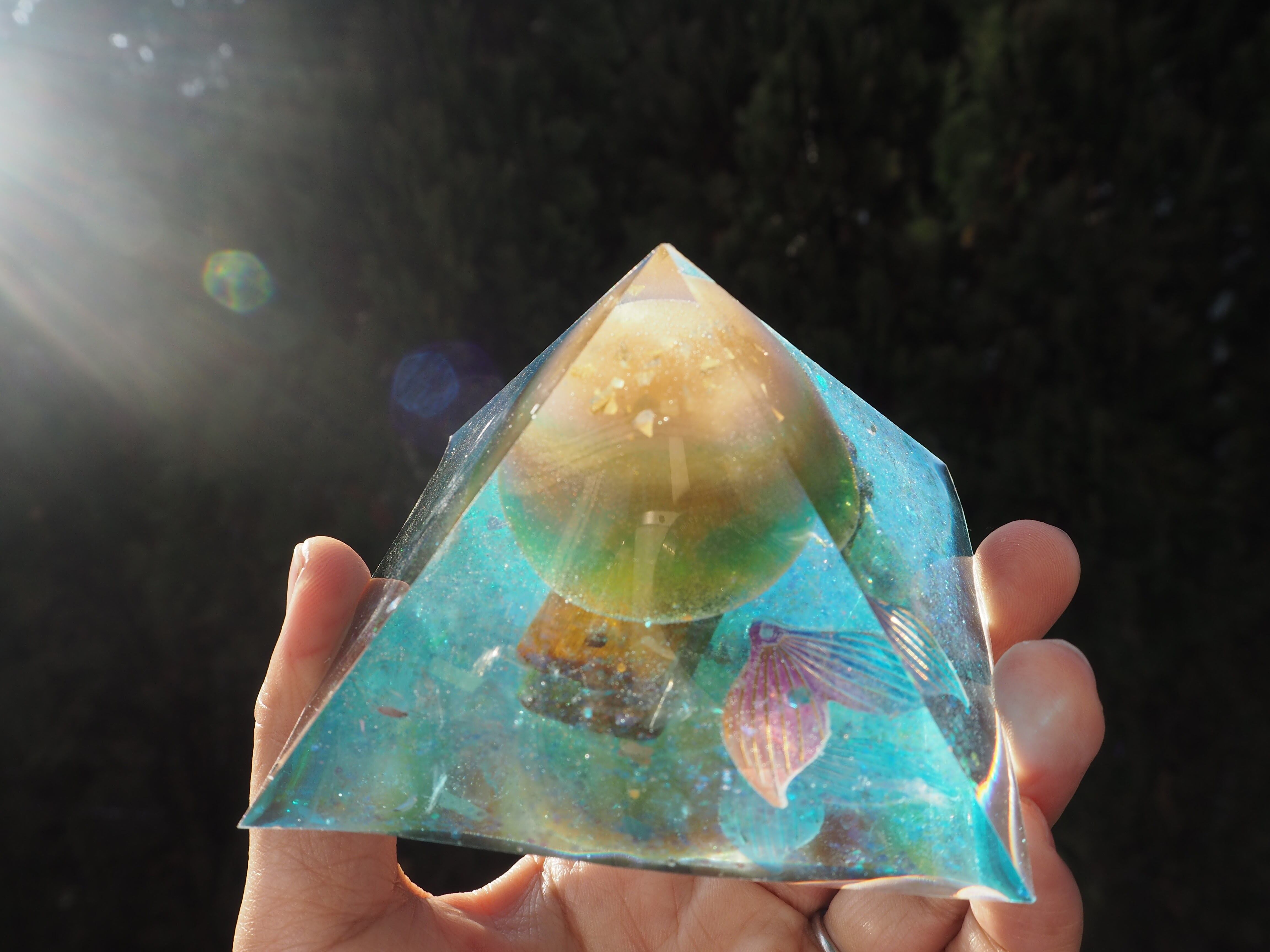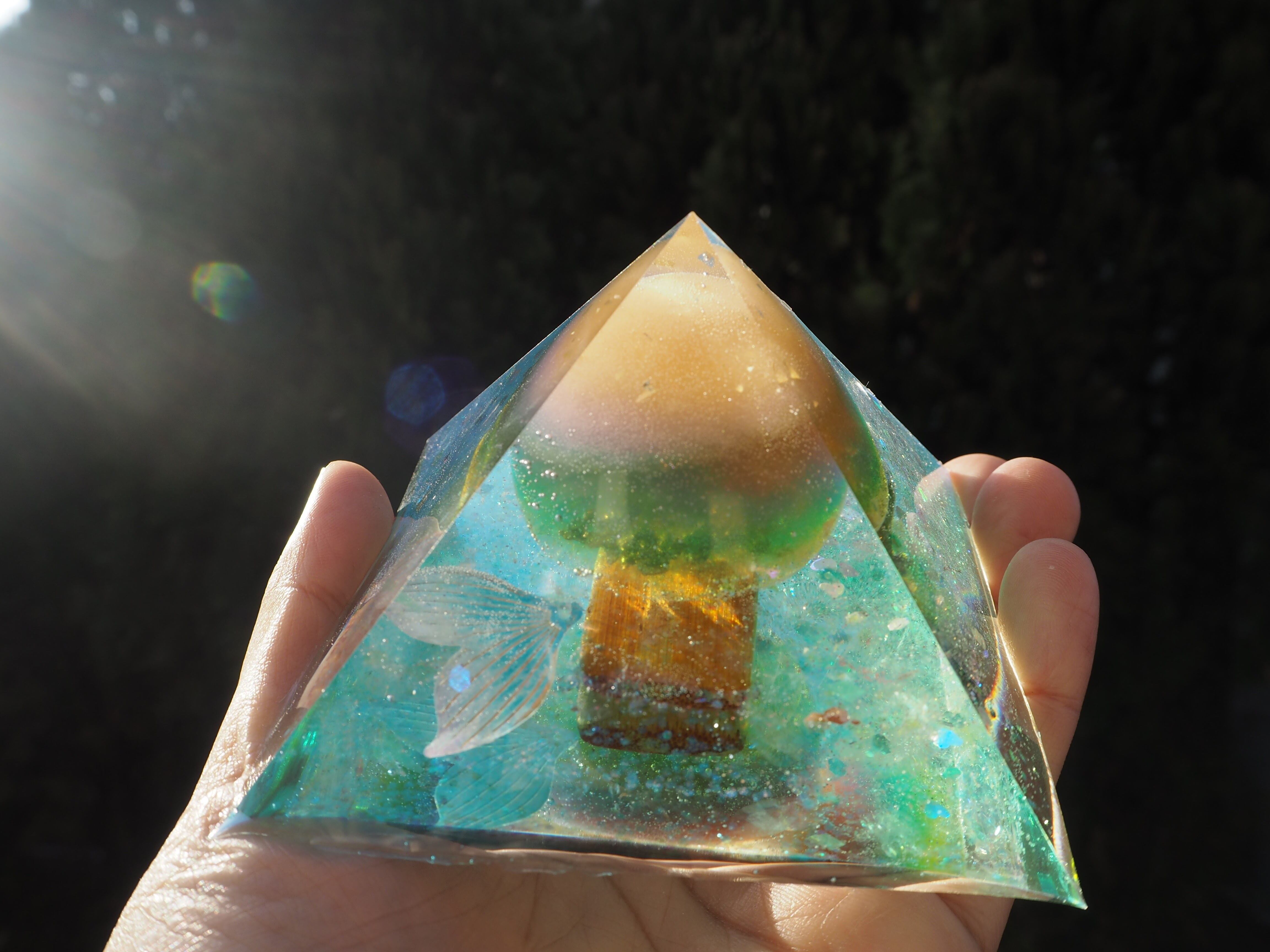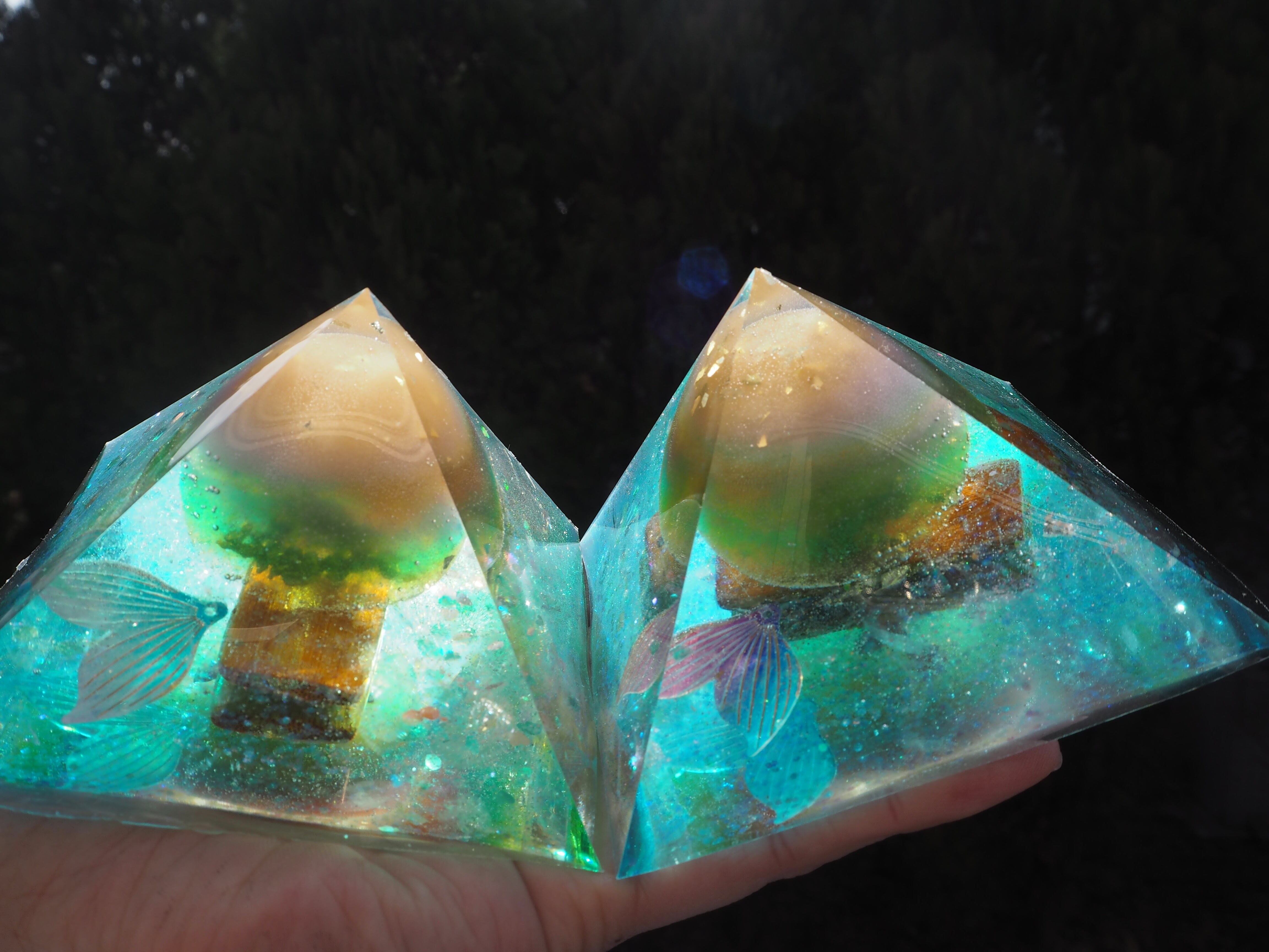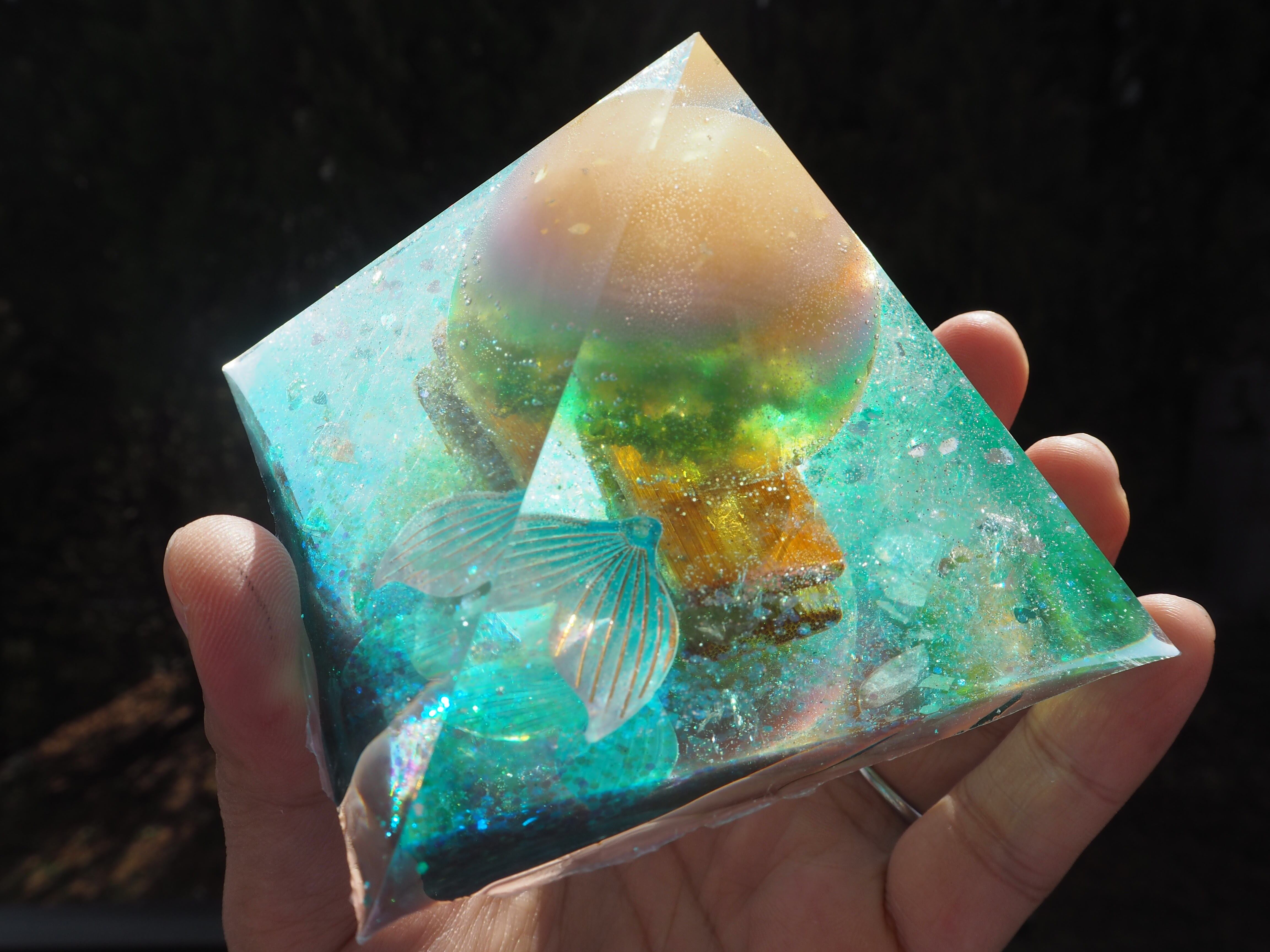 こちらは、アトランティスの海の上に浮かぶ氷の神殿盛り塩オルゴナイトです✨(限定10個)鍵付きです。