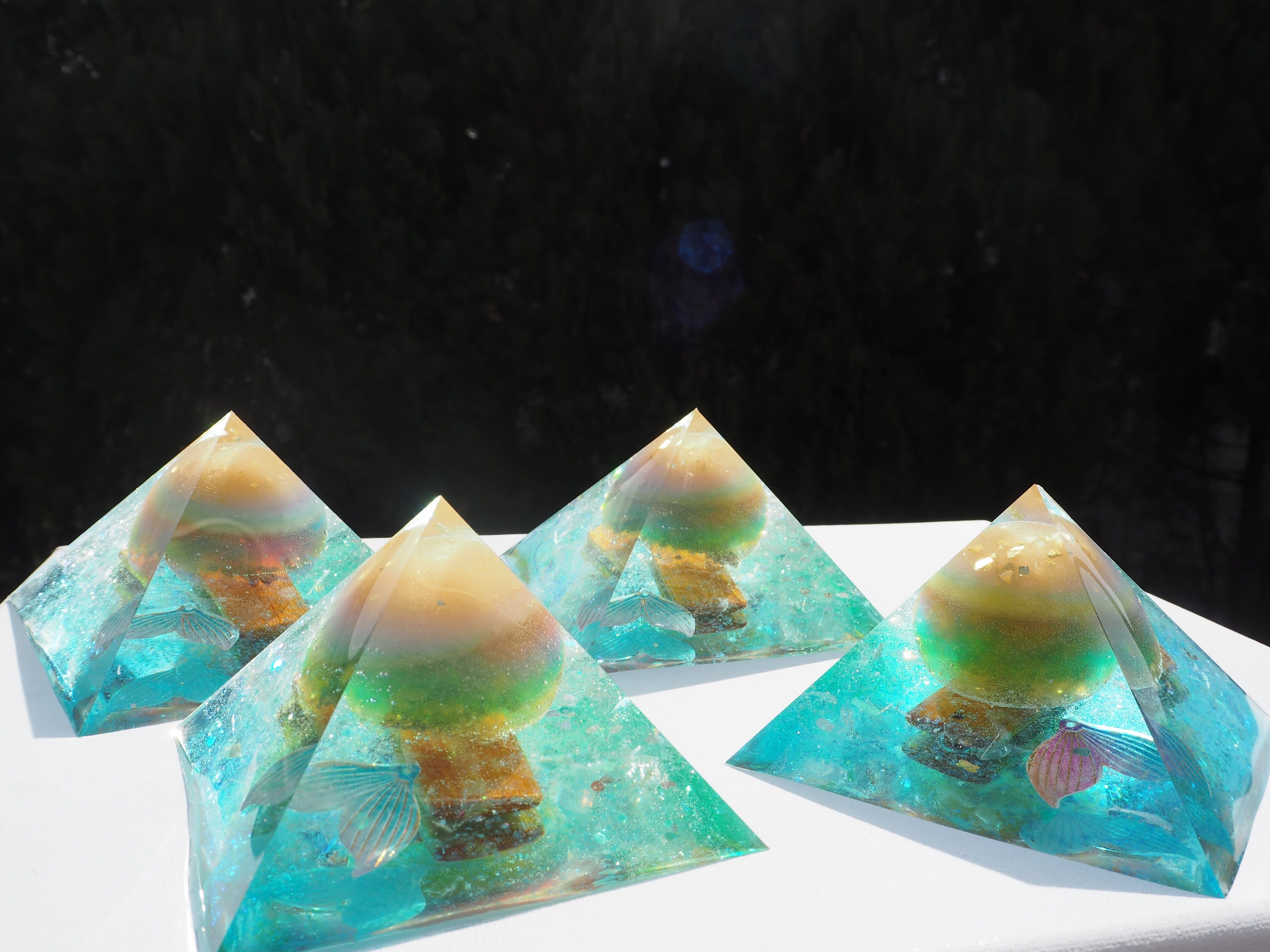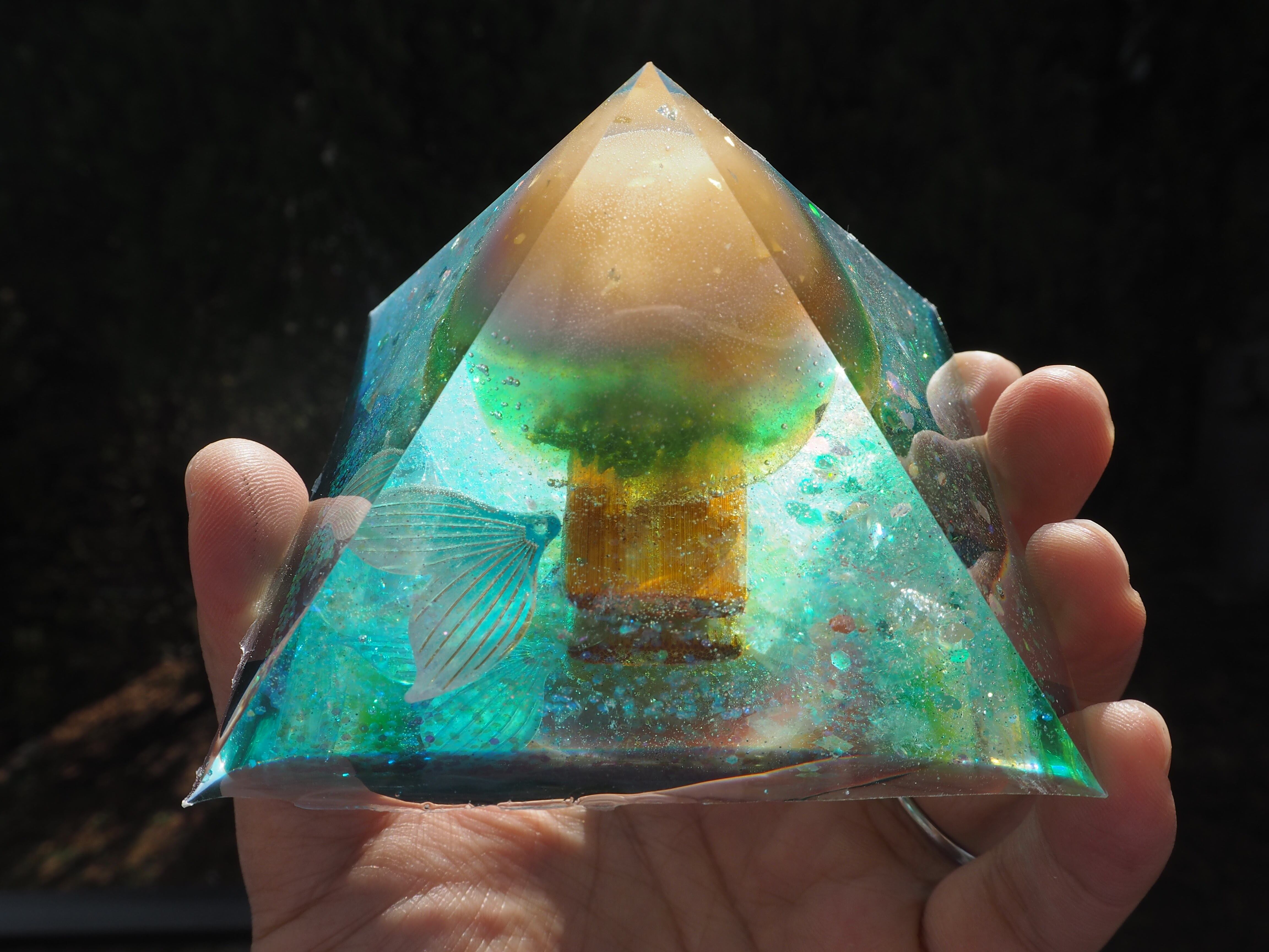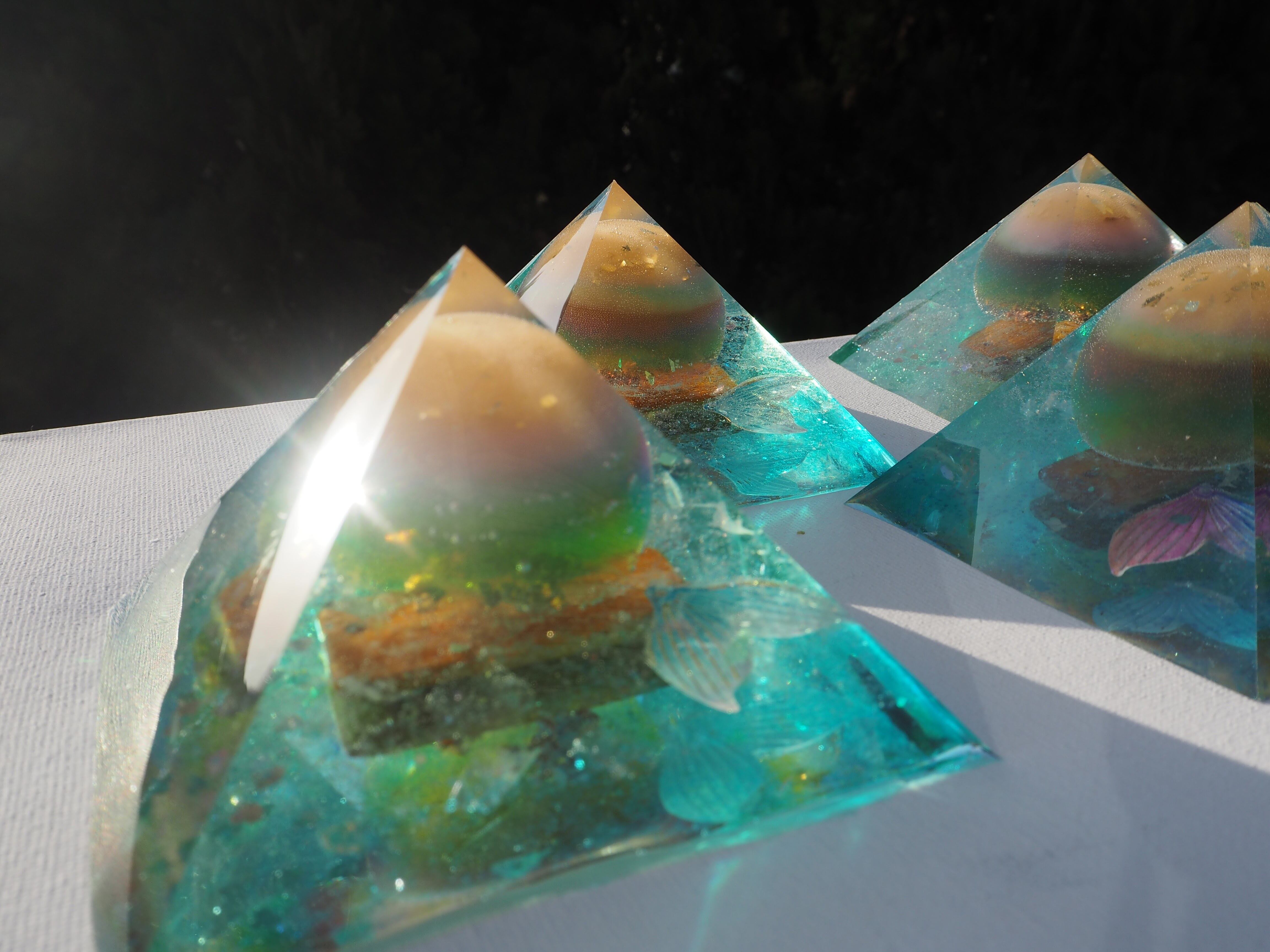こちらは、アトランティスの海の上に浮かぶ氷の神殿盛り塩オルゴナイトです✨(限定10個)鍵付きです。