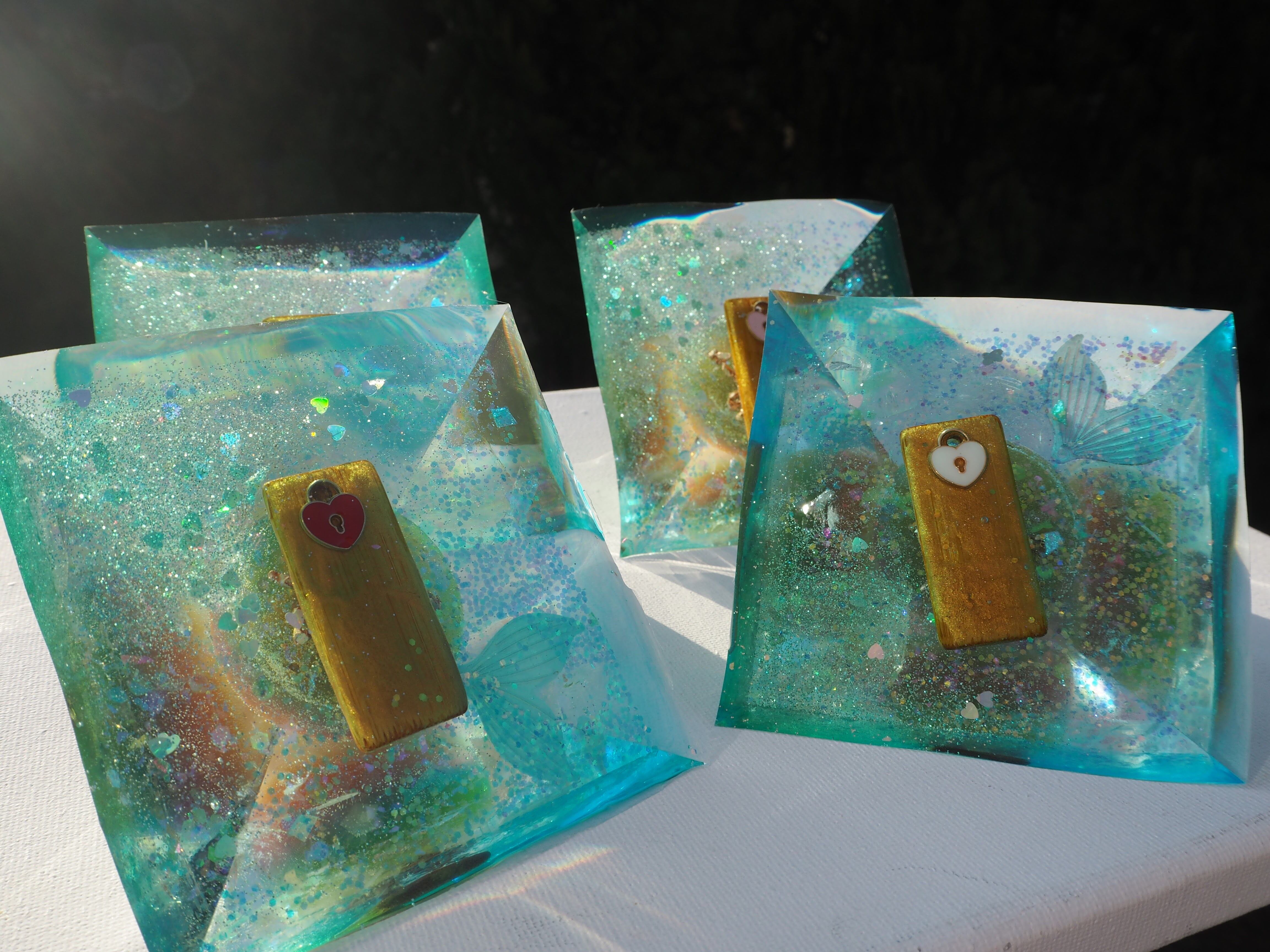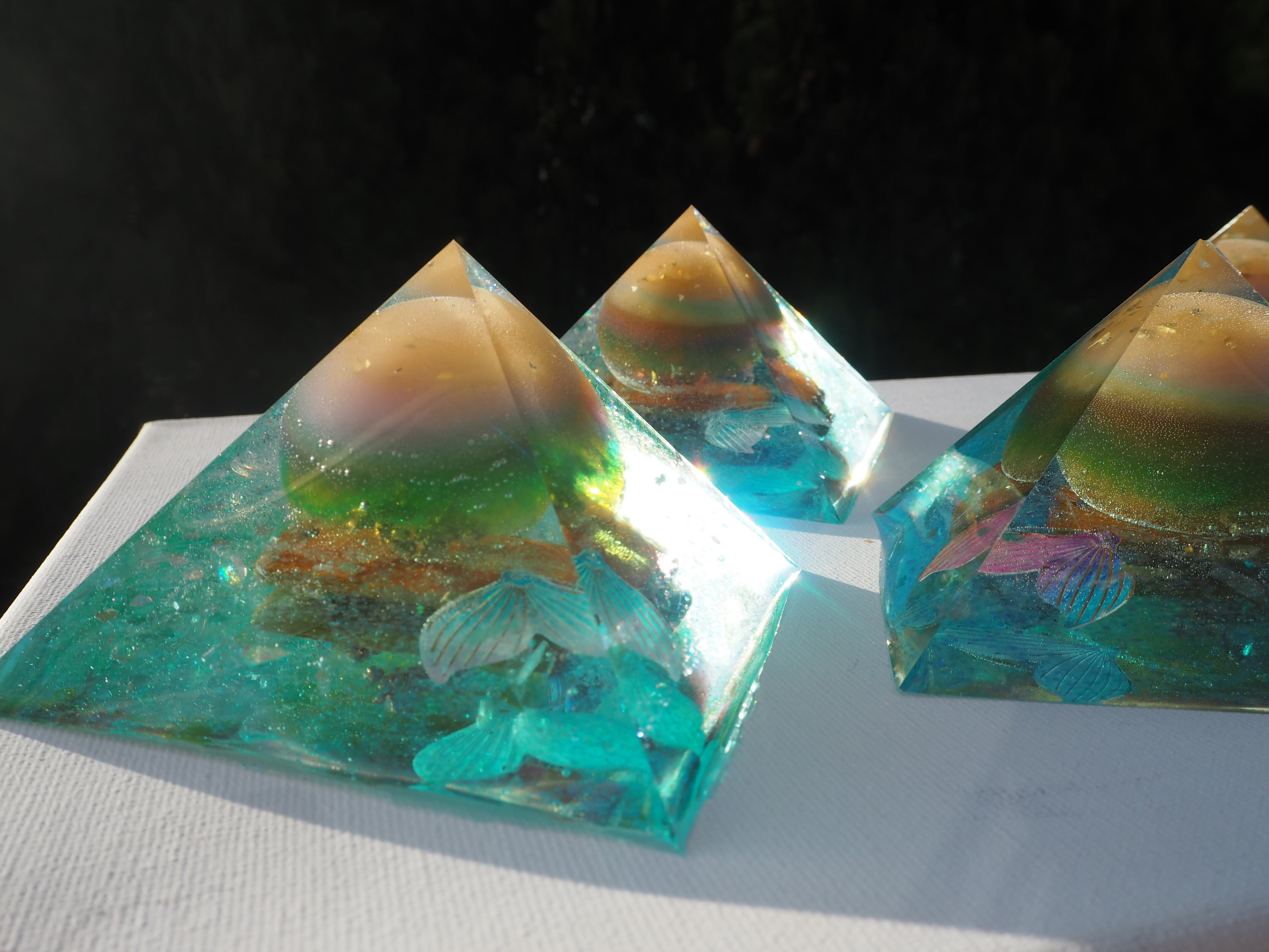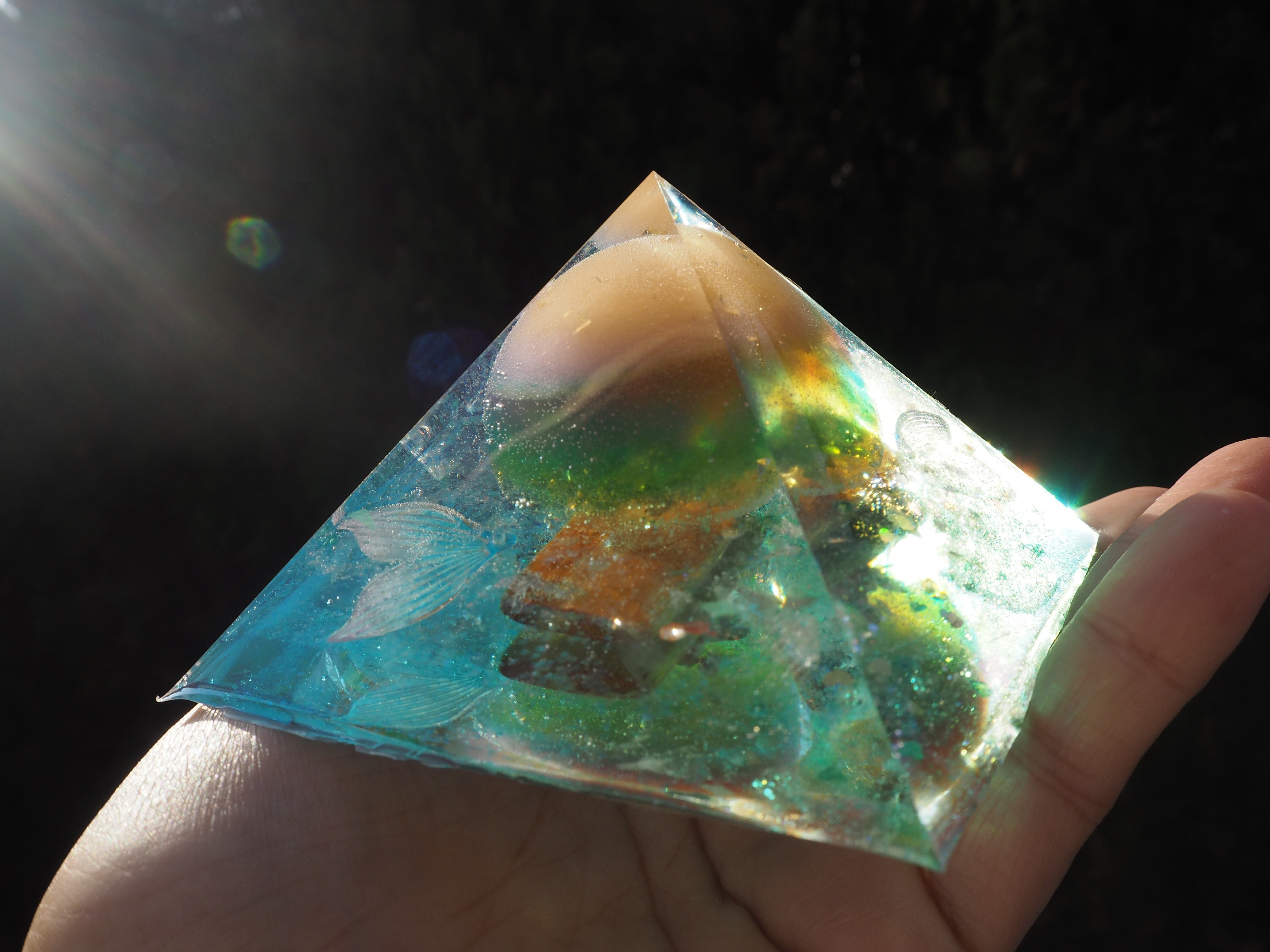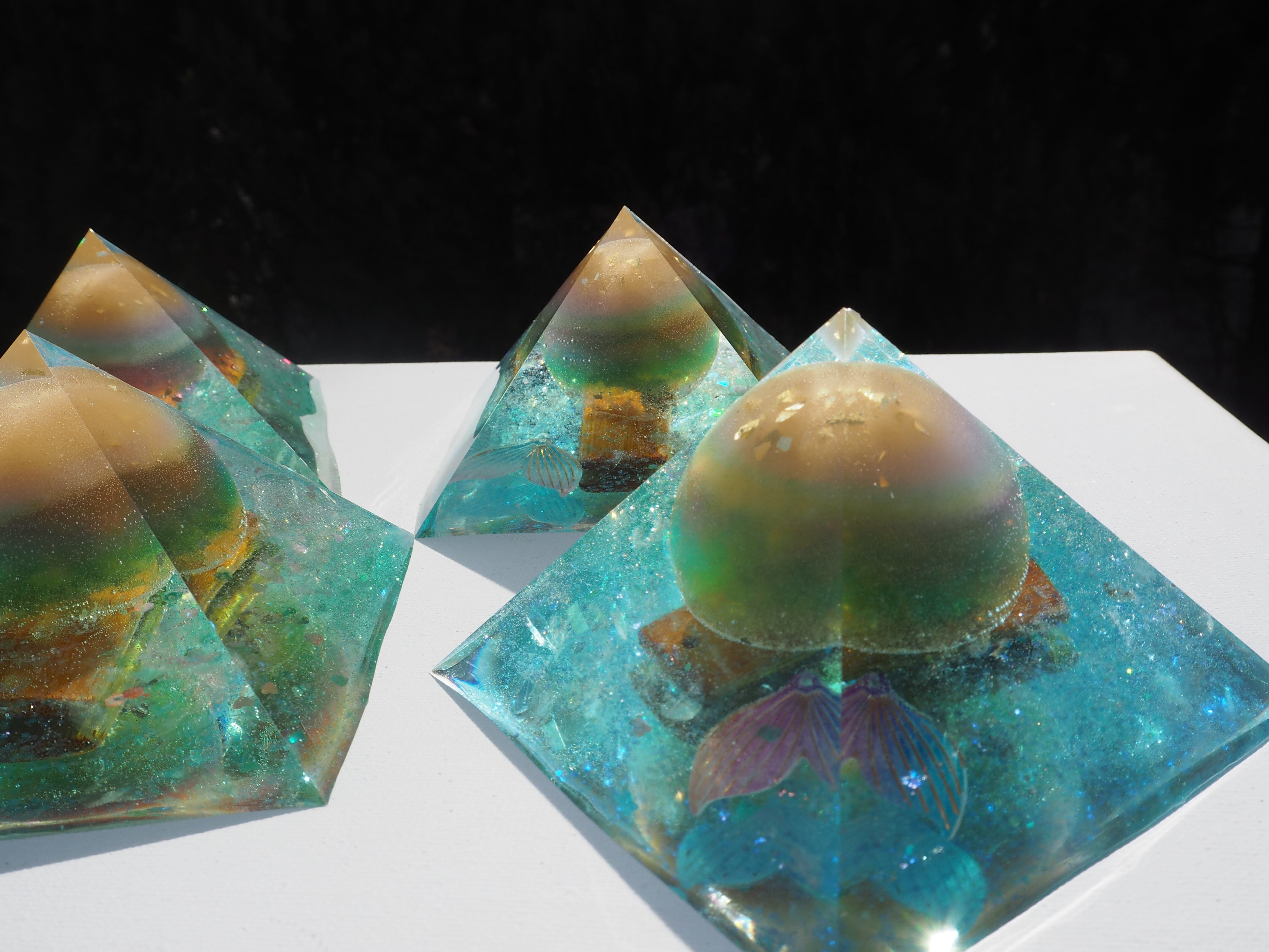 こちらは、アトランティスの海の上に浮かぶ氷の神殿盛り塩オルゴナイトです✨(限定10個)鍵付きです。