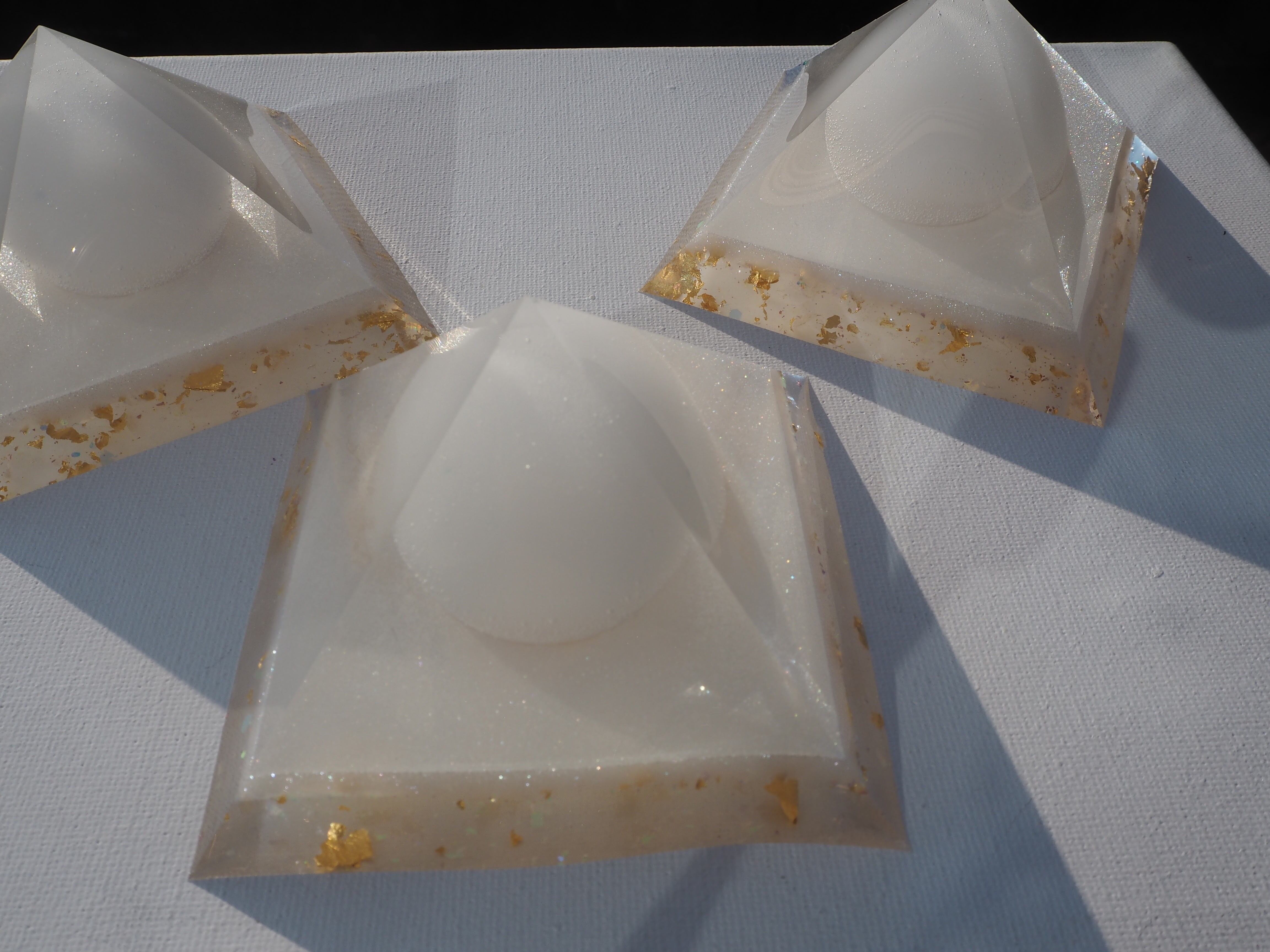 こちらは、三社(貴船神社・伊野天照皇大神宮・宗像大社)の封印解除後のエネルギーを高良大社の神塩に封入した“統合の盛り塩オルゴナイト”です。
