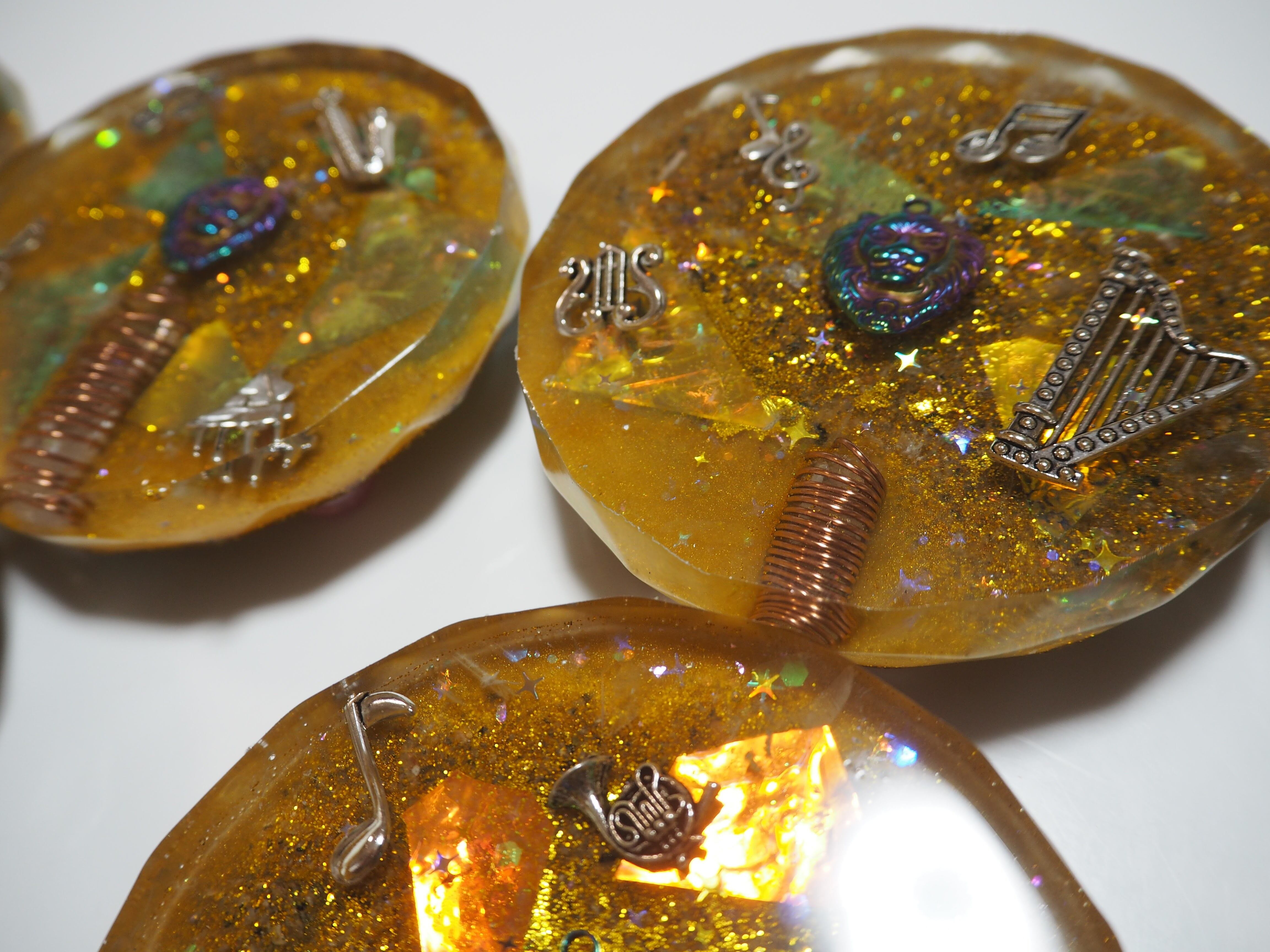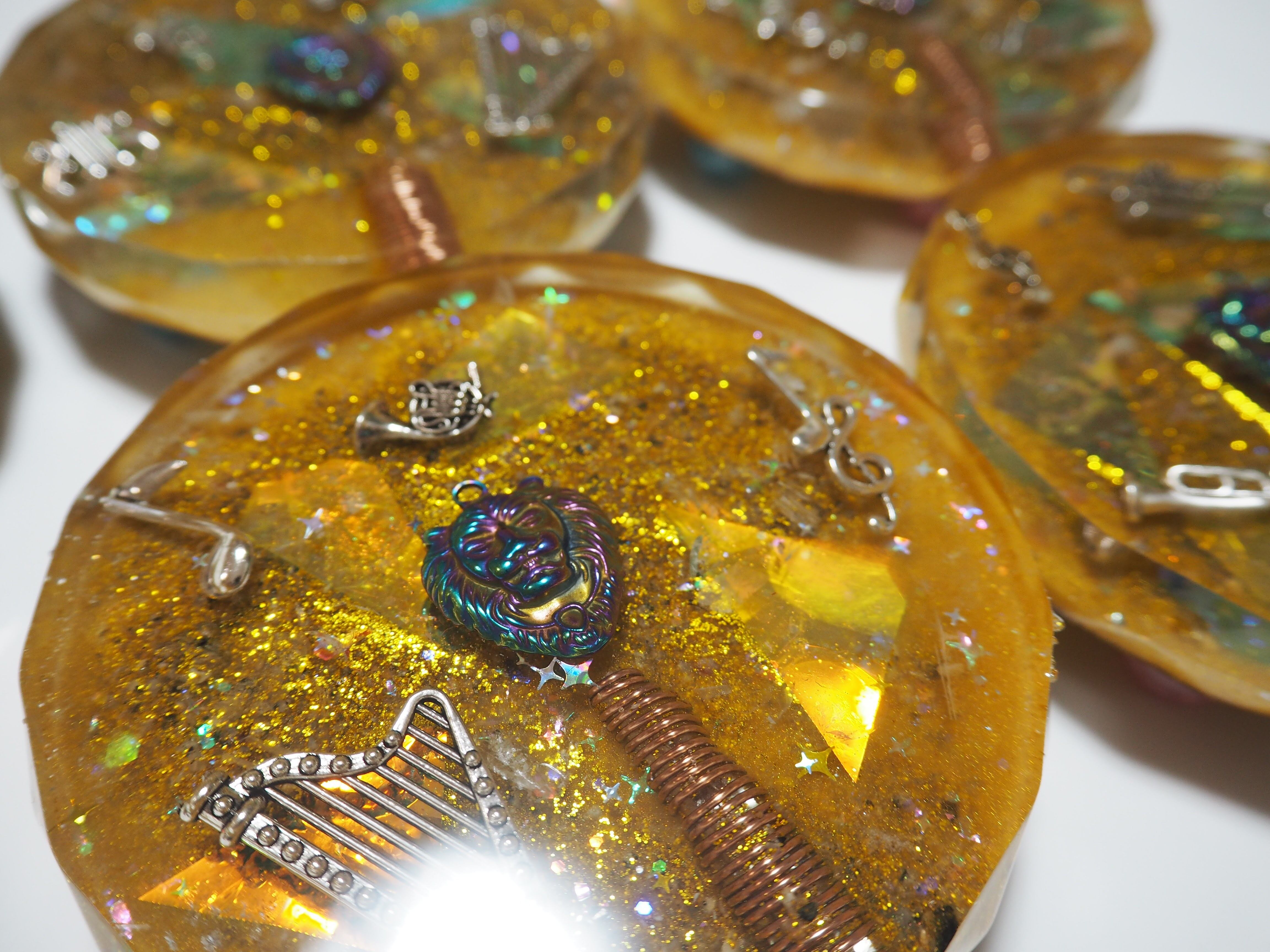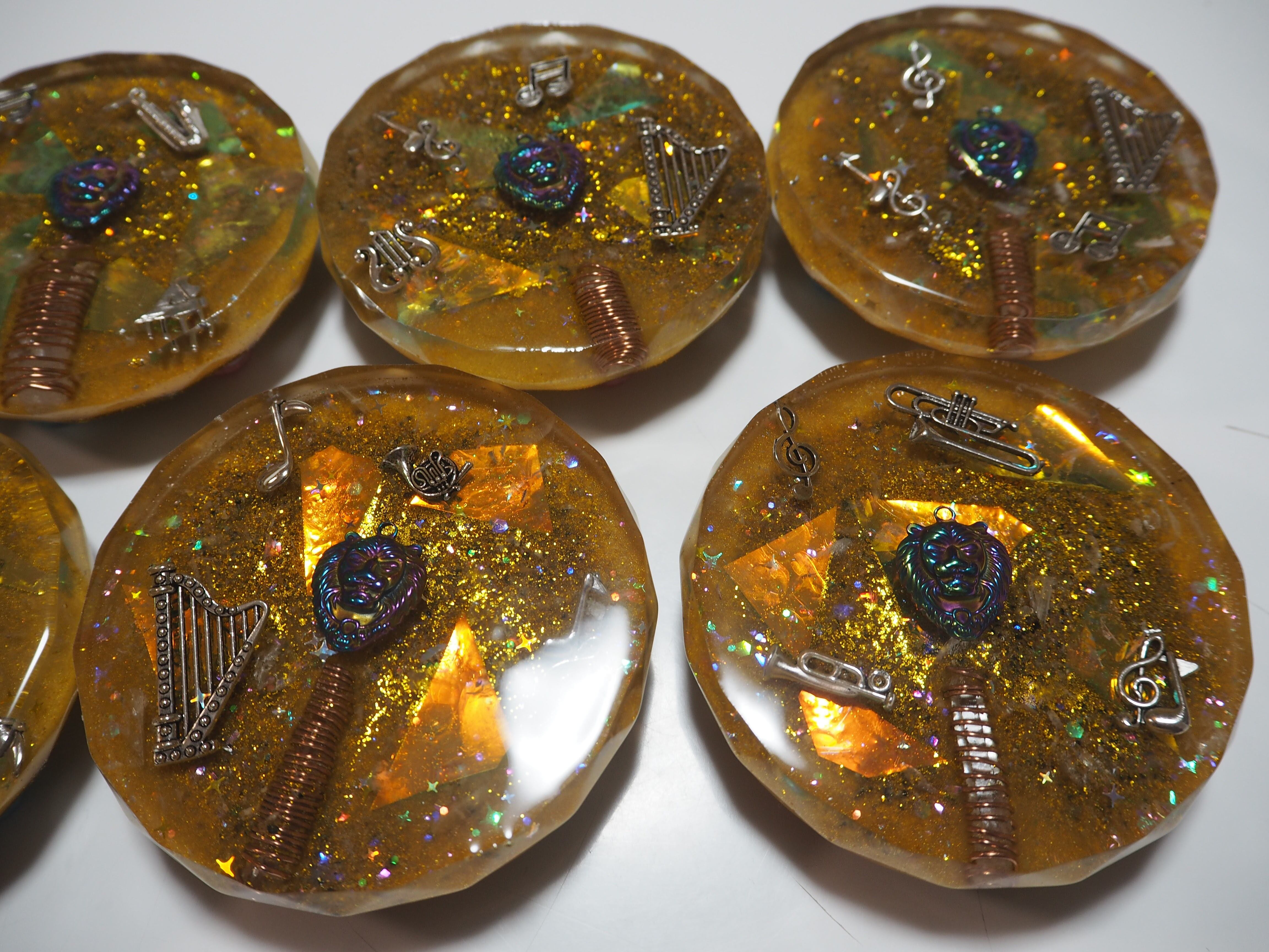 こちらは、日本で唯一天界(天使)と繋がる海(福岡糸島・櫻井神社二見ヶ浦)の黄金に輝くプレートオルゴナイトです。