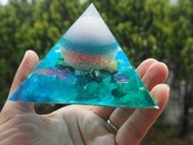 こちらは、アトランティスの海の上に浮かぶ氷の神殿盛り塩オルゴナイトです✨鍵付きです。