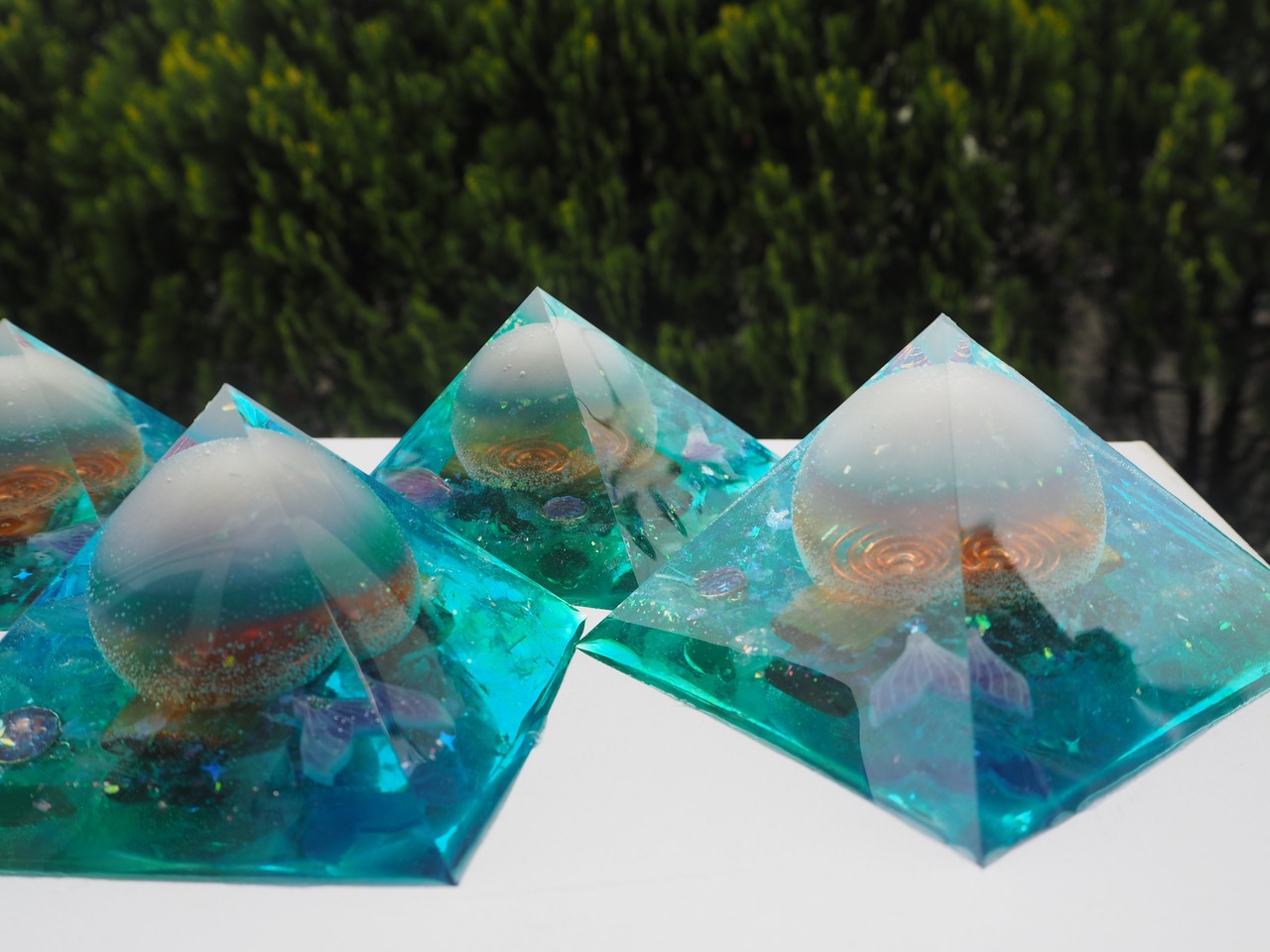雅子様専用:再販4個:アトランティスの海に浮かぶ氷の神殿盛り塩オルゴナイト