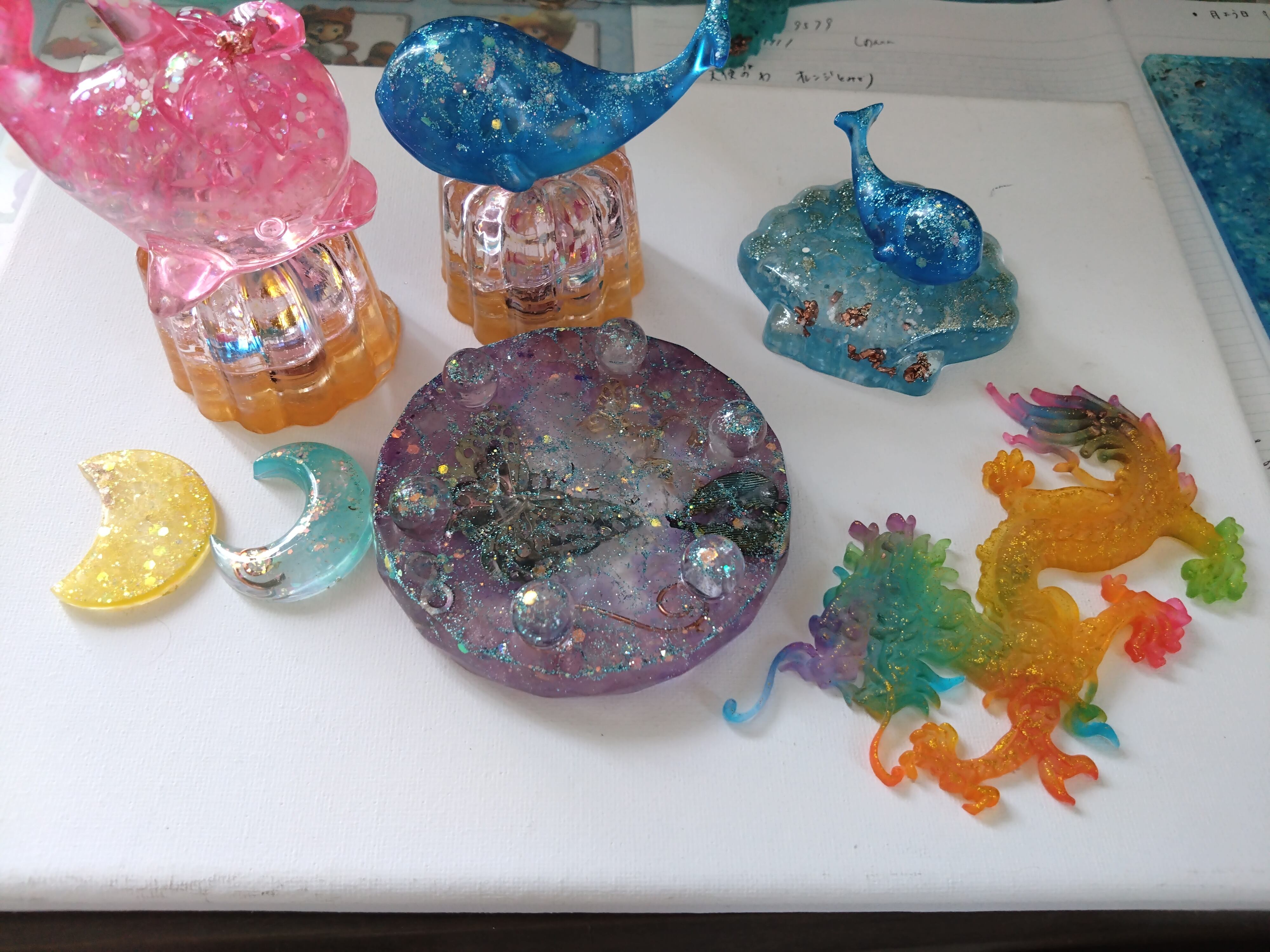 ・黄色の月、水入りオルゴナイト2個プレゼント