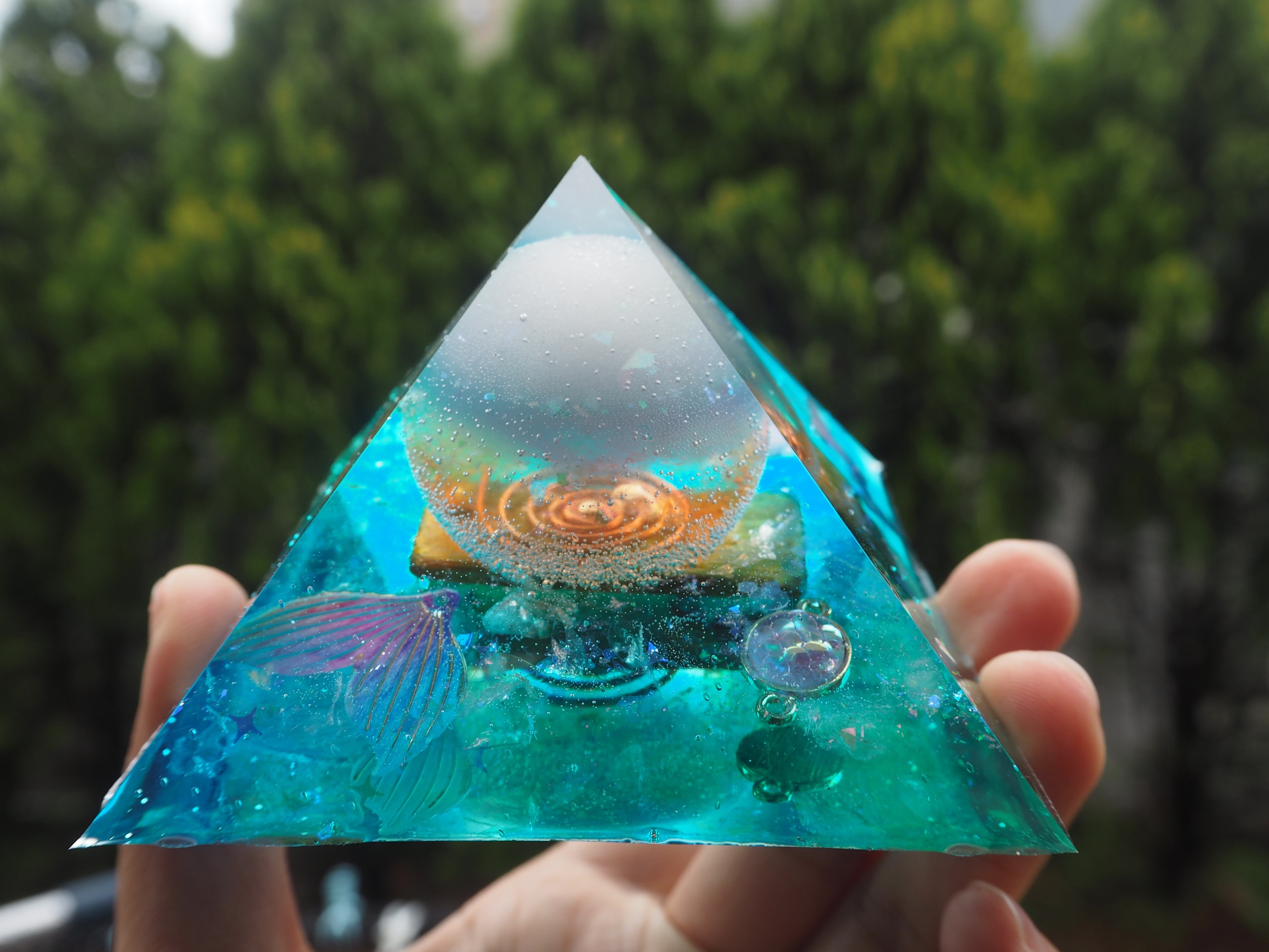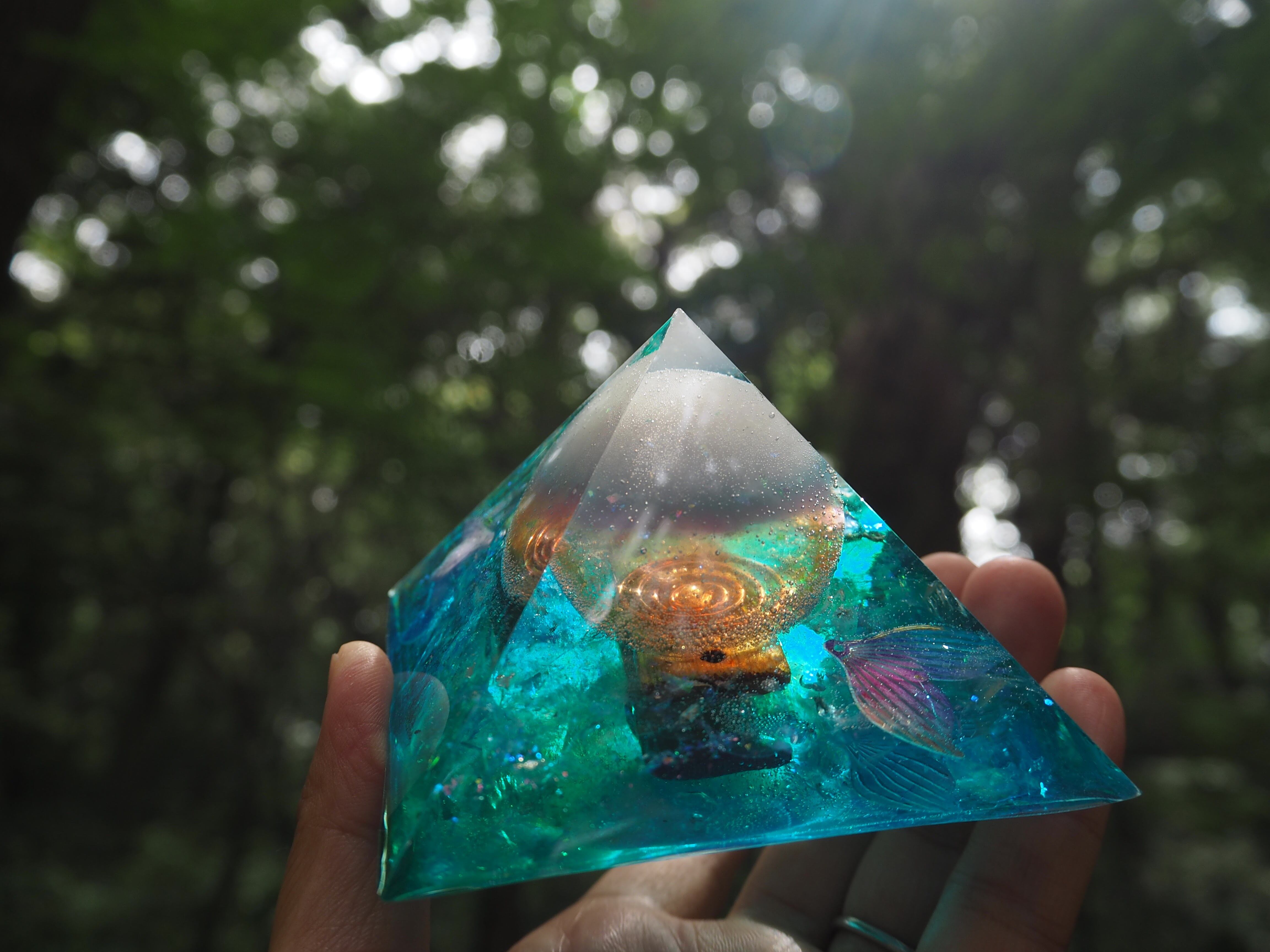 再再販1個:アトランティスの海に浮かぶ氷の神殿盛り塩オルゴナイト