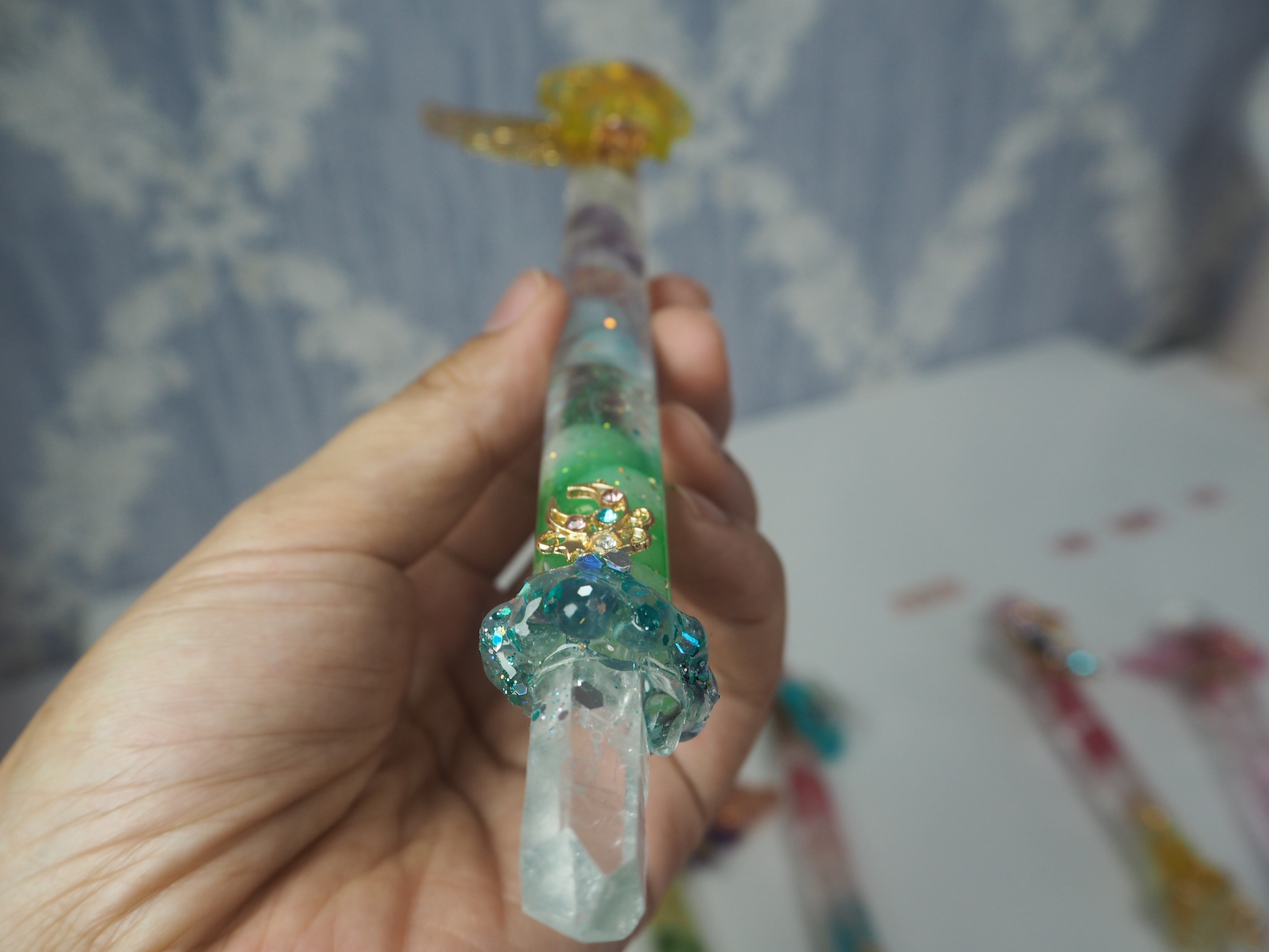 下の方には、ポイント水晶をフローライトで取り囲みました✨