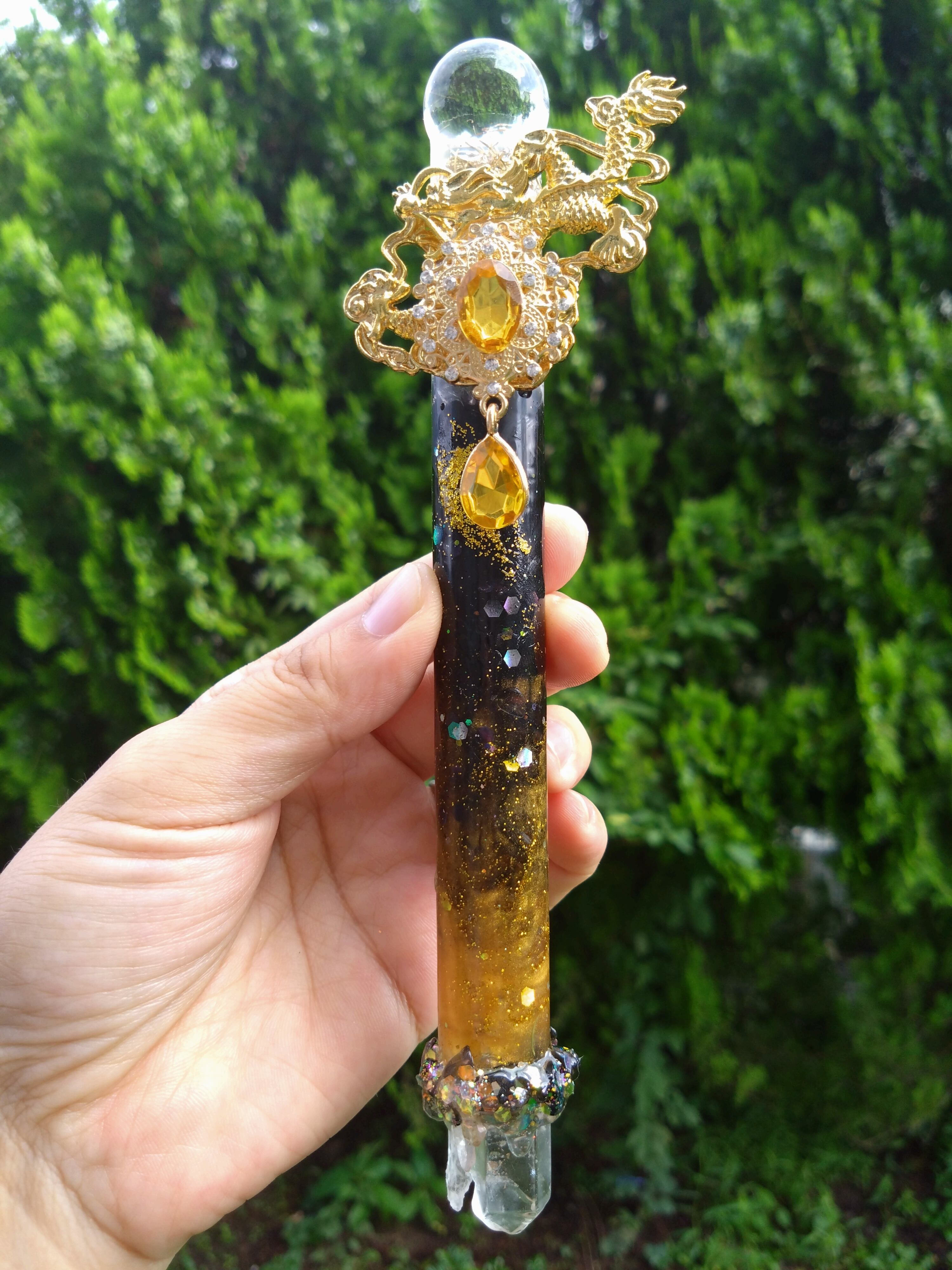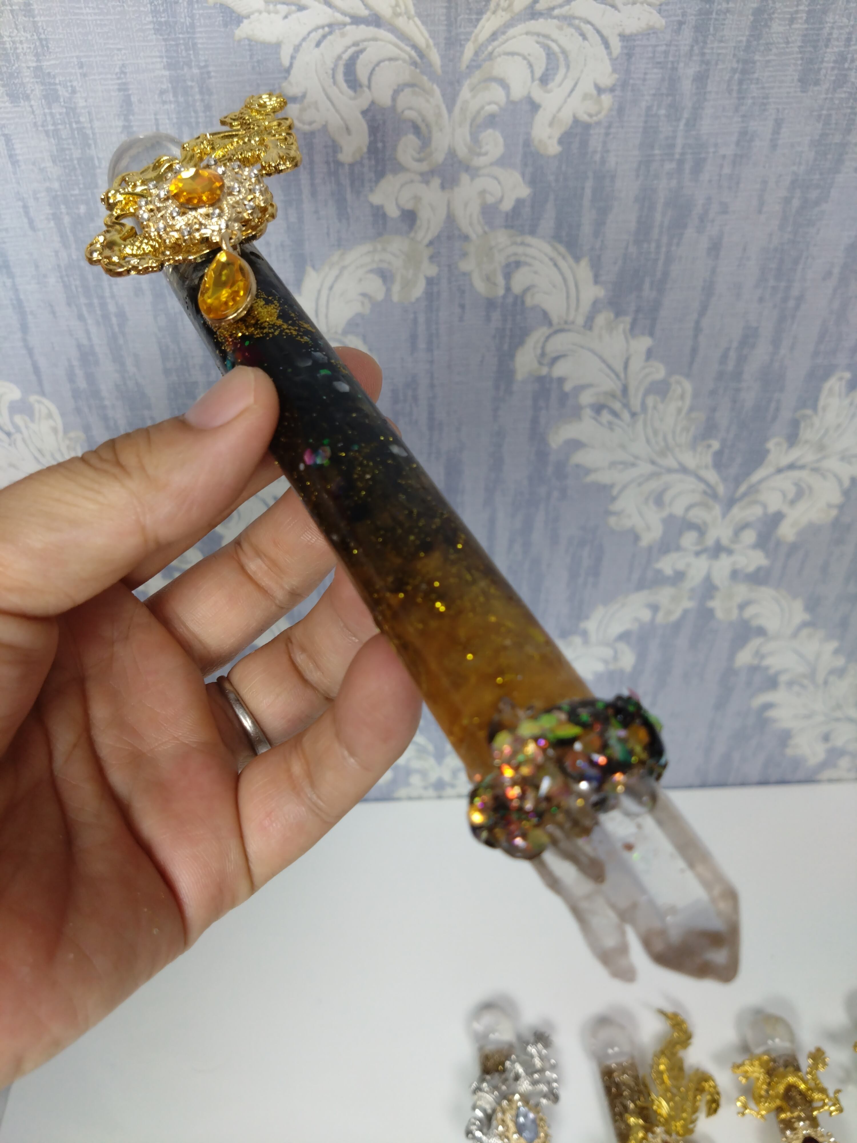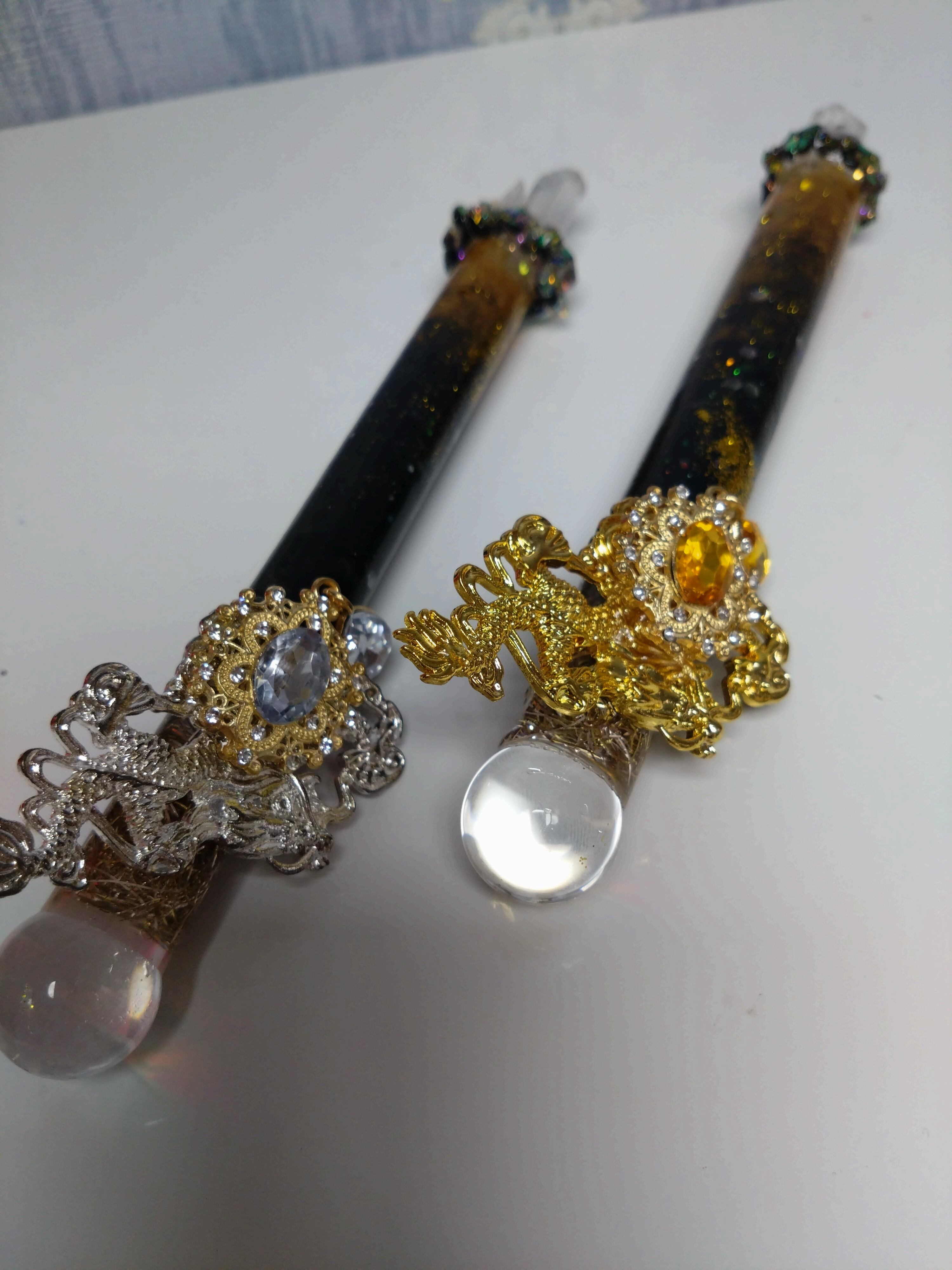 こちらは、邪気祓い!龍のオルゴナイトワンドです✨金龍さん、銀龍さんがいます。