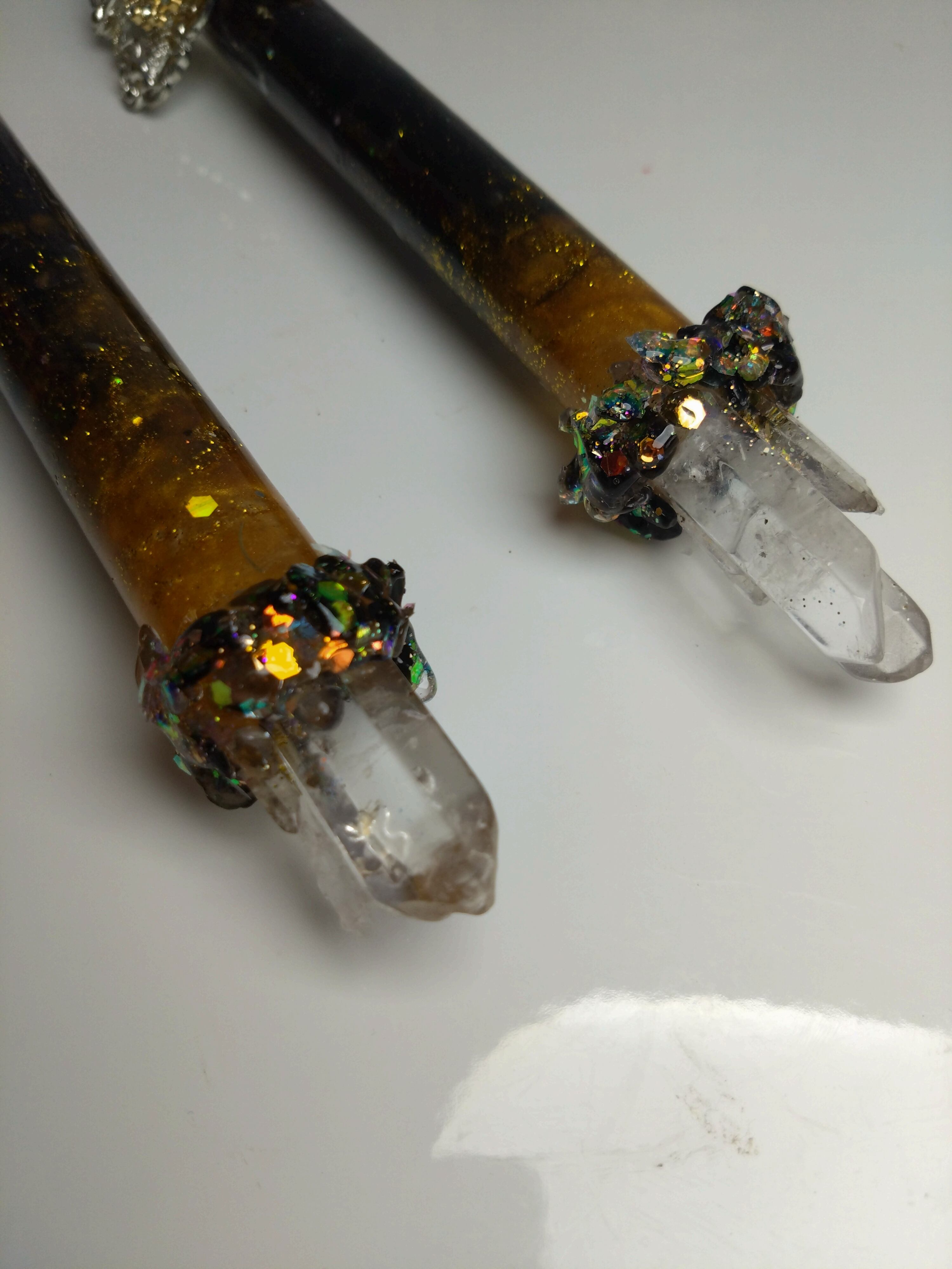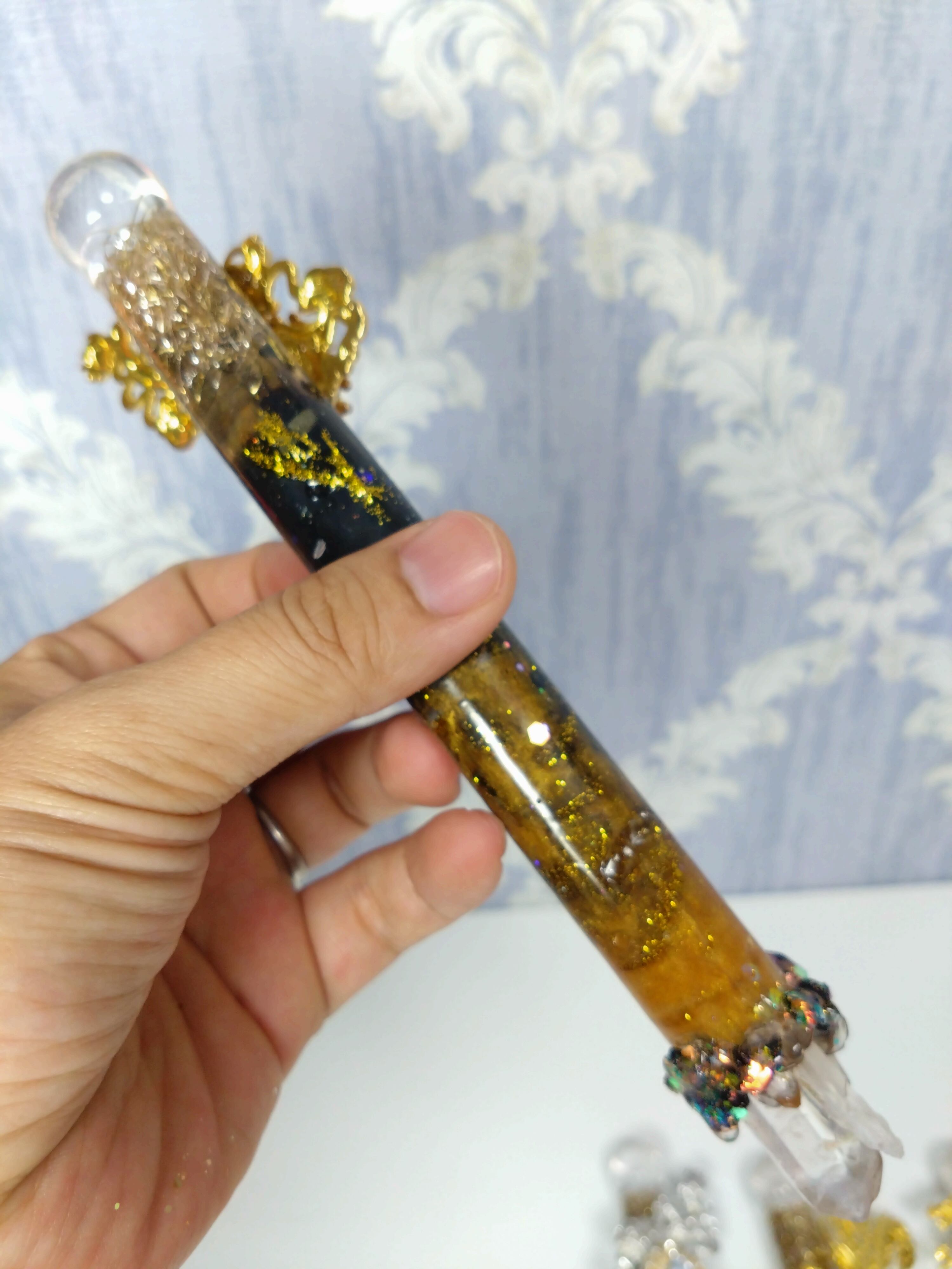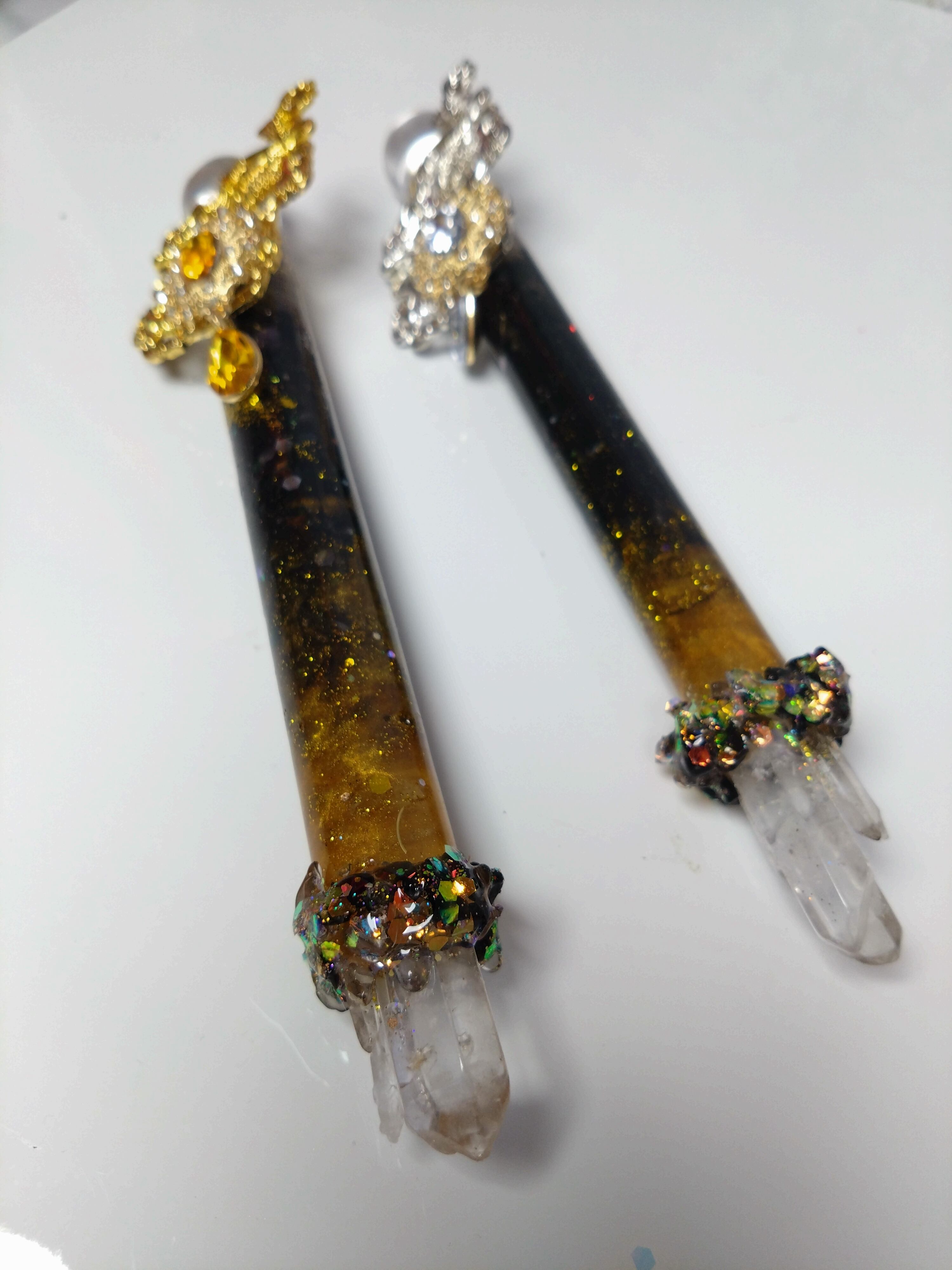 こちらは、邪気祓い!龍のオルゴナイトワンドです✨金龍さん、銀龍さんがいます。