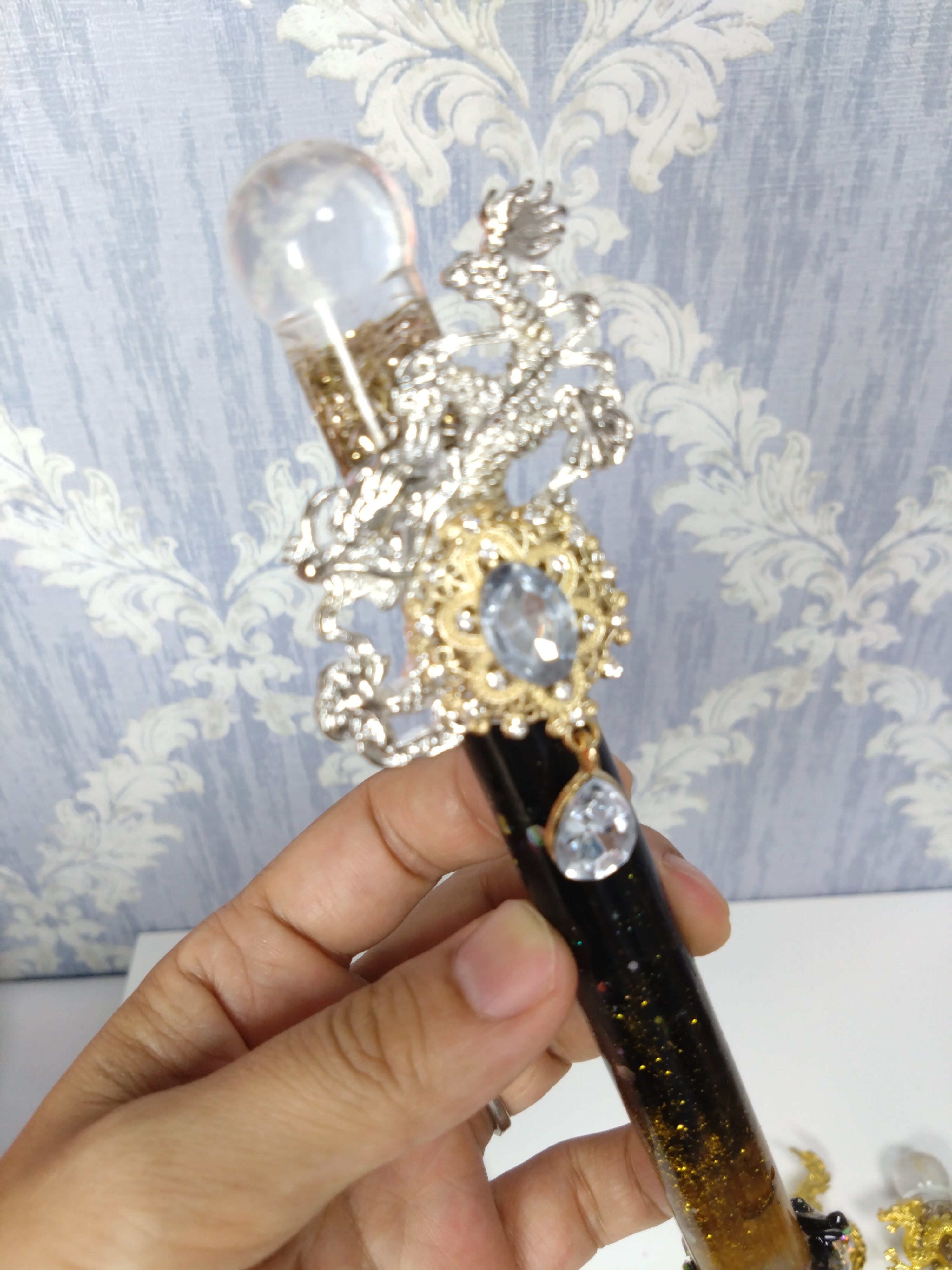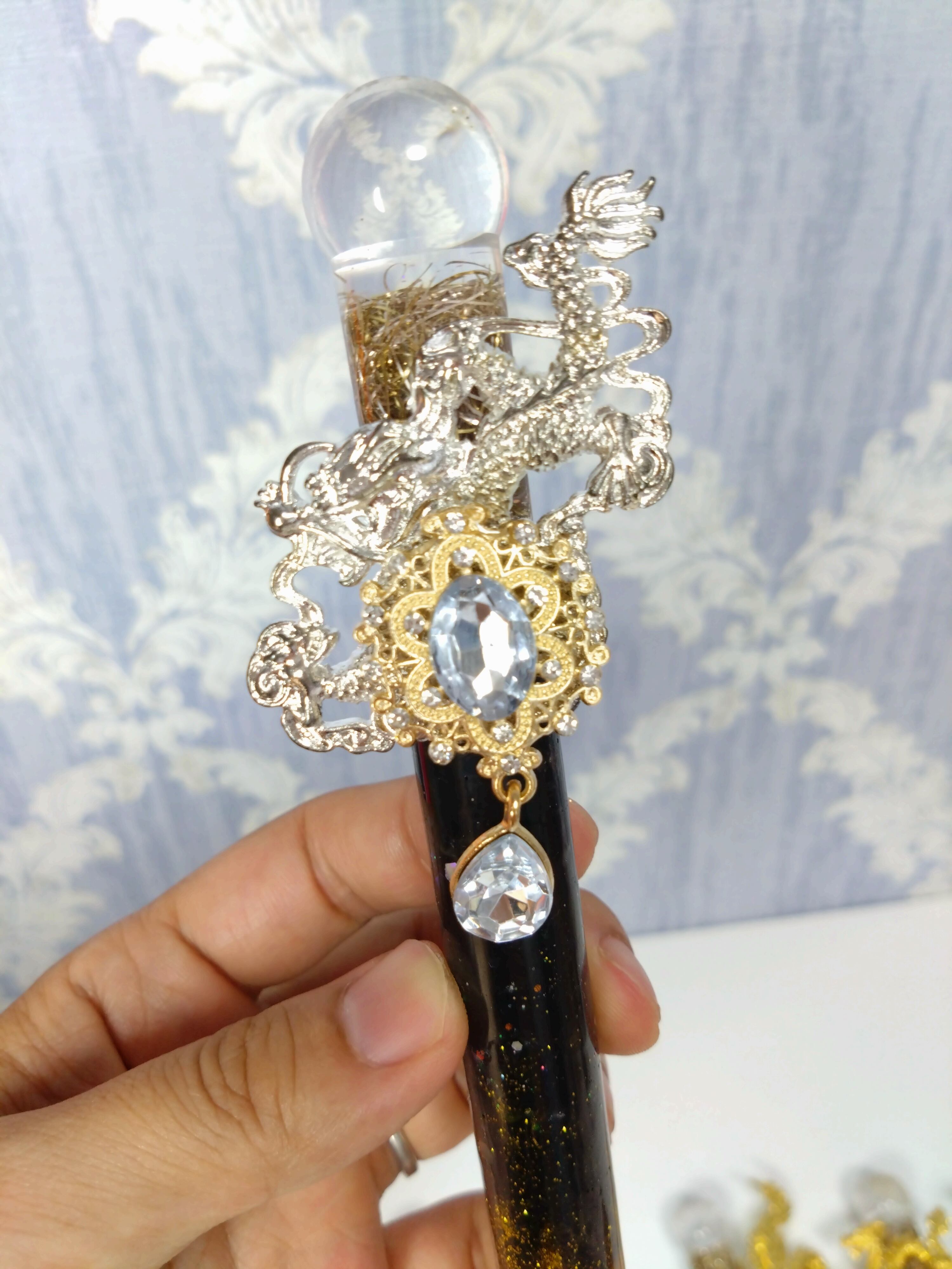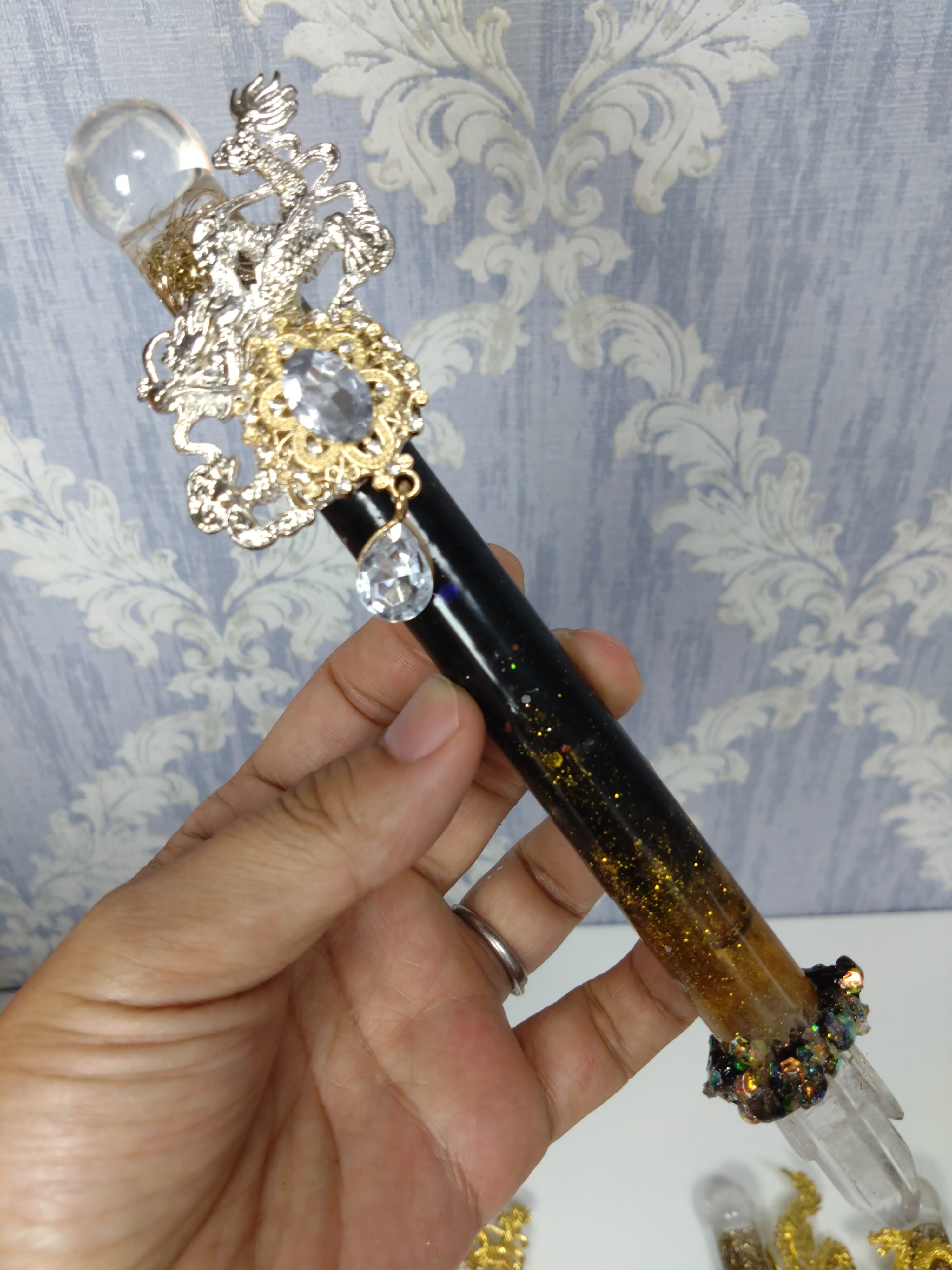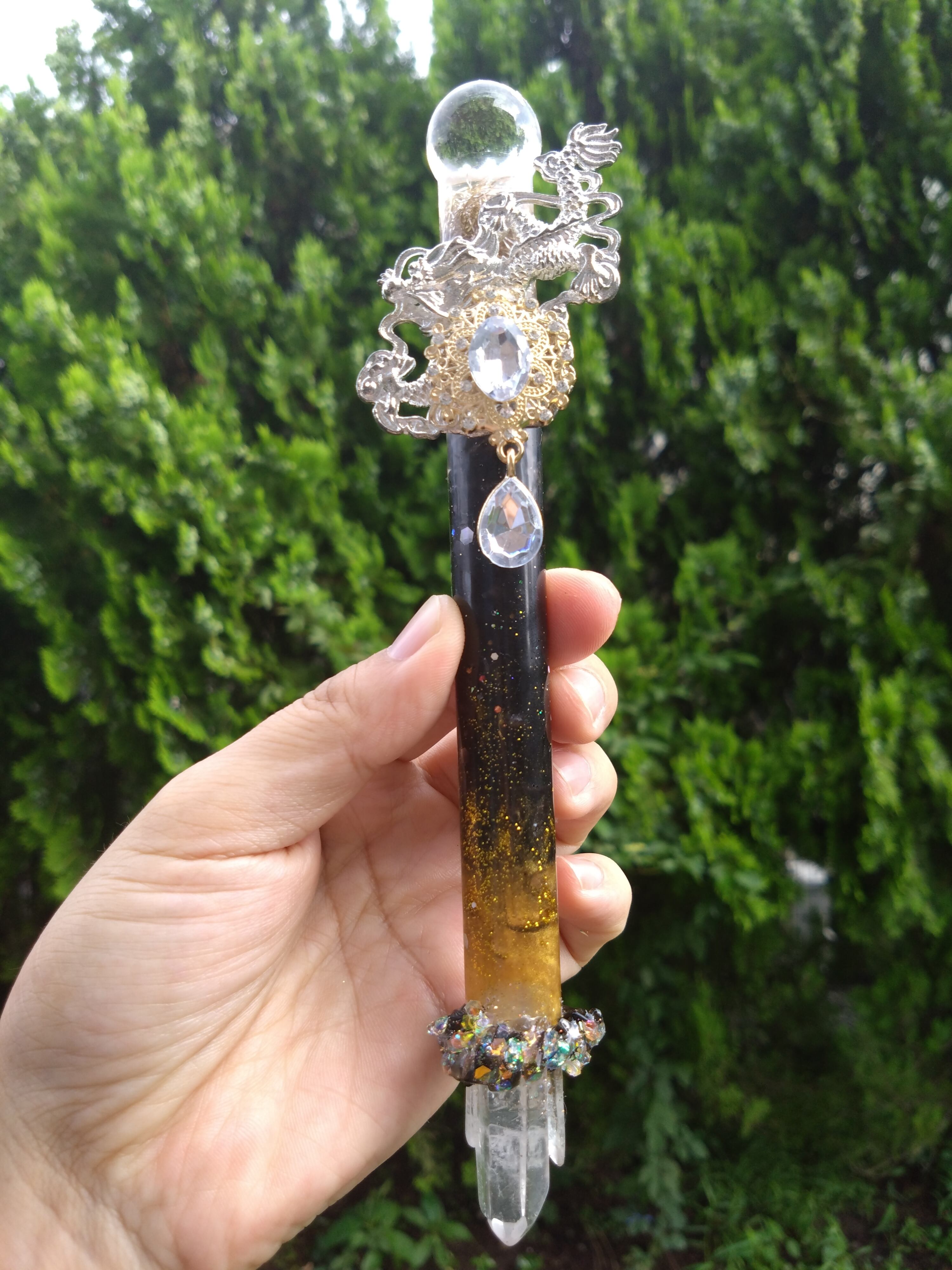 こちらは、邪気祓い!龍のオルゴナイトワンドです✨金龍さん、銀龍さんがいます。