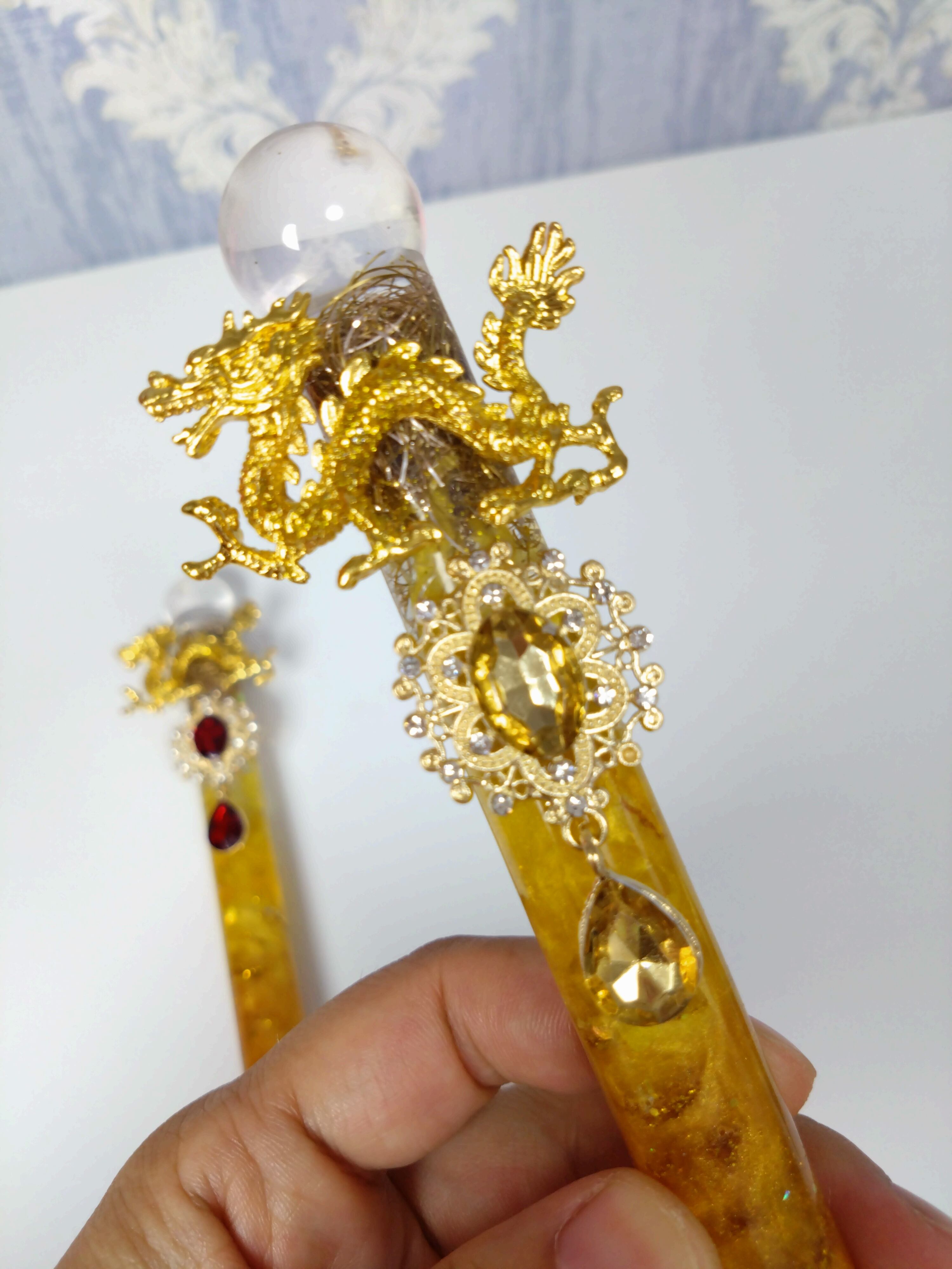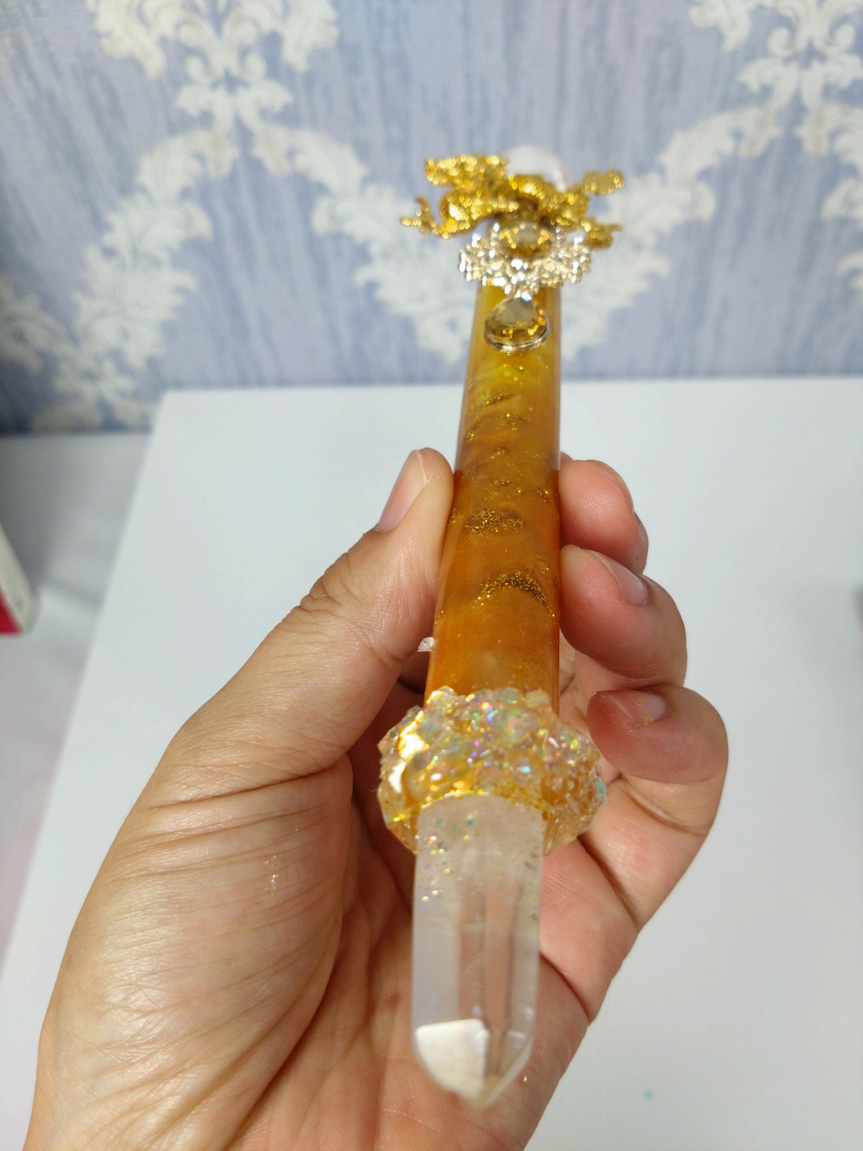 黄金に輝く金龍のオルゴナイトワンド(黄色)