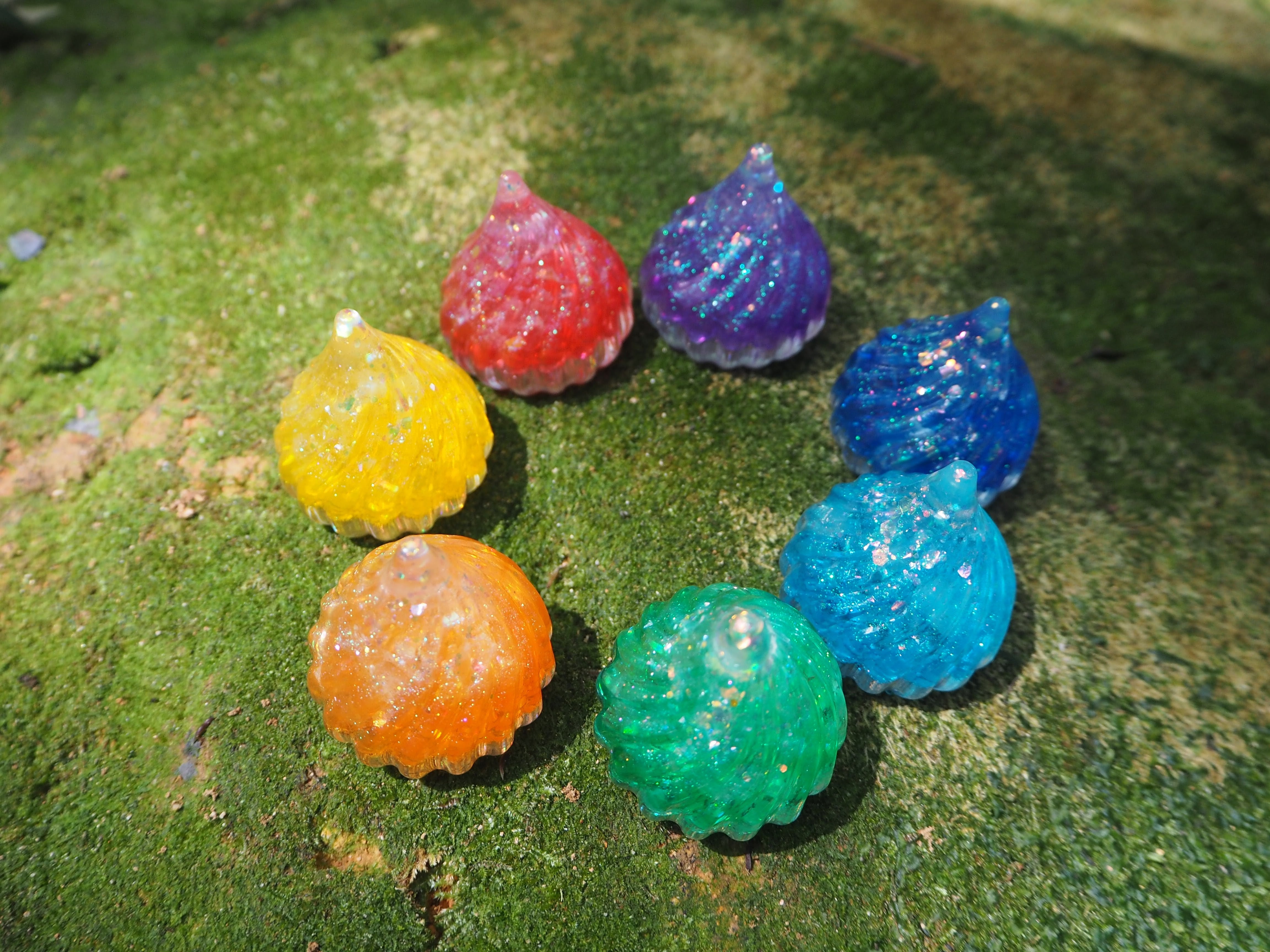 こちらは、セブンチャクラの宝玉オルゴナイト7点セットです☺️✨